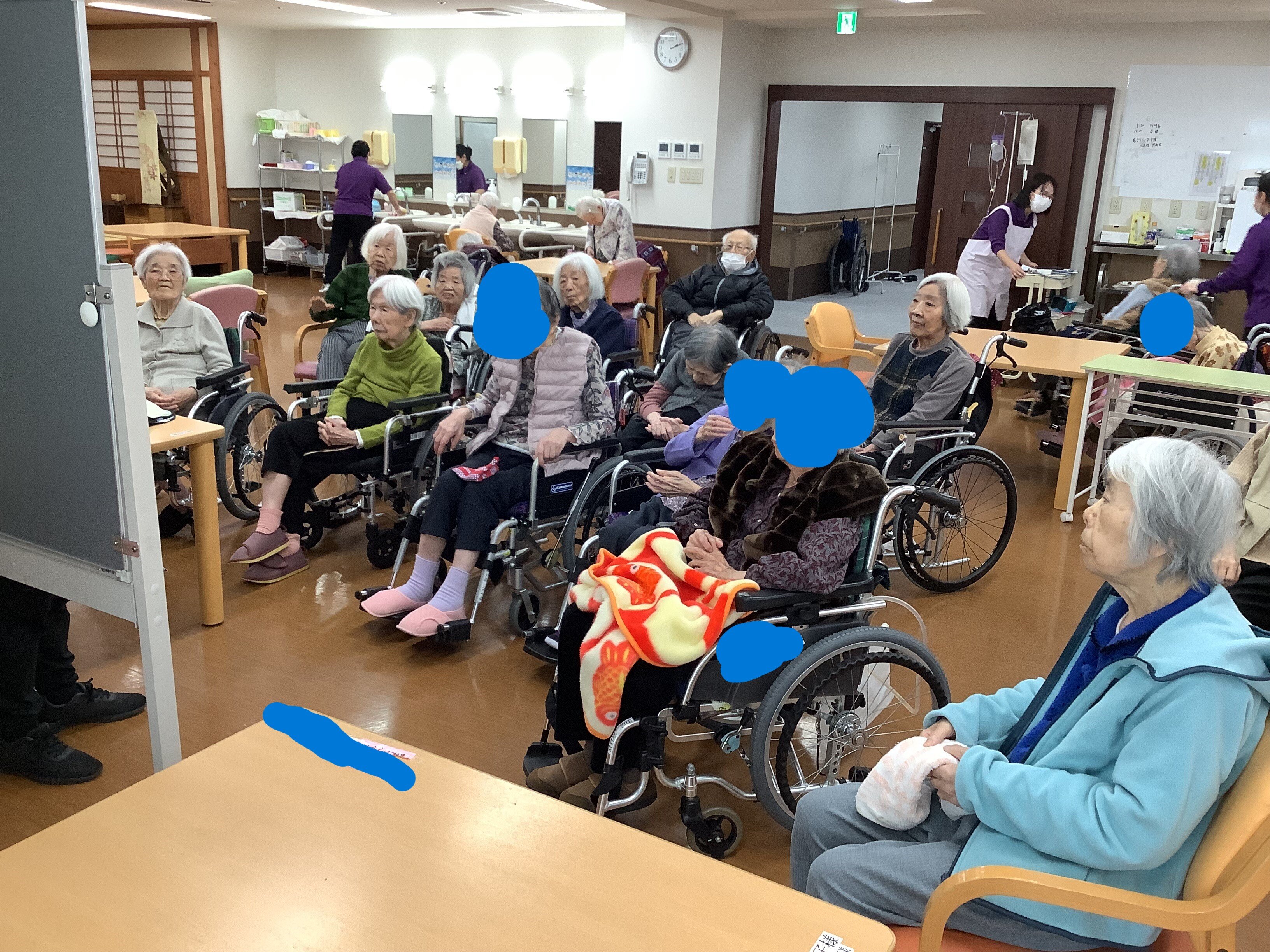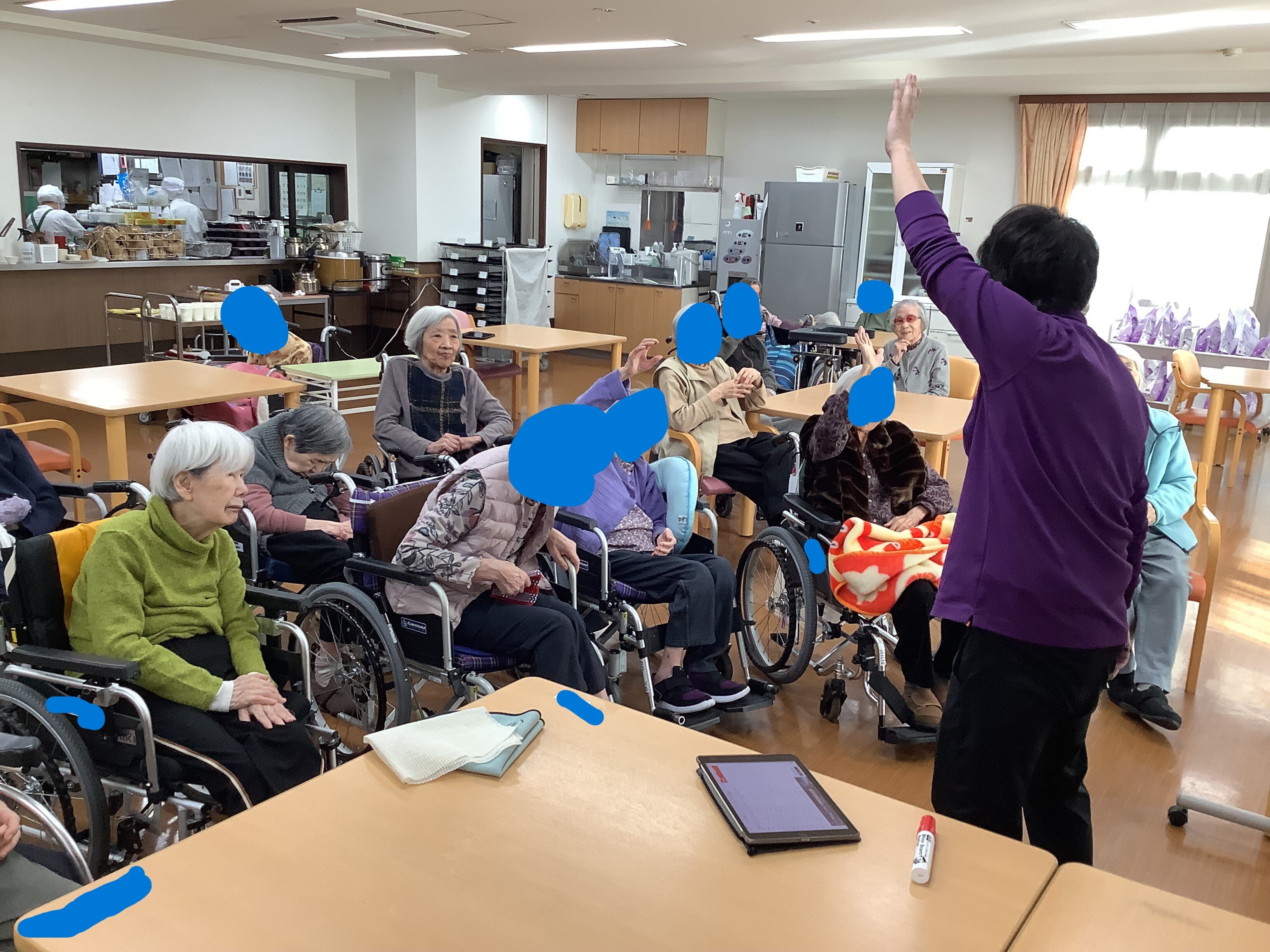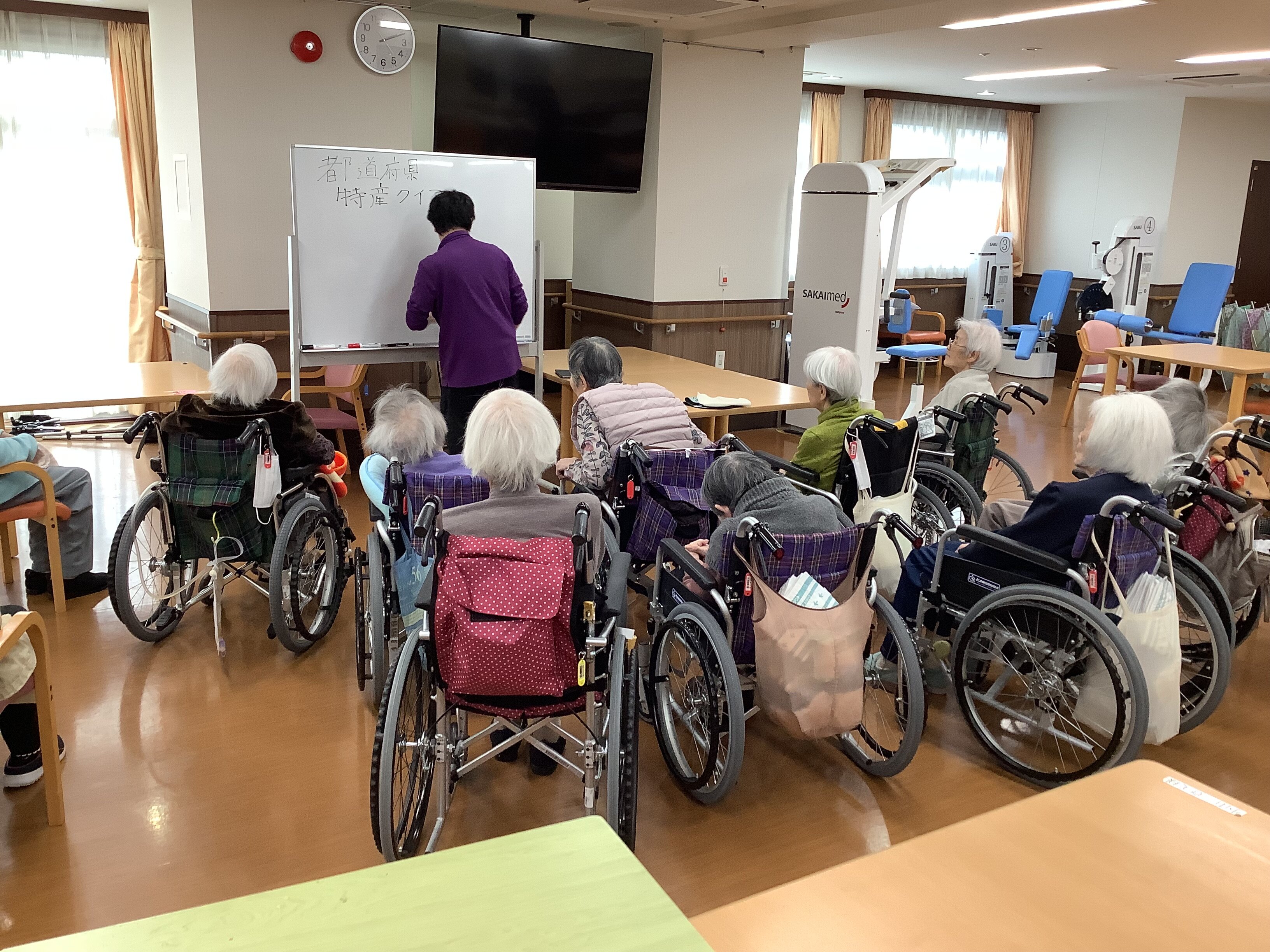 お花の問題は簡単な問題から難しい問題まで20問近くやりましたが、女性のご入居者がよく答えられていました。