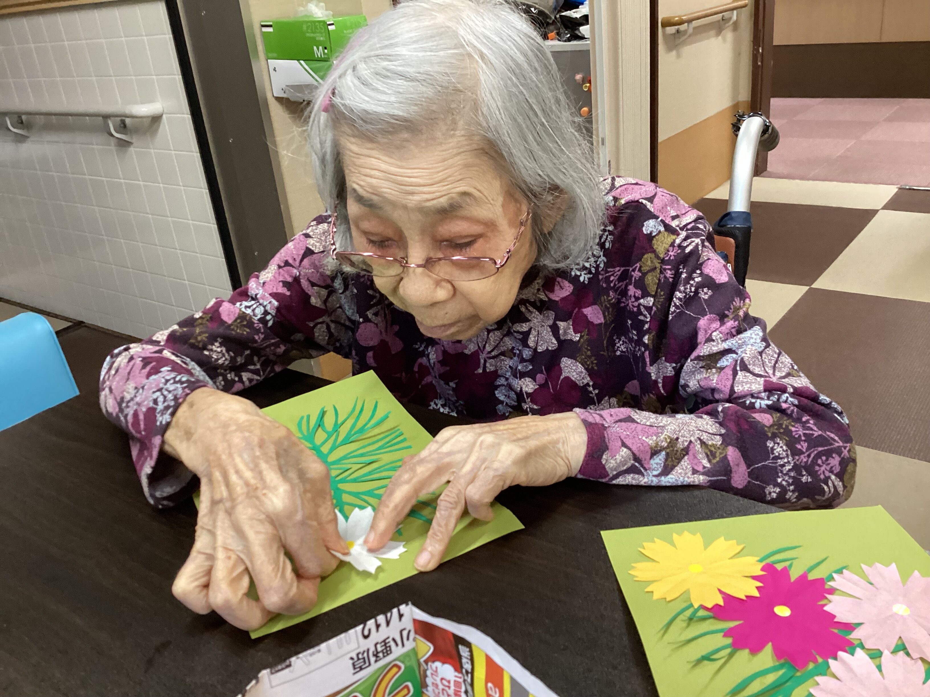 今回は芸術の秋ということでご入居者の方々と一緒に制作しましたーーー!