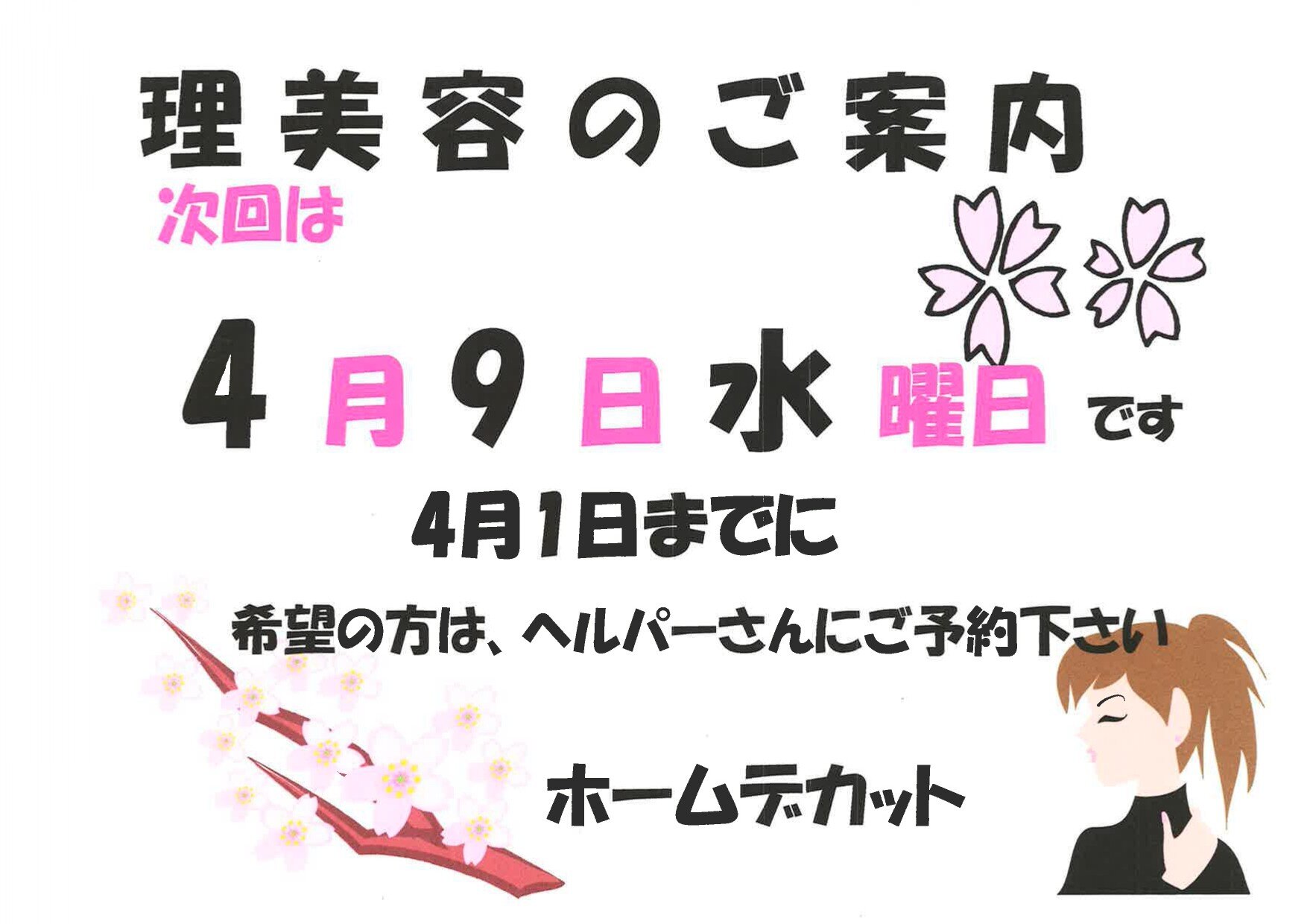 さくら通りでは毎月第二水曜日に訪問理美容さんに来て頂きヘアカットを予約しております!