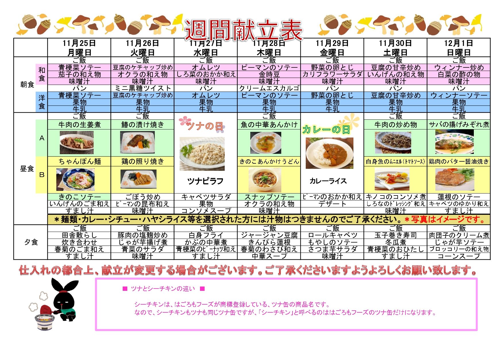 1月最後の献立表です。