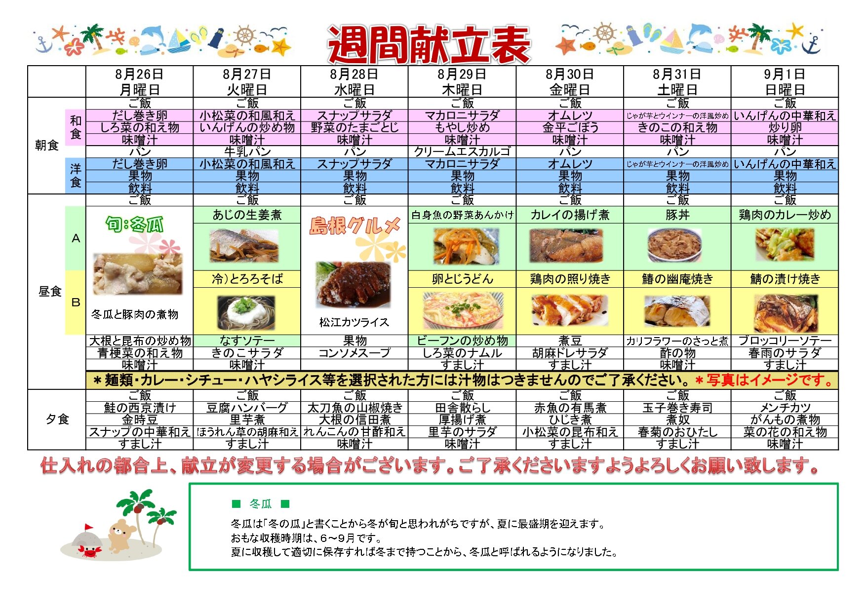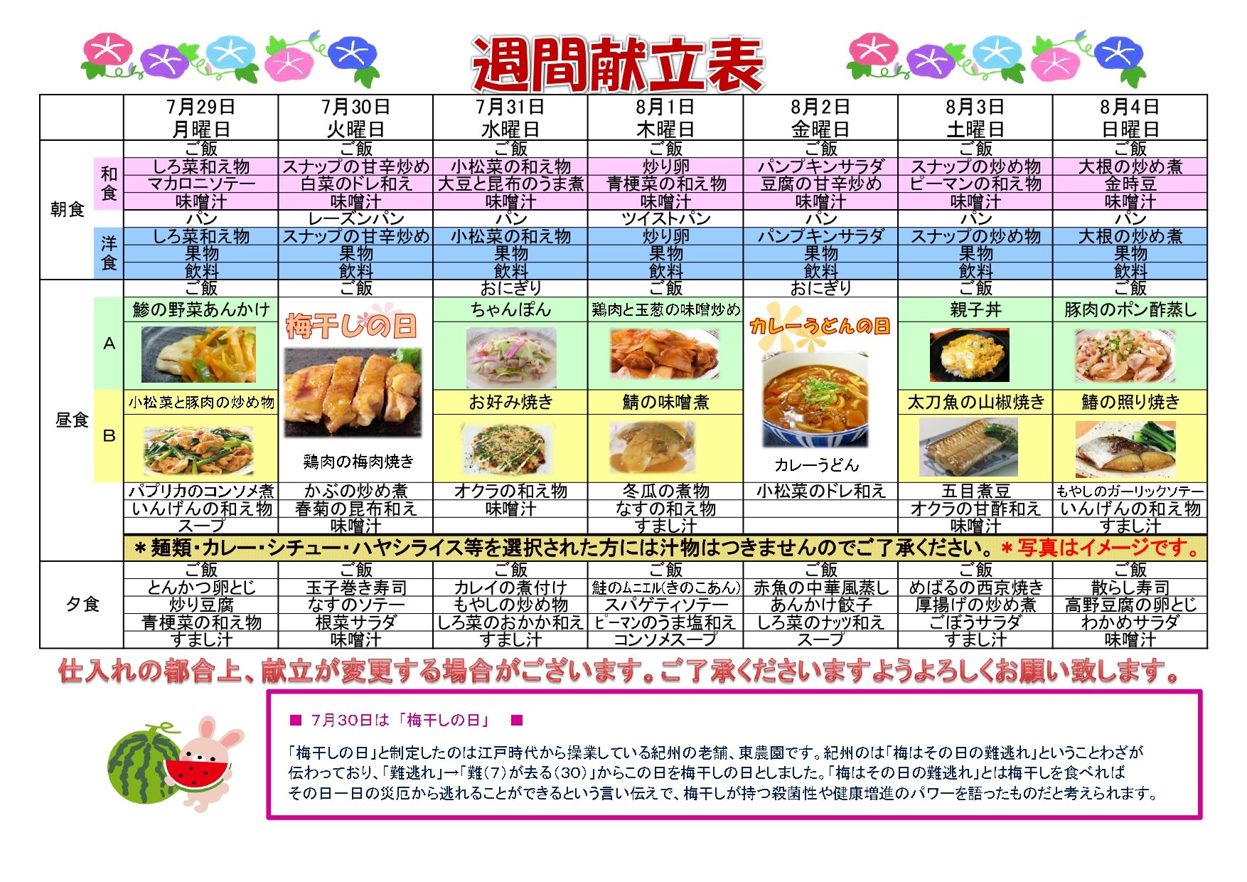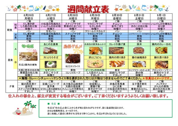 来週の献立表です。
