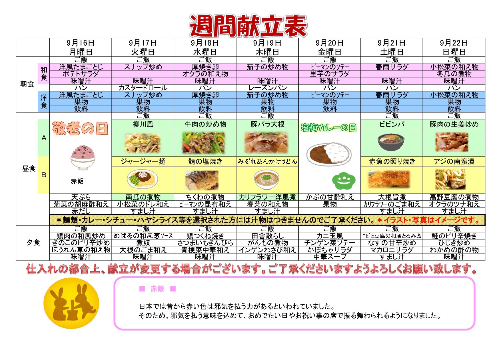 来週の献立表でーす