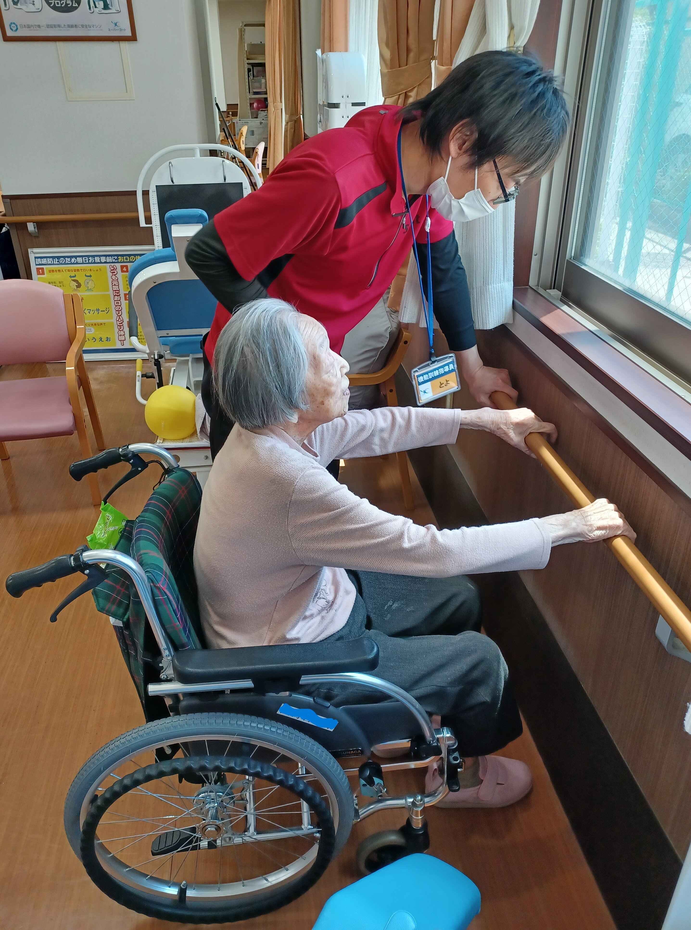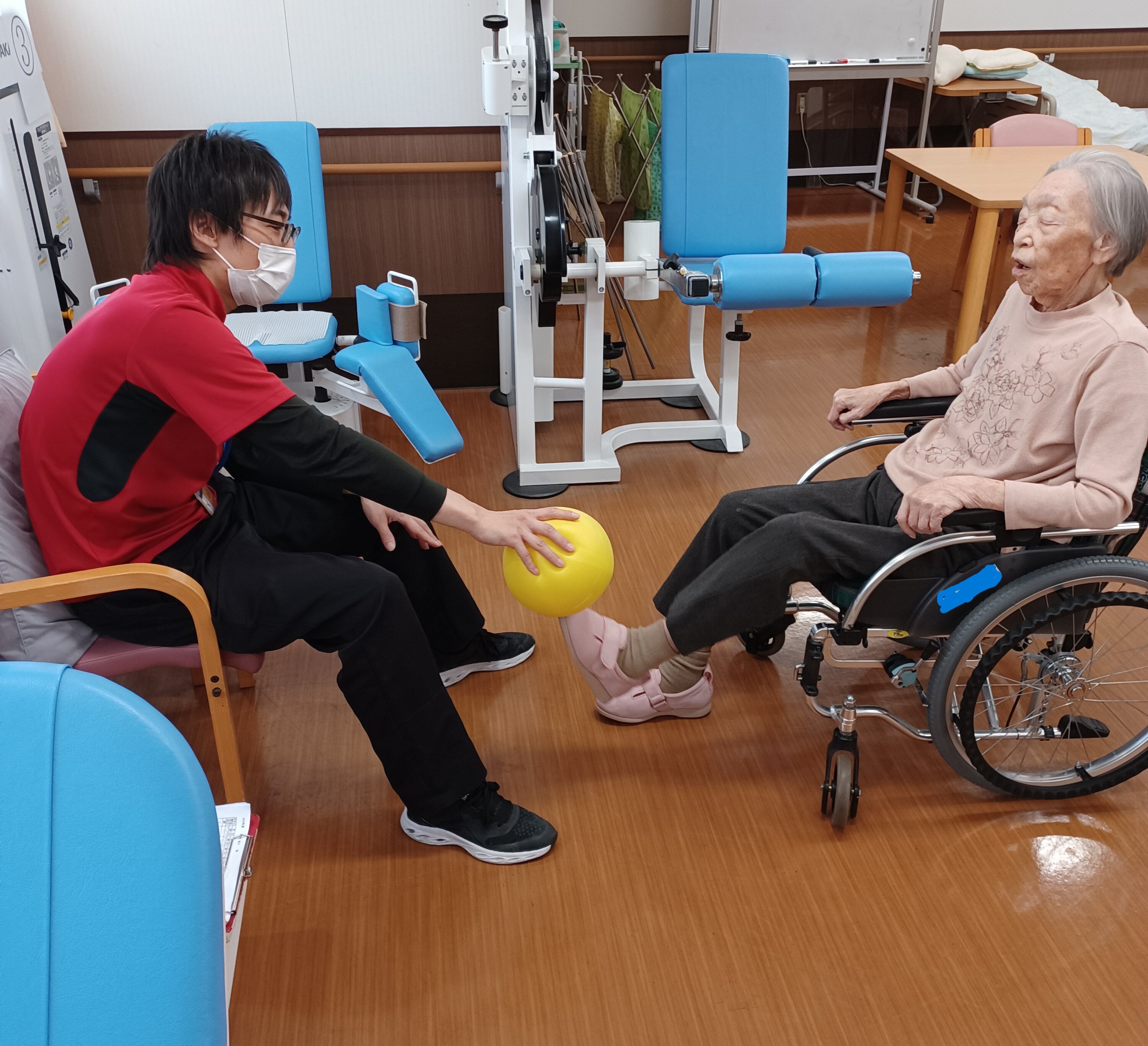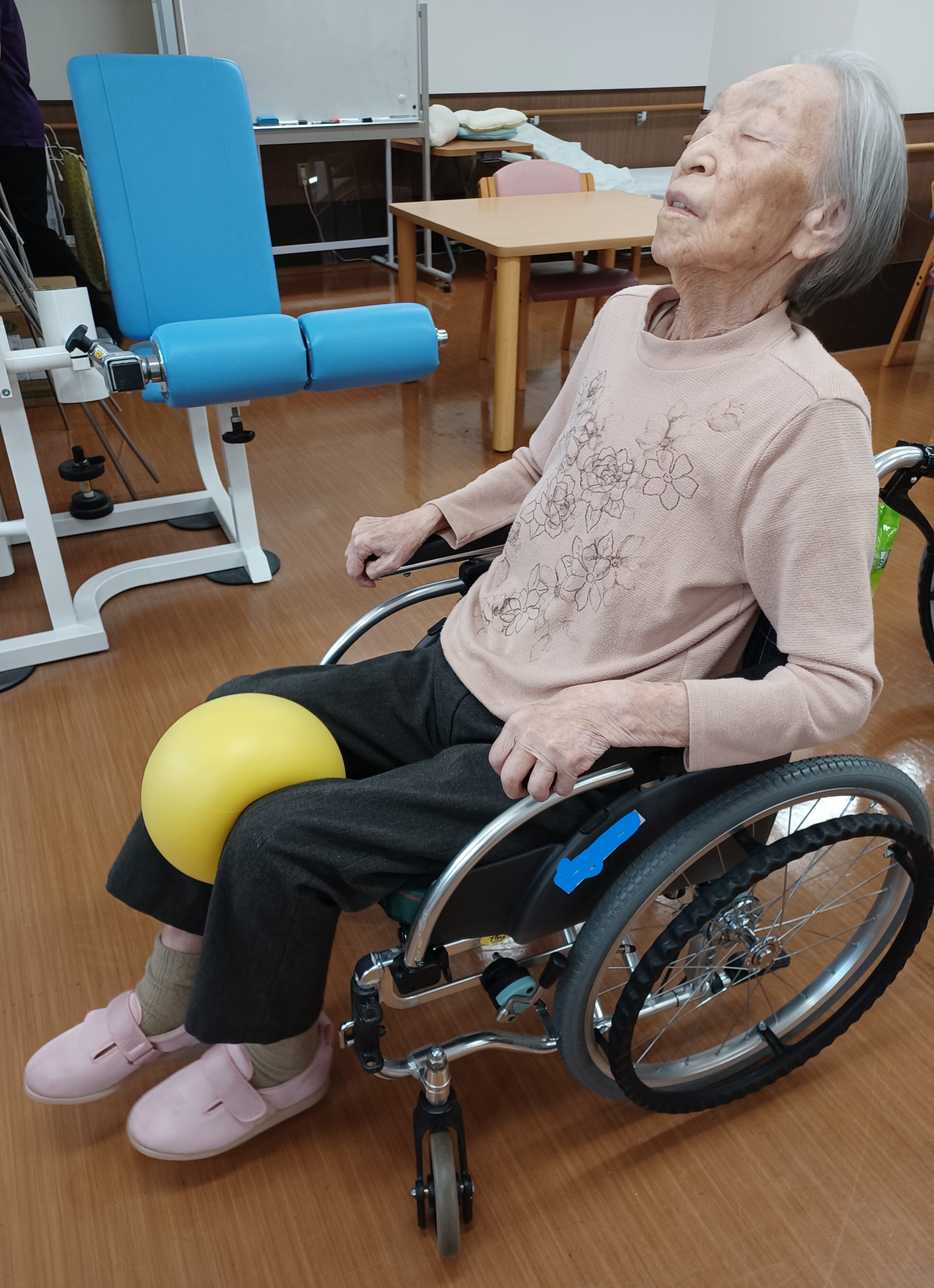 早速ですが、寒さに負けず、風邪にも負けない元気なご入居者の機能訓練のご様子をご覧ください。