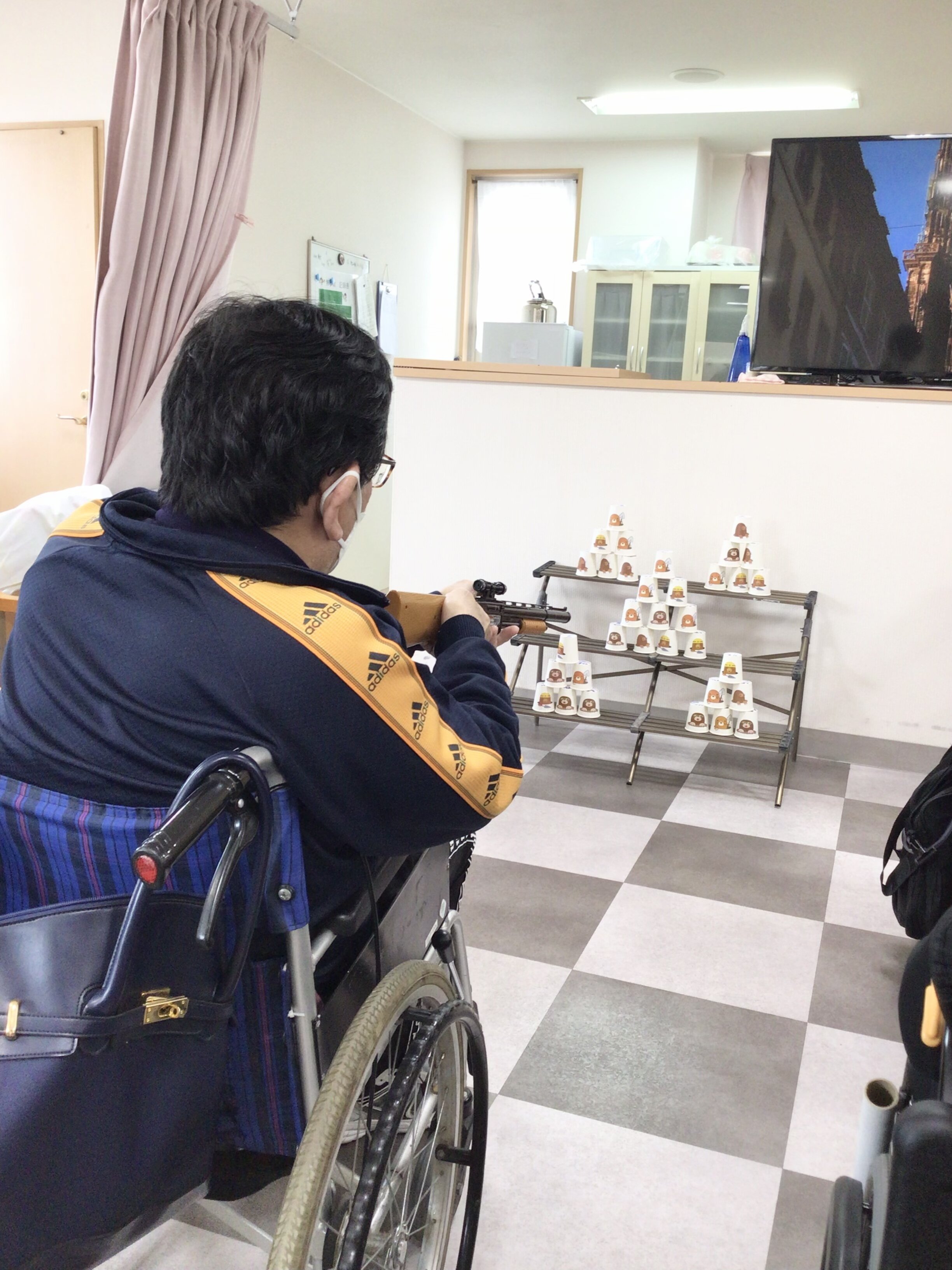 誰が一番高く積めるか競い合い、最後には二人のご利用者勝ち抜けて決勝戦へ進みました。