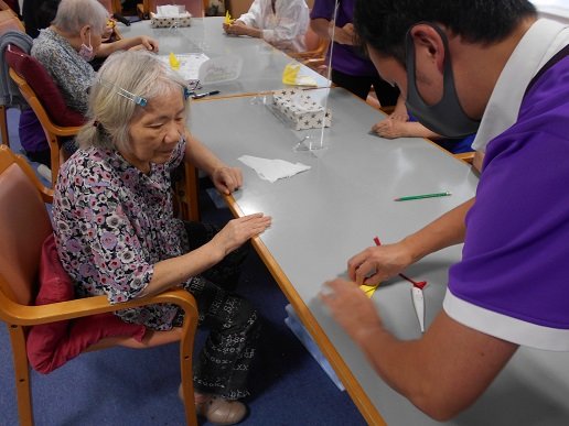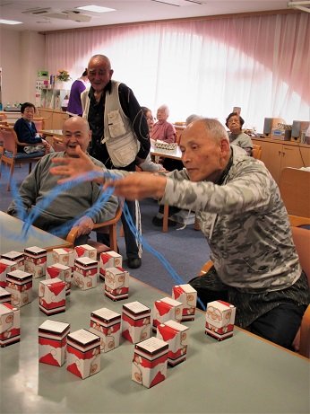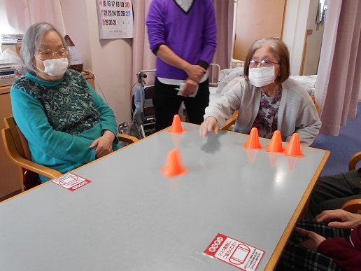最近はせいりょうで、ご利用者と「ふわふわっか積む」のゲームを楽しみました。