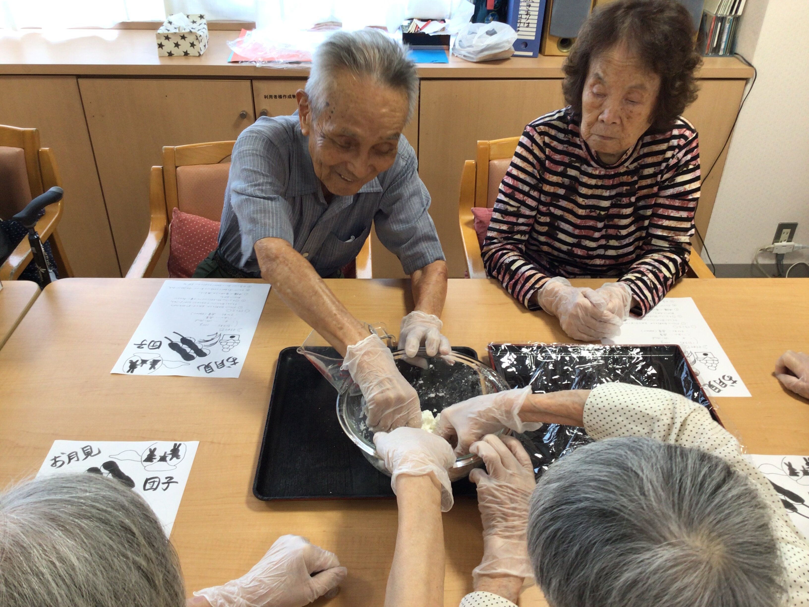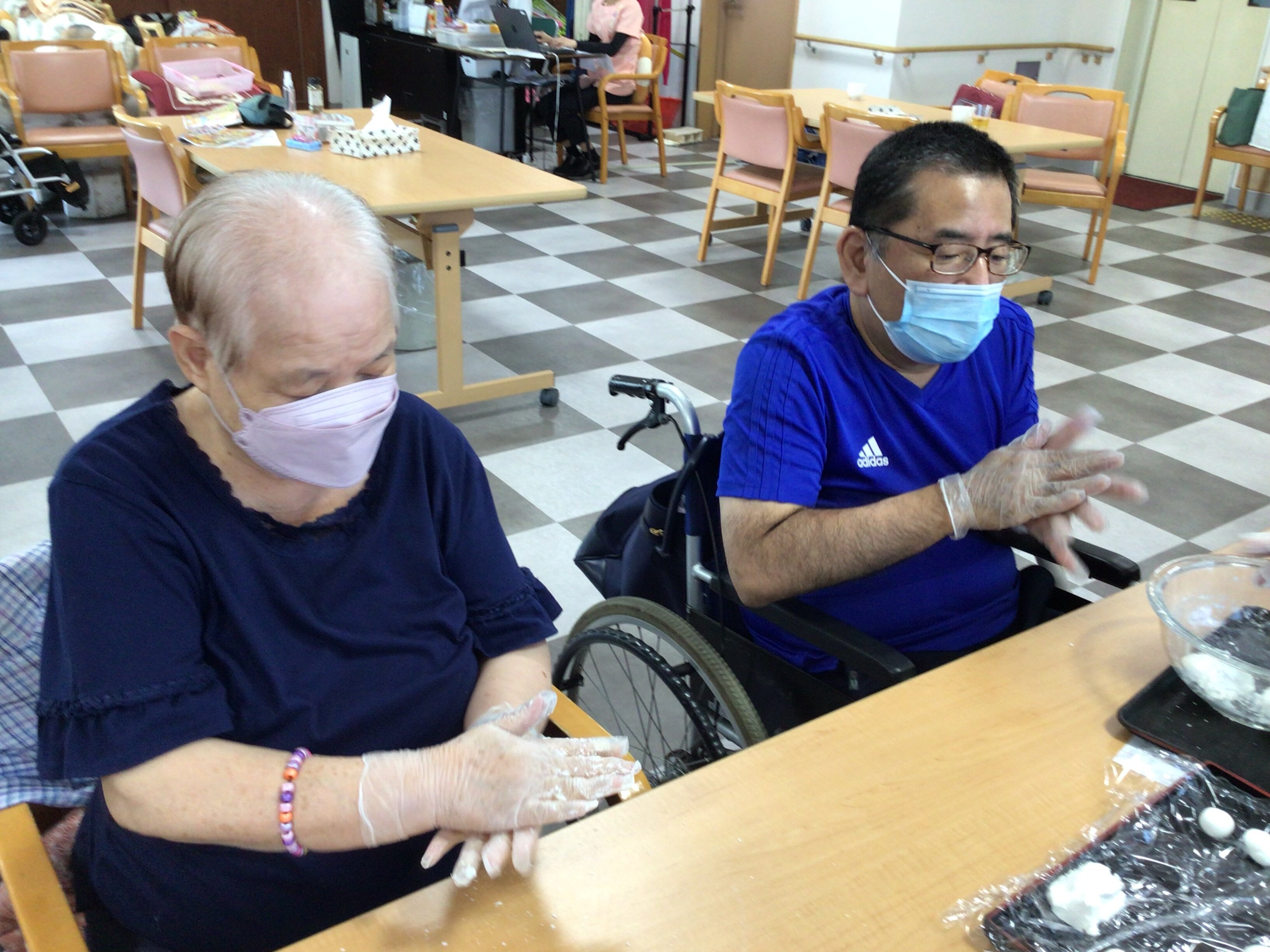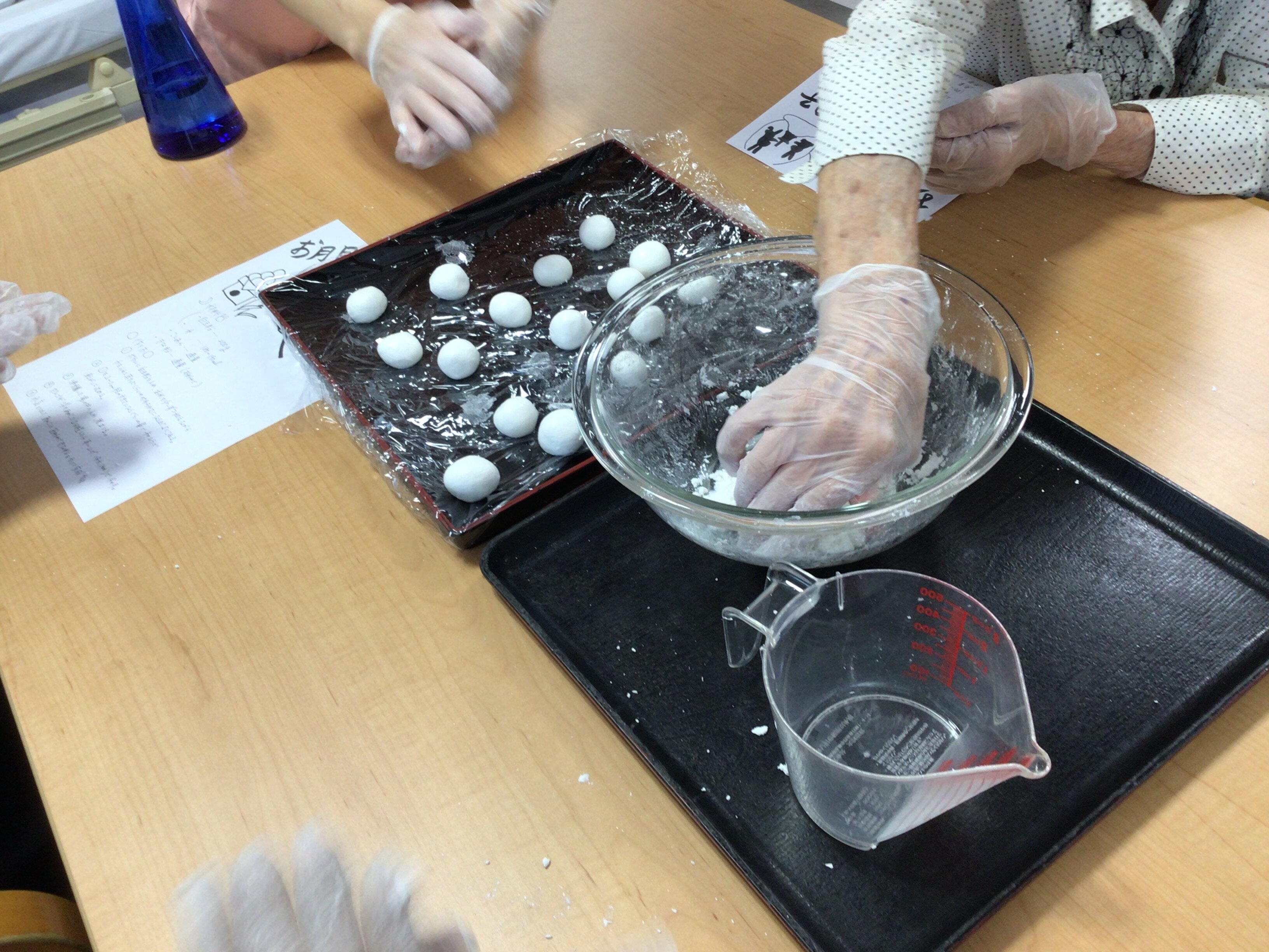 せいりょうでも中秋の名月(十五夜)の日に、皆さんで一緒にお月見団子を作って、食べました~(*^^*)