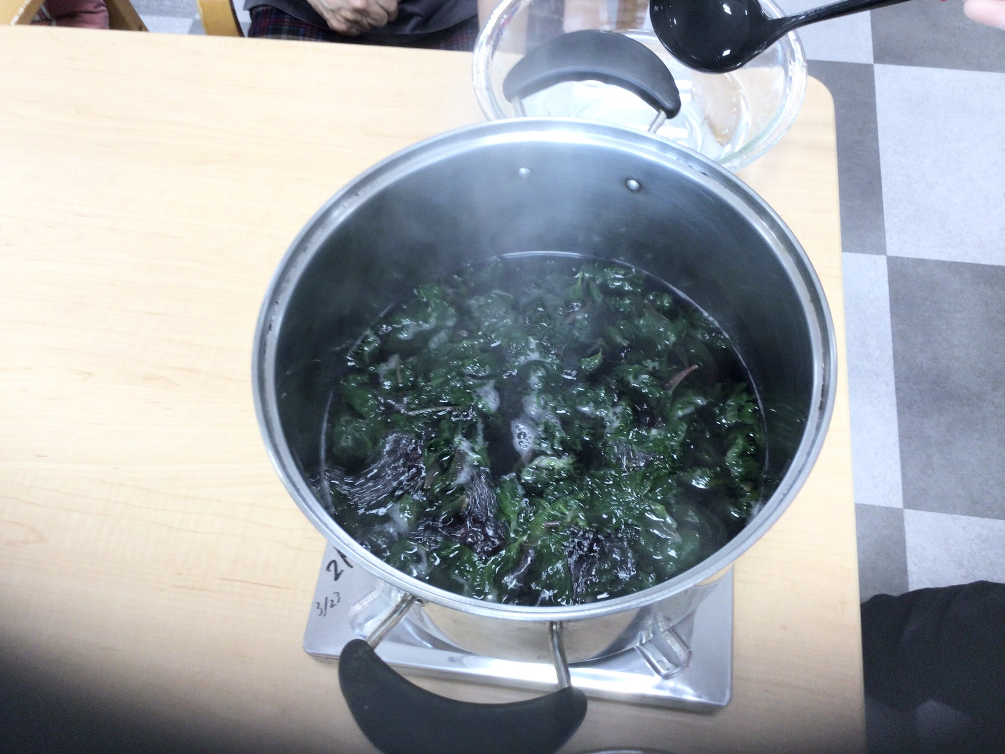 ❀ 鍋に水を入れ、沸騰したら洗った葉を入れて5分煮る。