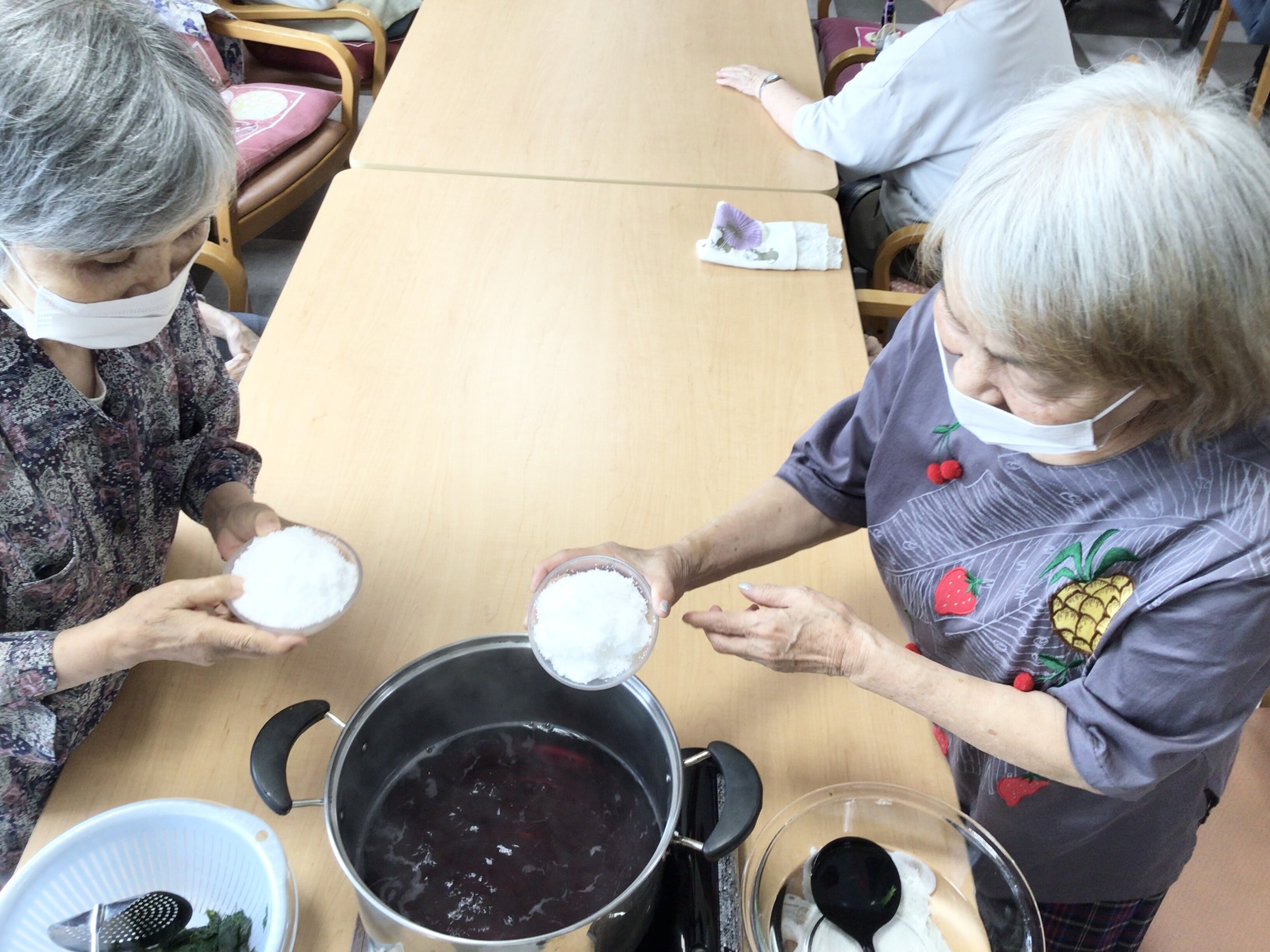 今日、ご利用者と一緒に、7月に向けて「しそジュース」を作りをしました♪