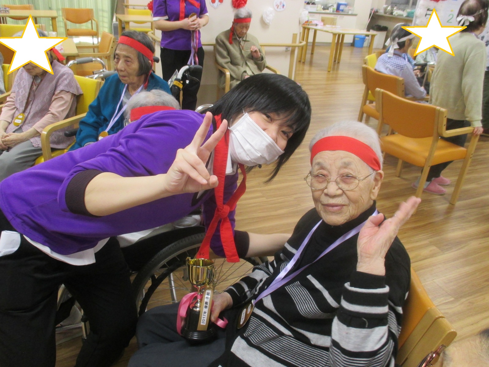 優勝した赤組にはトロフィーを!