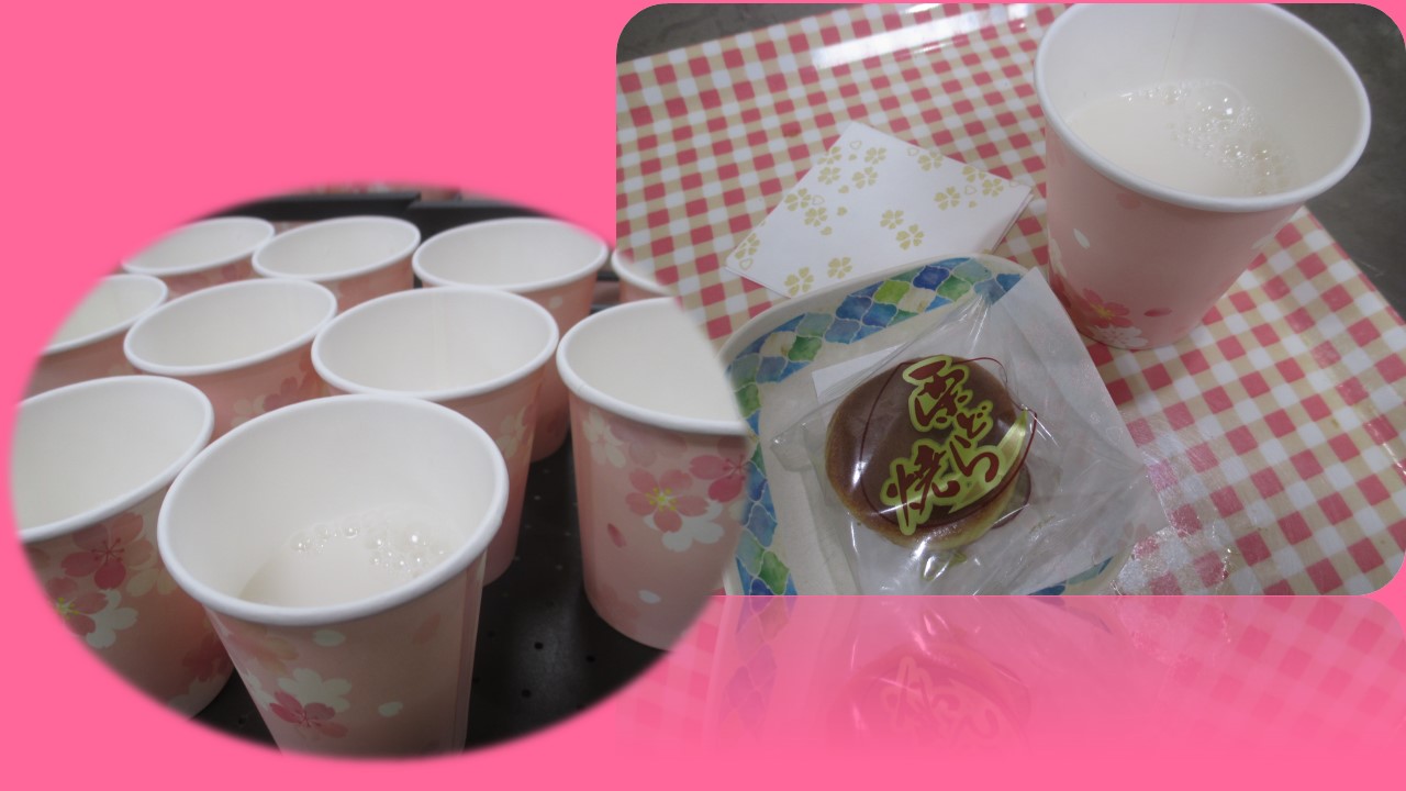 ひな祭りの日にはおやつの際に、甘酒とどら焼きをみんなで食べました!!