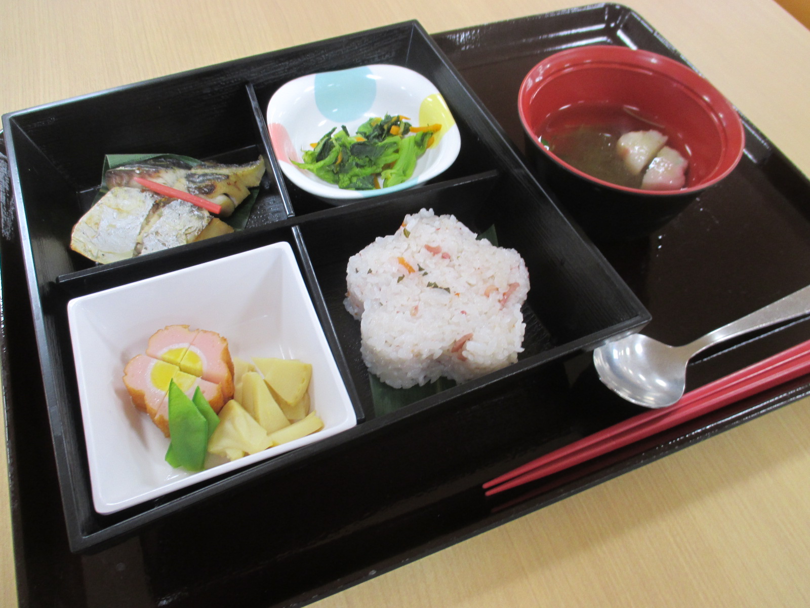 四月はやっぱり桜!ということで、桜をかたどったごはんなど、綺麗なメニューが出ました!(^^)!