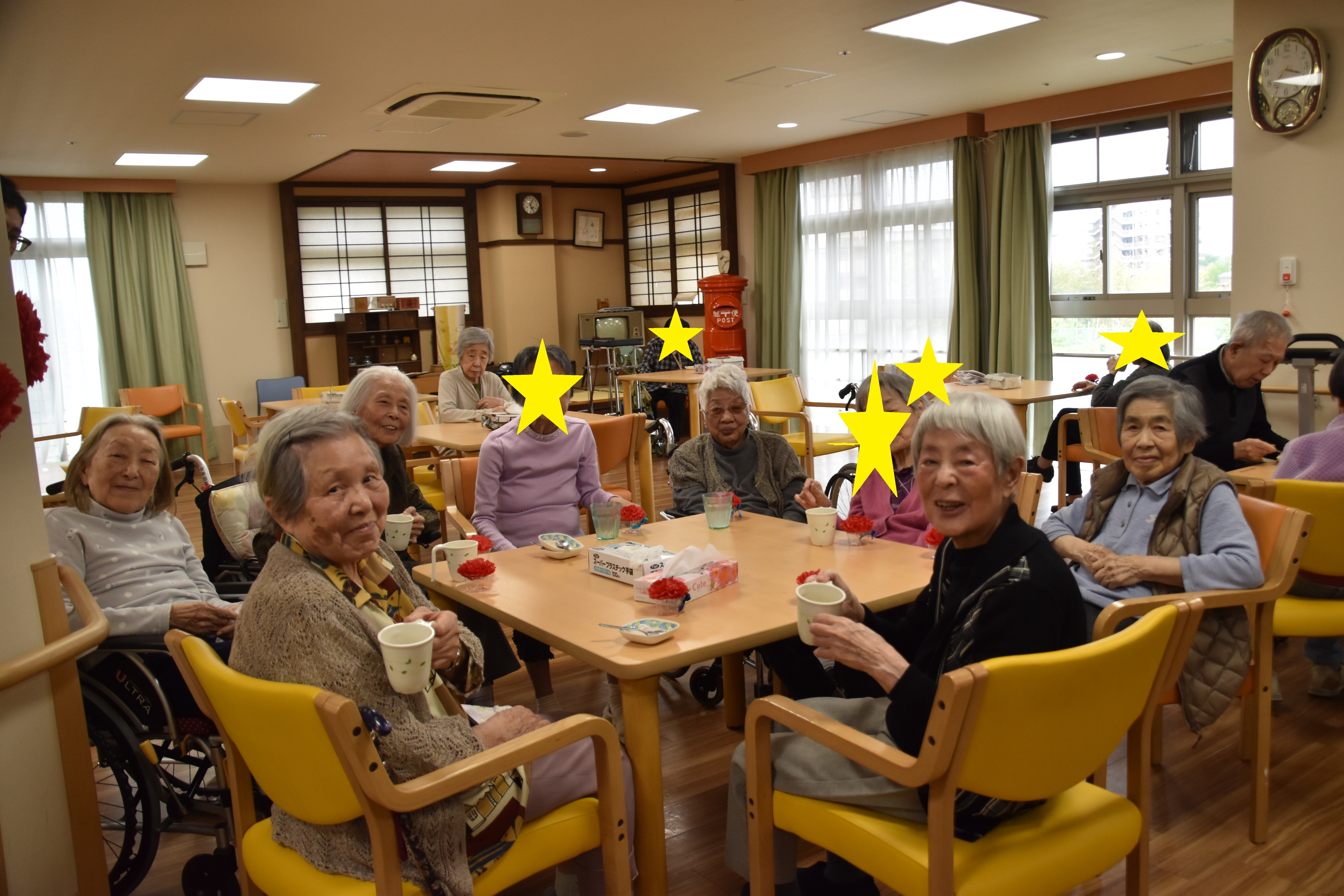 おやつを食べながら、みんなで和気あいあいと楽しんでおられます♫