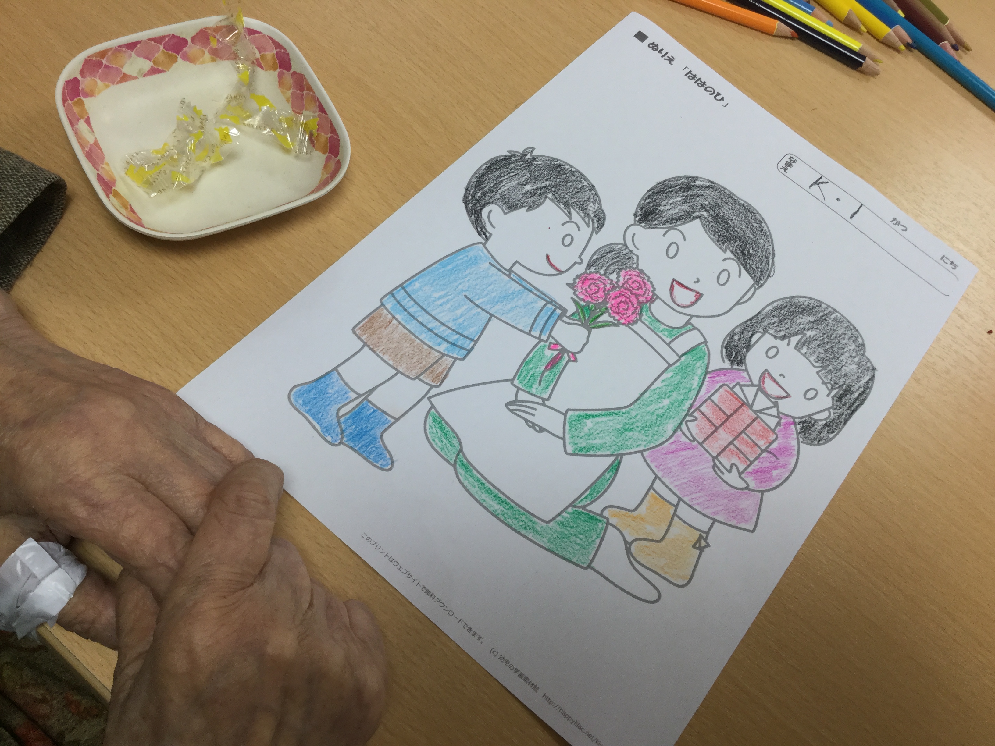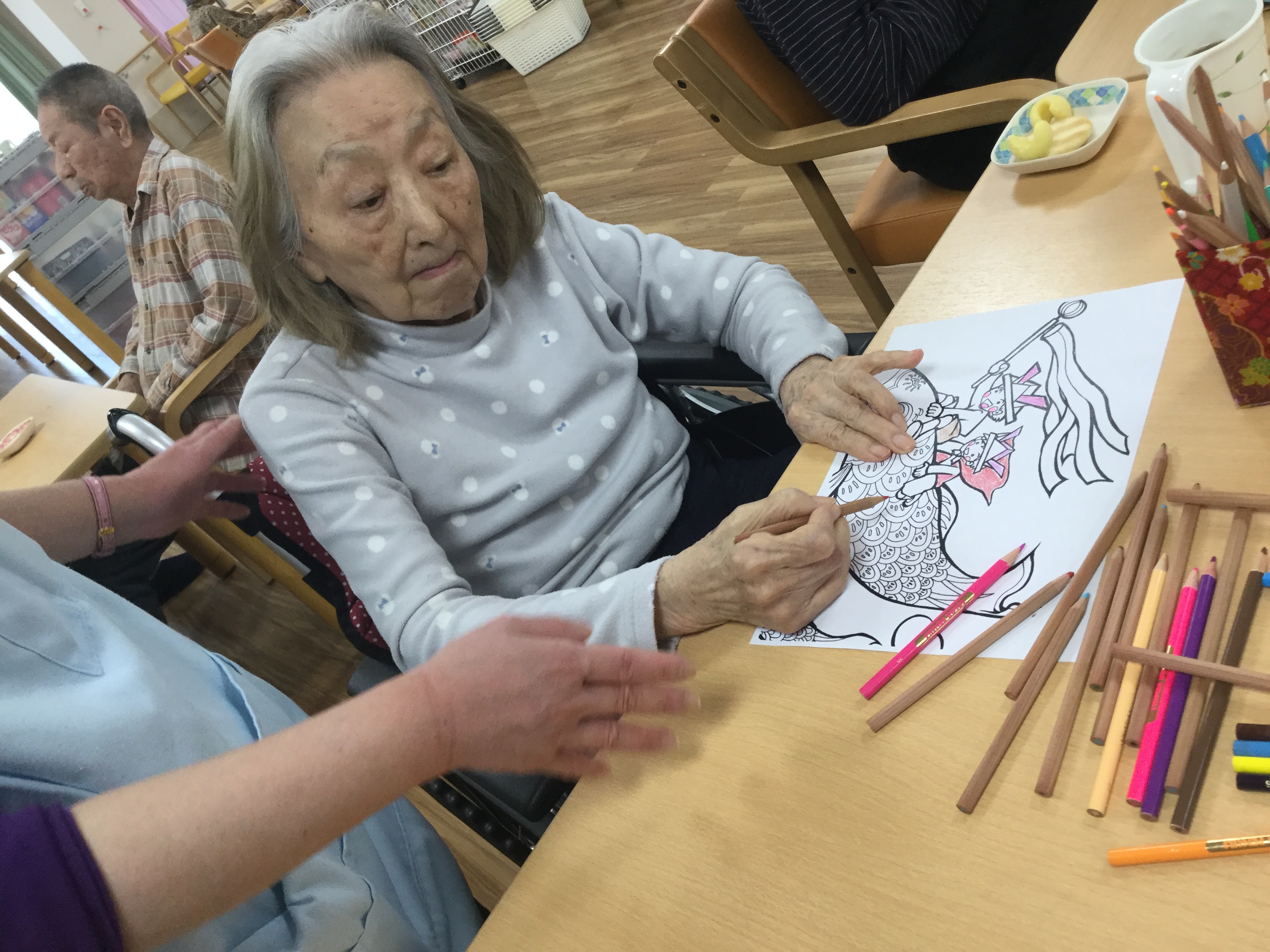 持参の色鉛筆で集中して描くご入居者様も!?!?