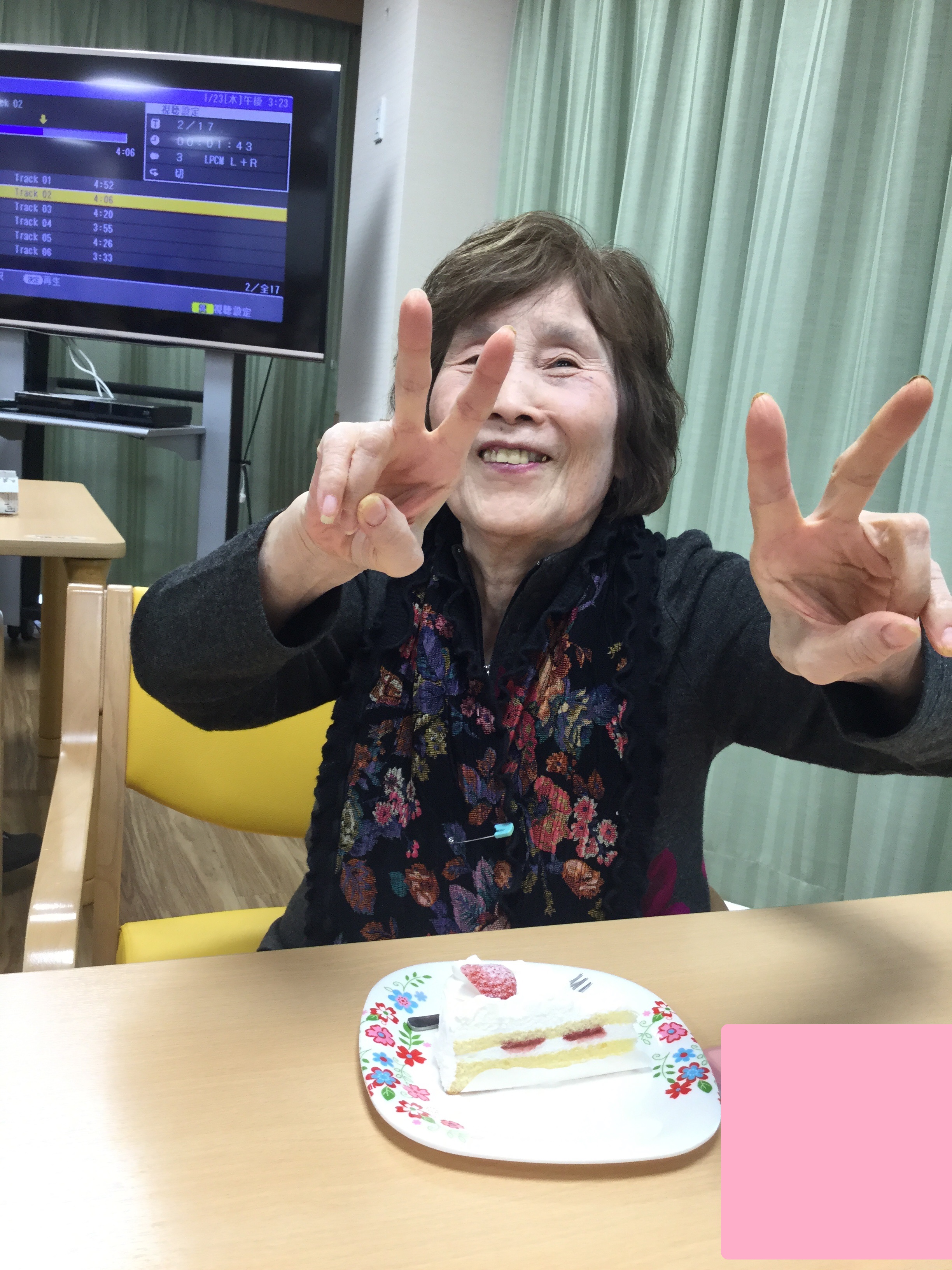 今回参加できなかった方のお祝いはお部屋でカードの贈呈、様子を見つつケーキも召し上がって頂きました!