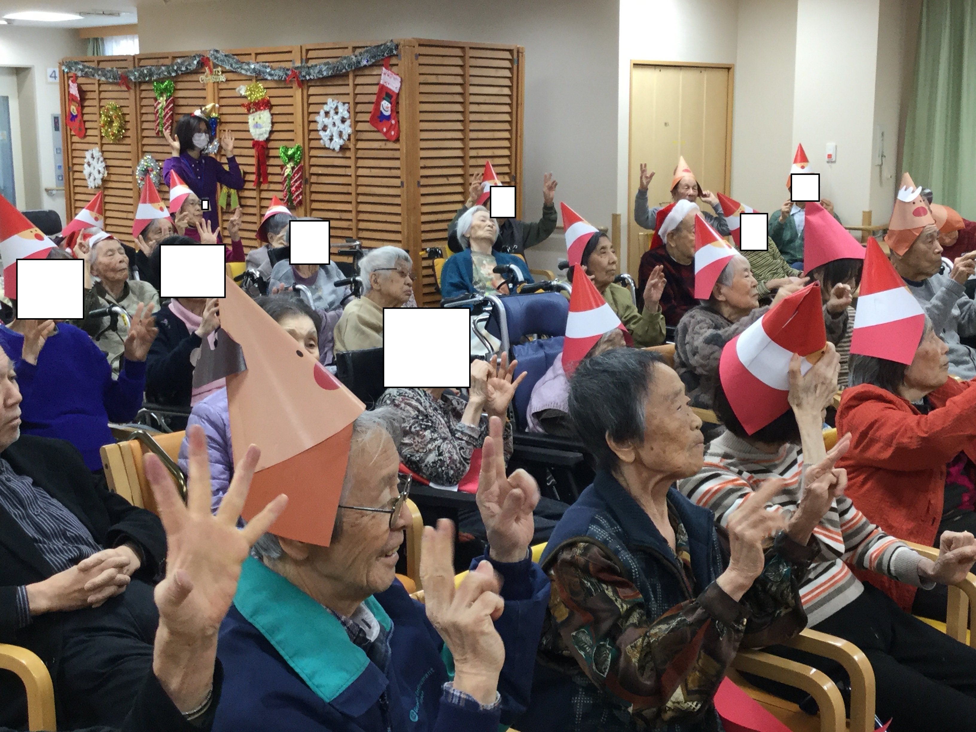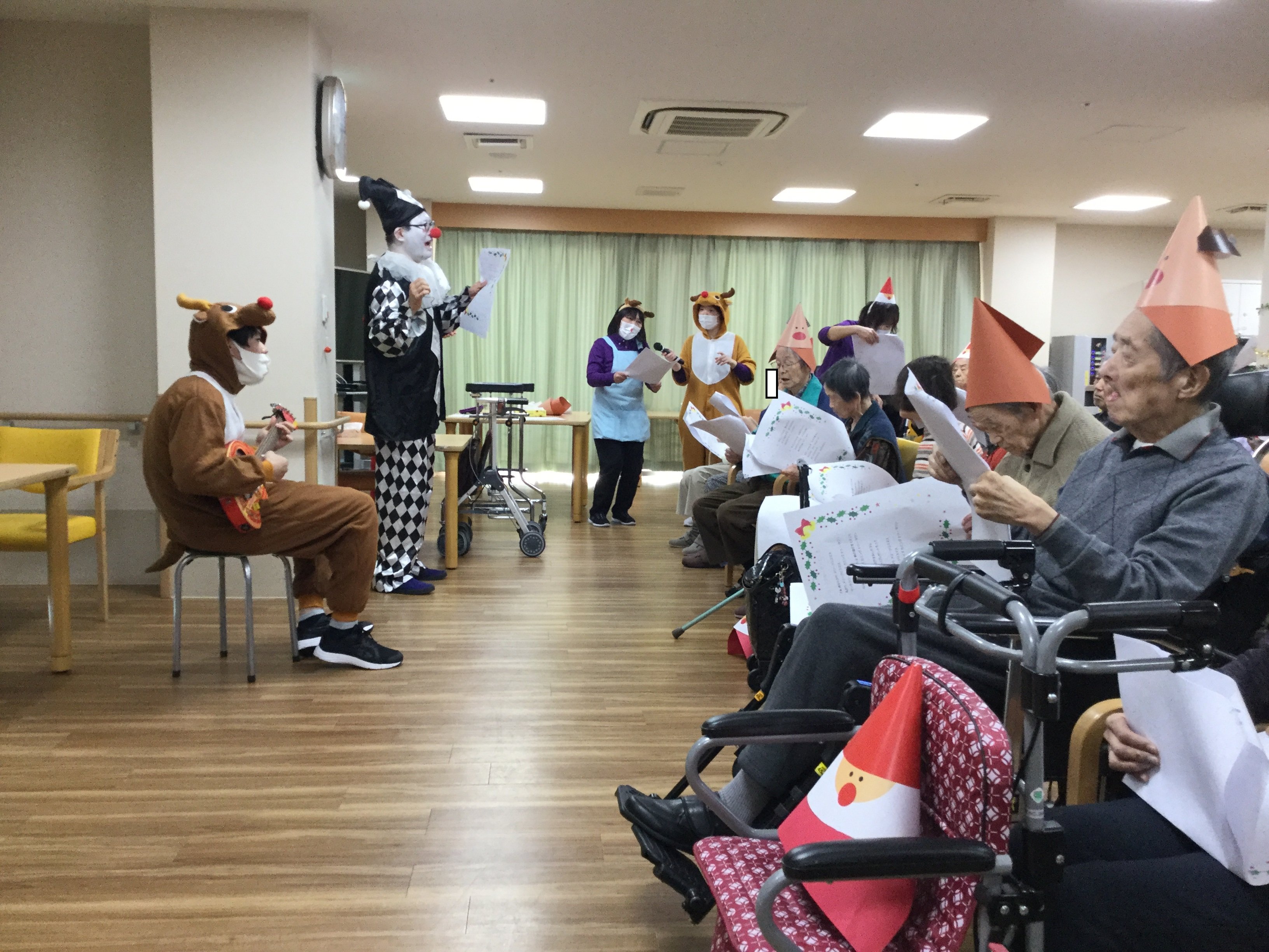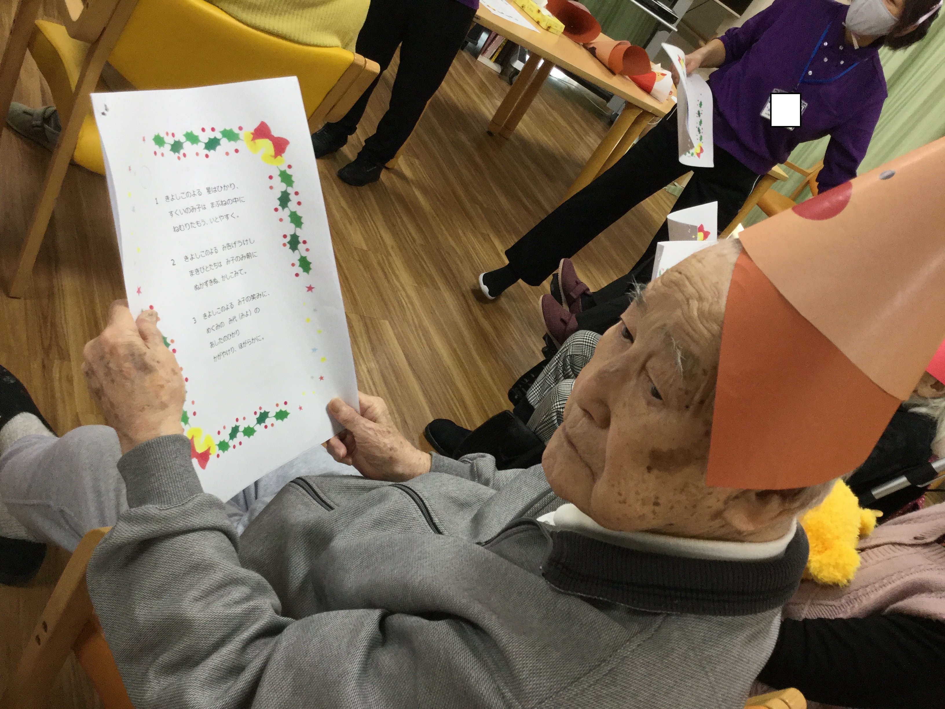 次にクリスマスソングを4曲合唱しました!そのうち1曲はスタッフによる生演奏での合唱です(; ・`д・´)