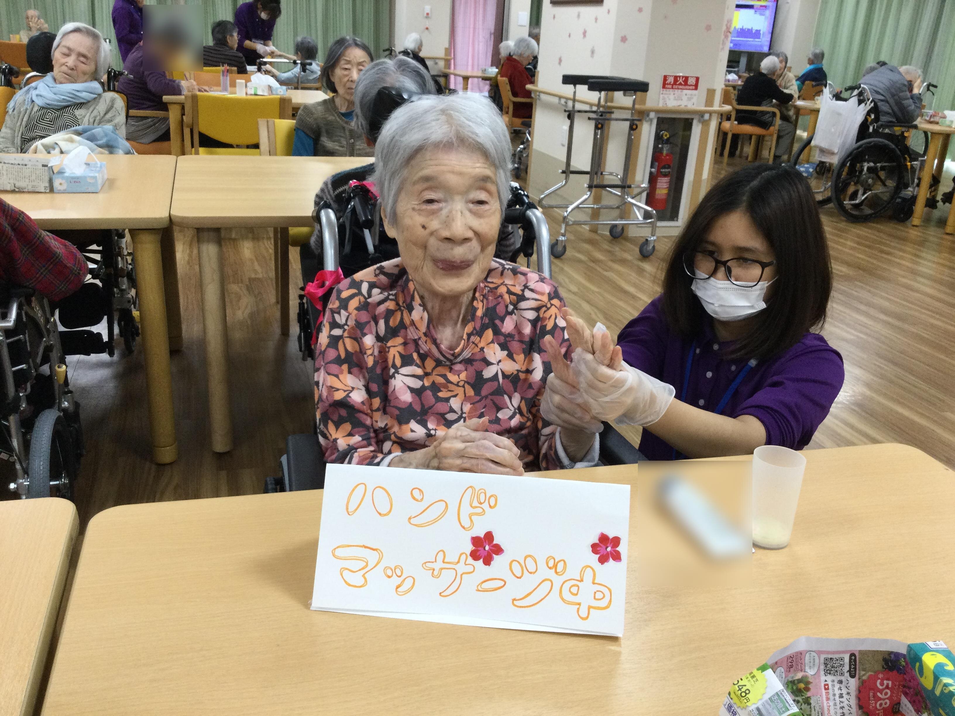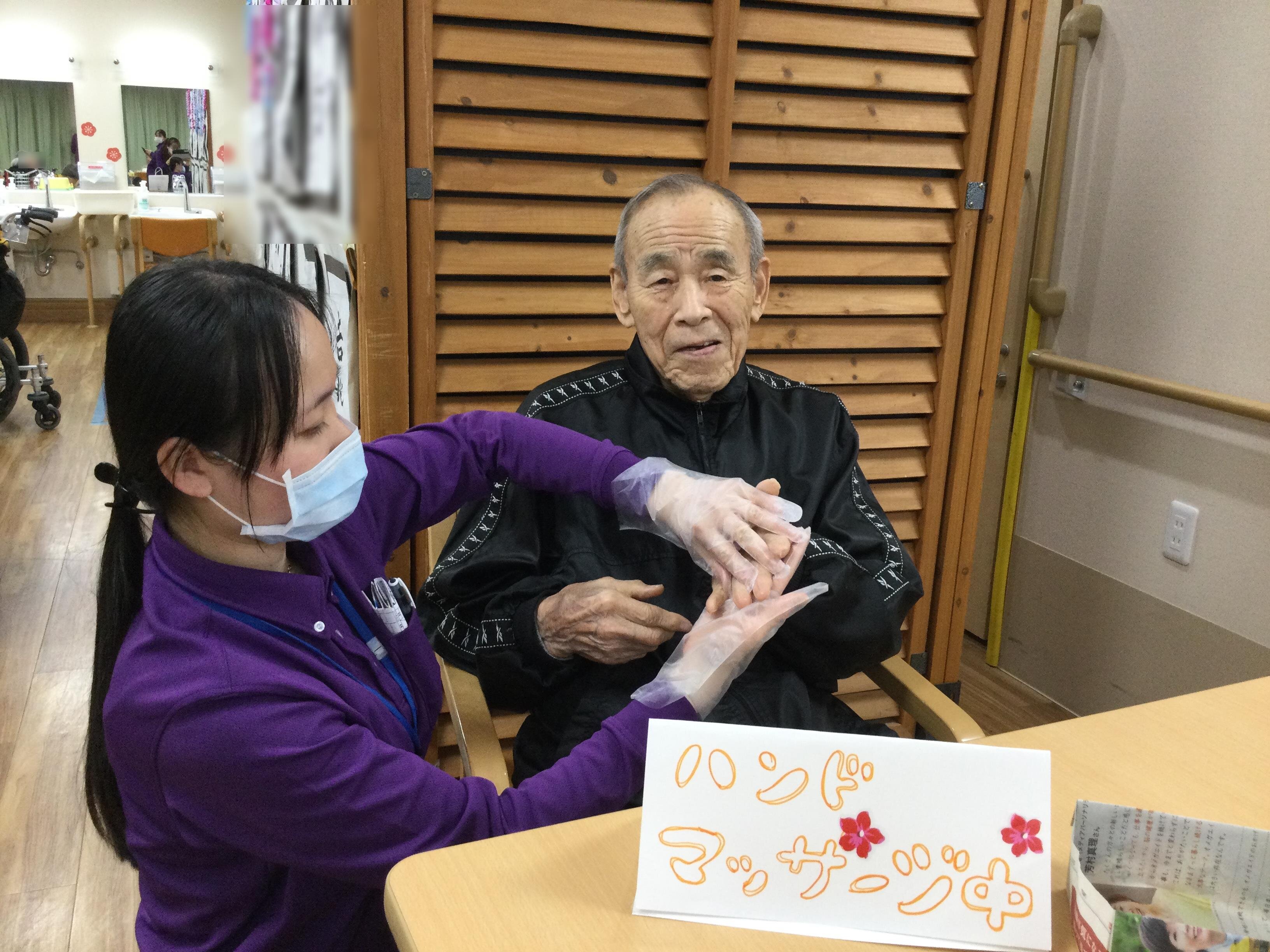 今回のレクリエーションは癒し効果のあるハンドマッサージレクを行いました\(^o^)/