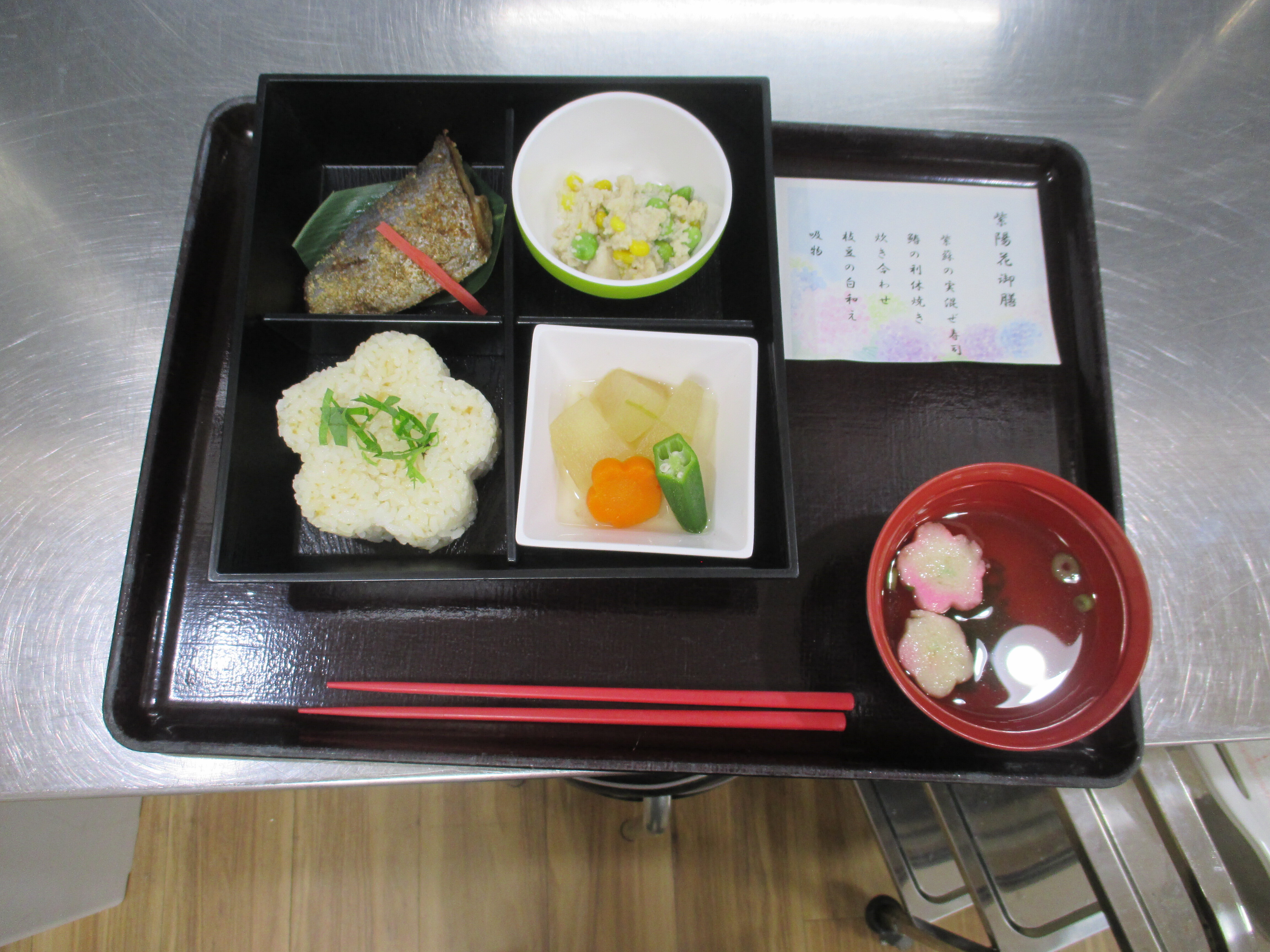 お膳の上にお花が散りばめられていてとても素敵なお膳でした( ´∀` )