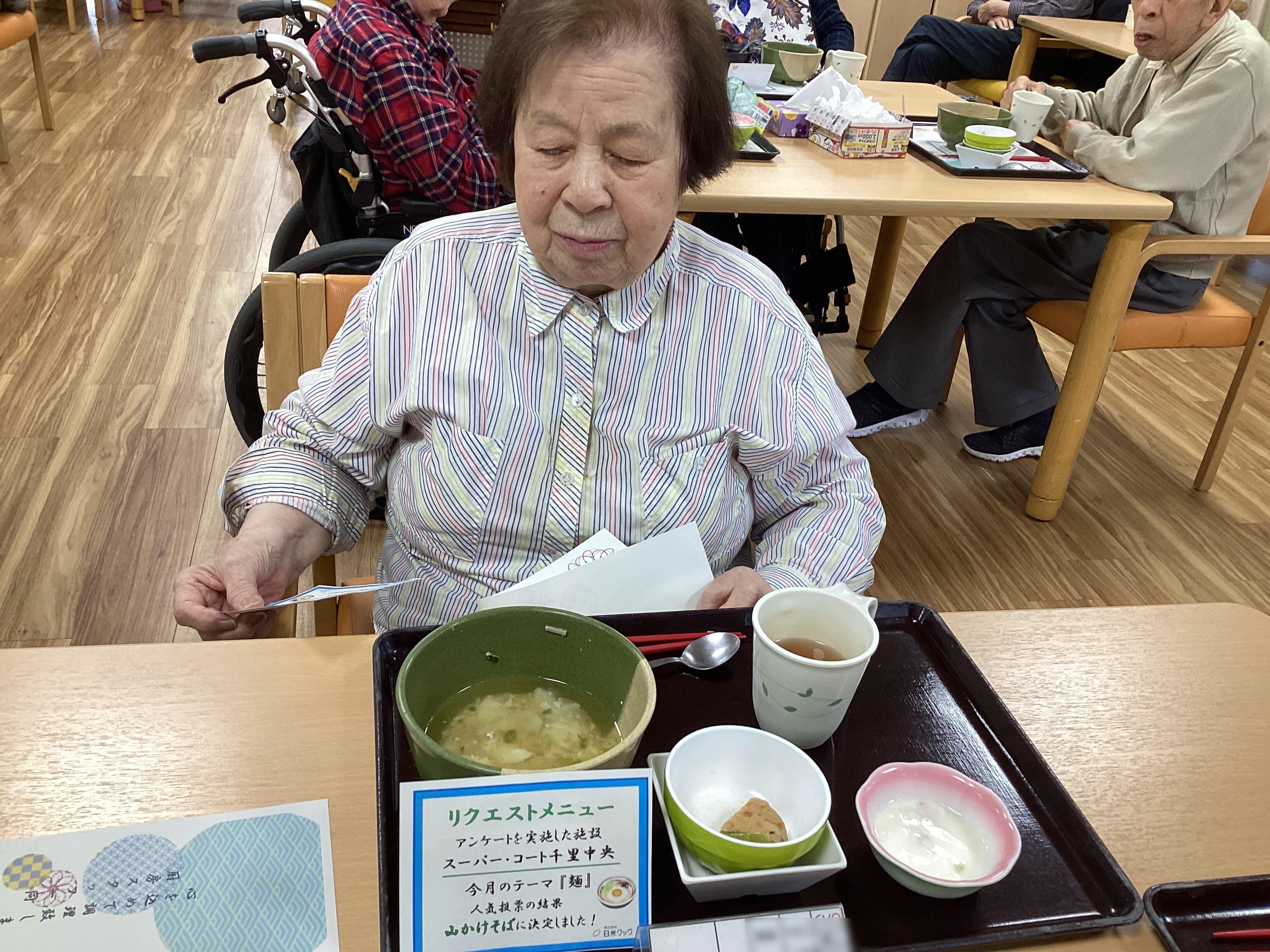 ご入居者からのリクエストメニュー、テーマは『麺』です。