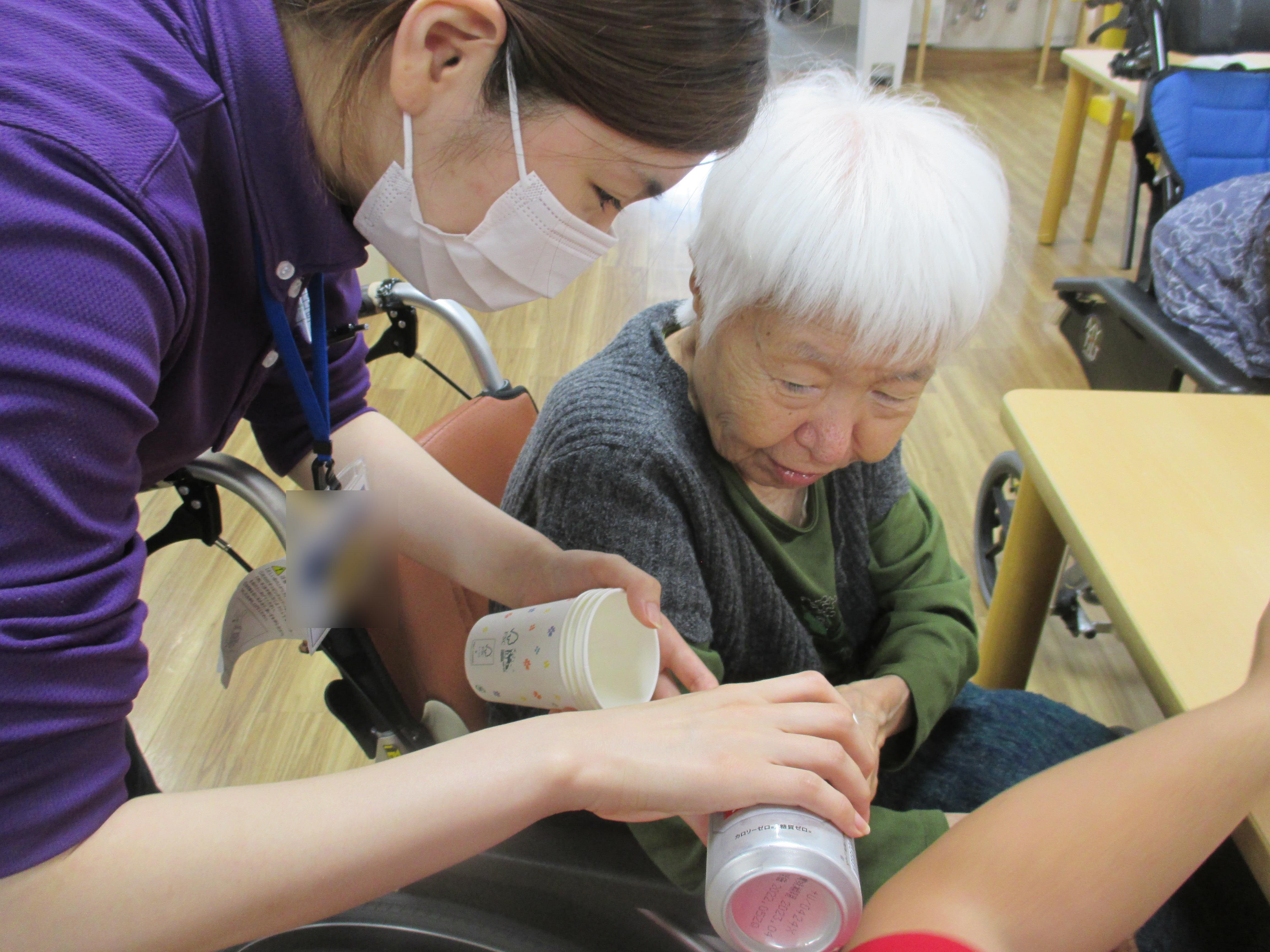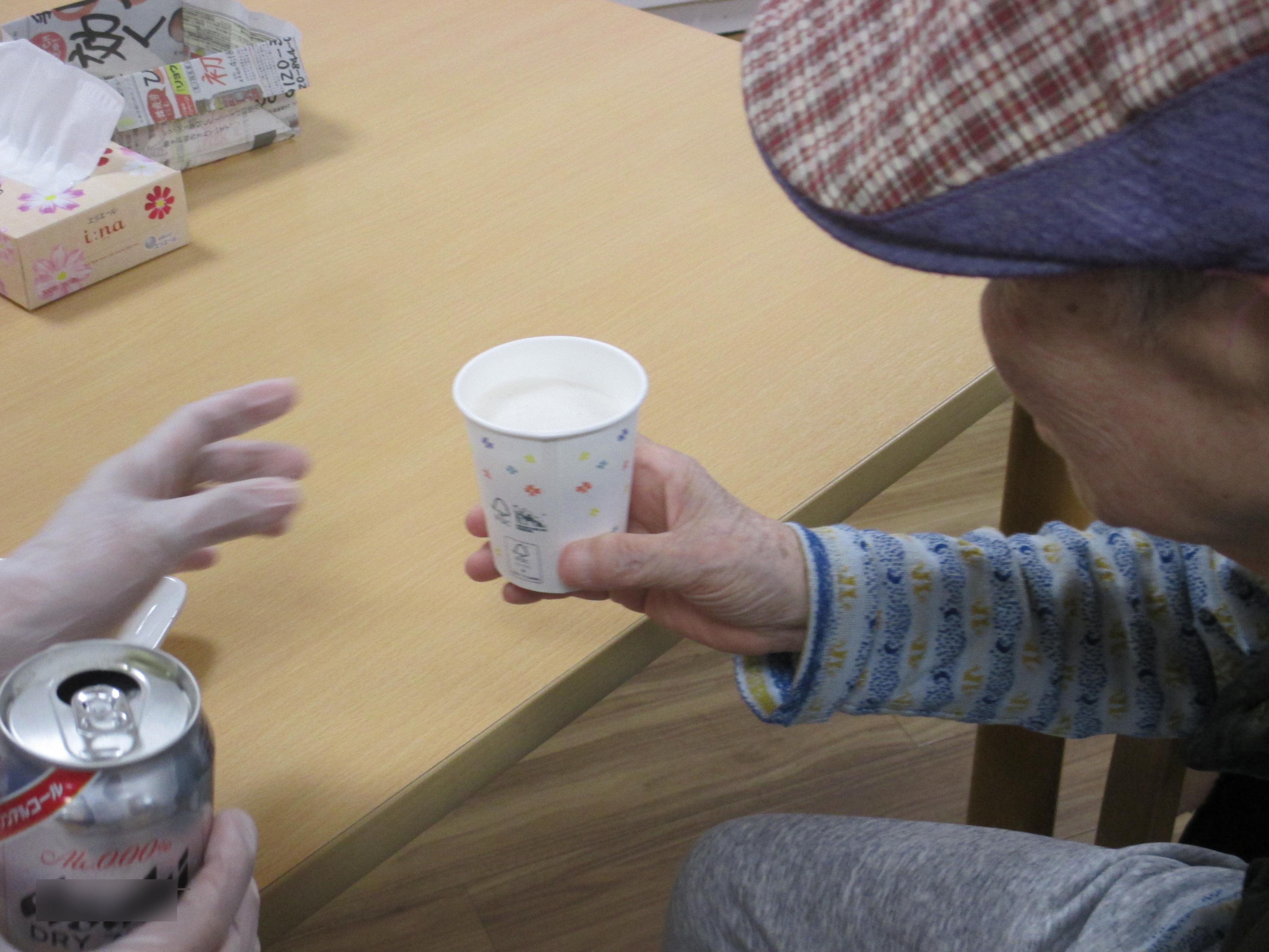 施設ではめったに飲むことがないビールを前にみなさん嬉しそうにされていました!