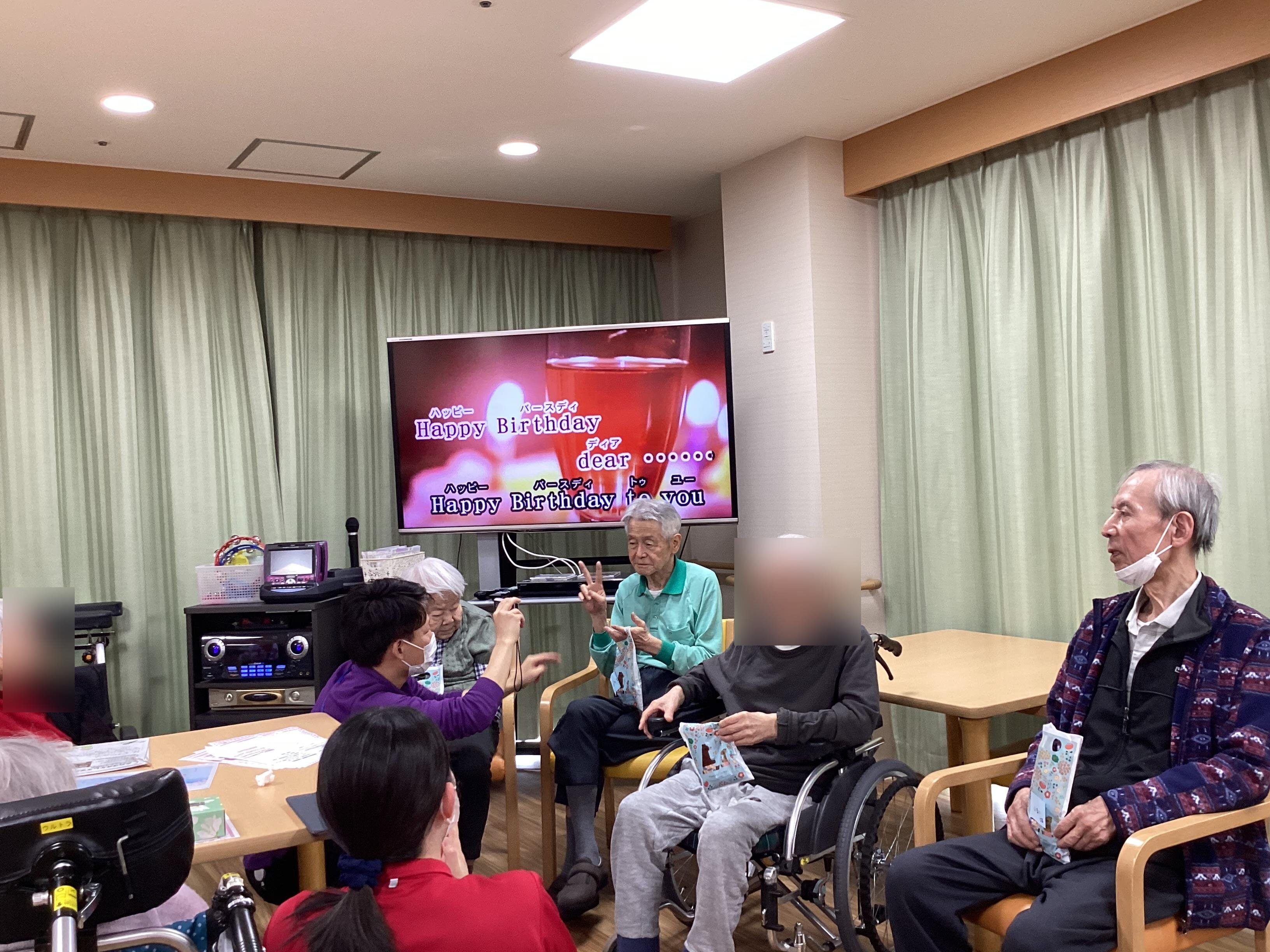 こちらは、四月のお誕生日会でのご様子です(^▽^)