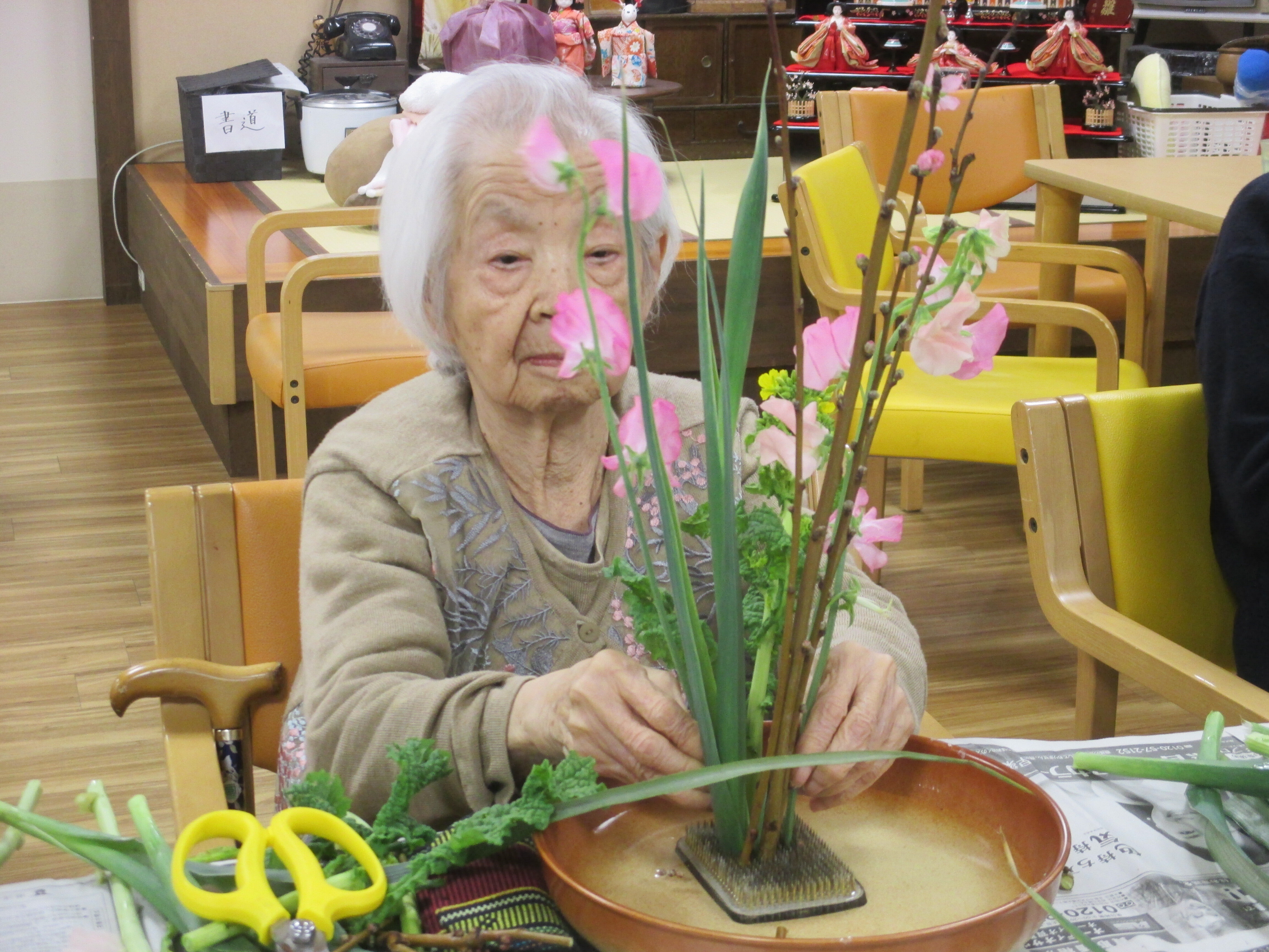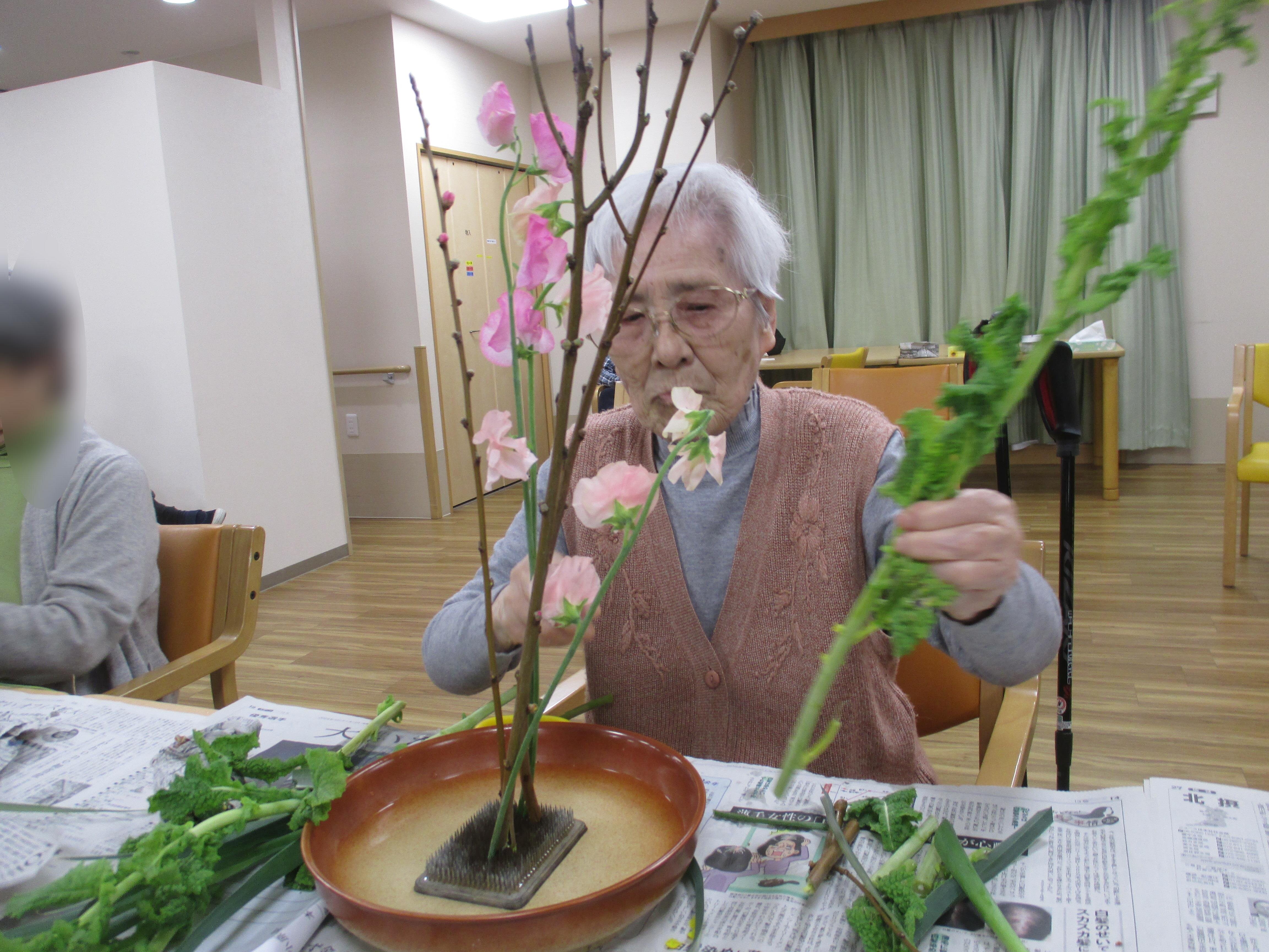 今回は、毎月恒例レクリエーション「生け花」のご様子を紹介したいと思います!