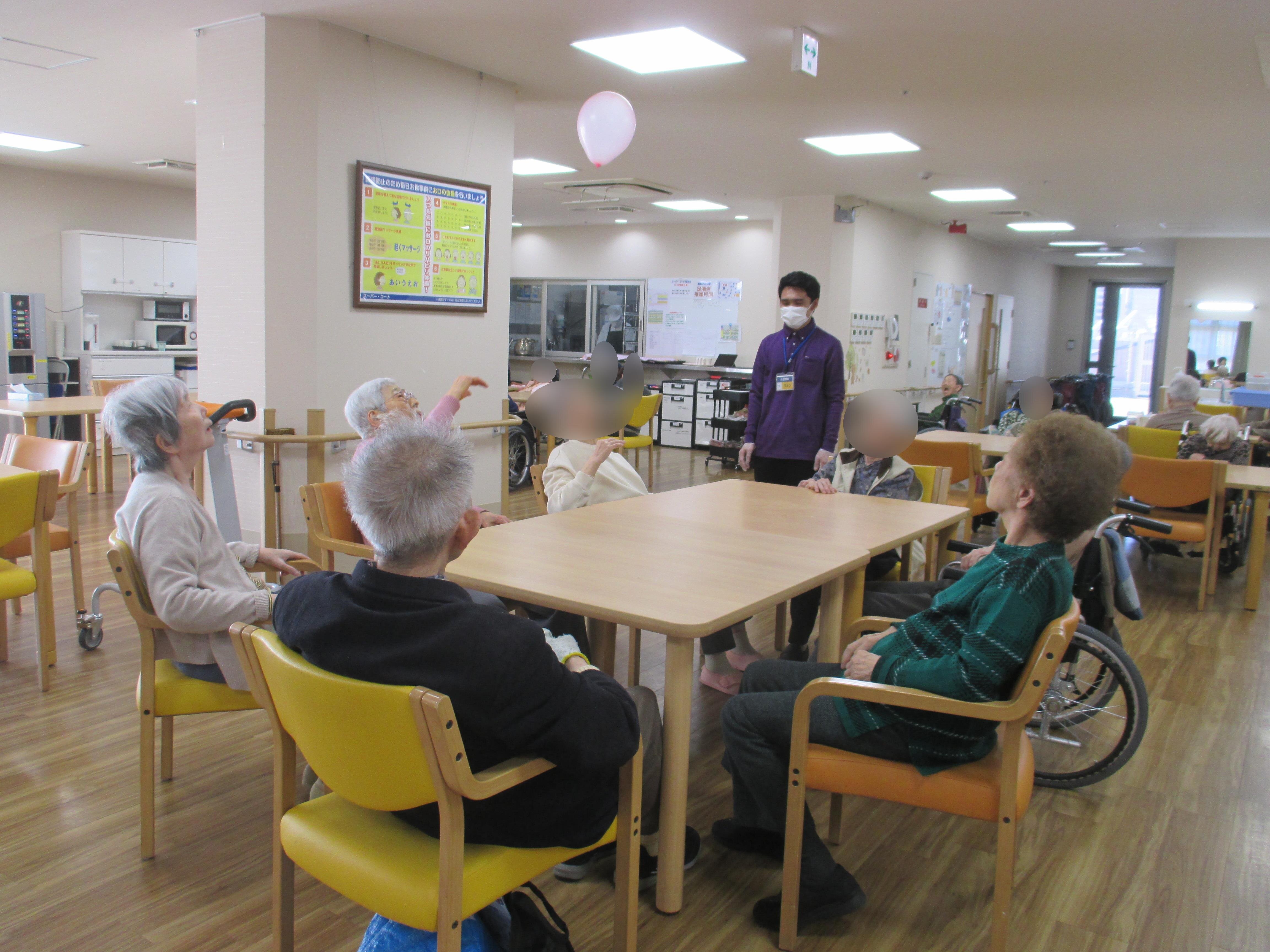 今回は、施設の定番レクリエーションである「風船バレー」のご様子をご紹介したいと思います!