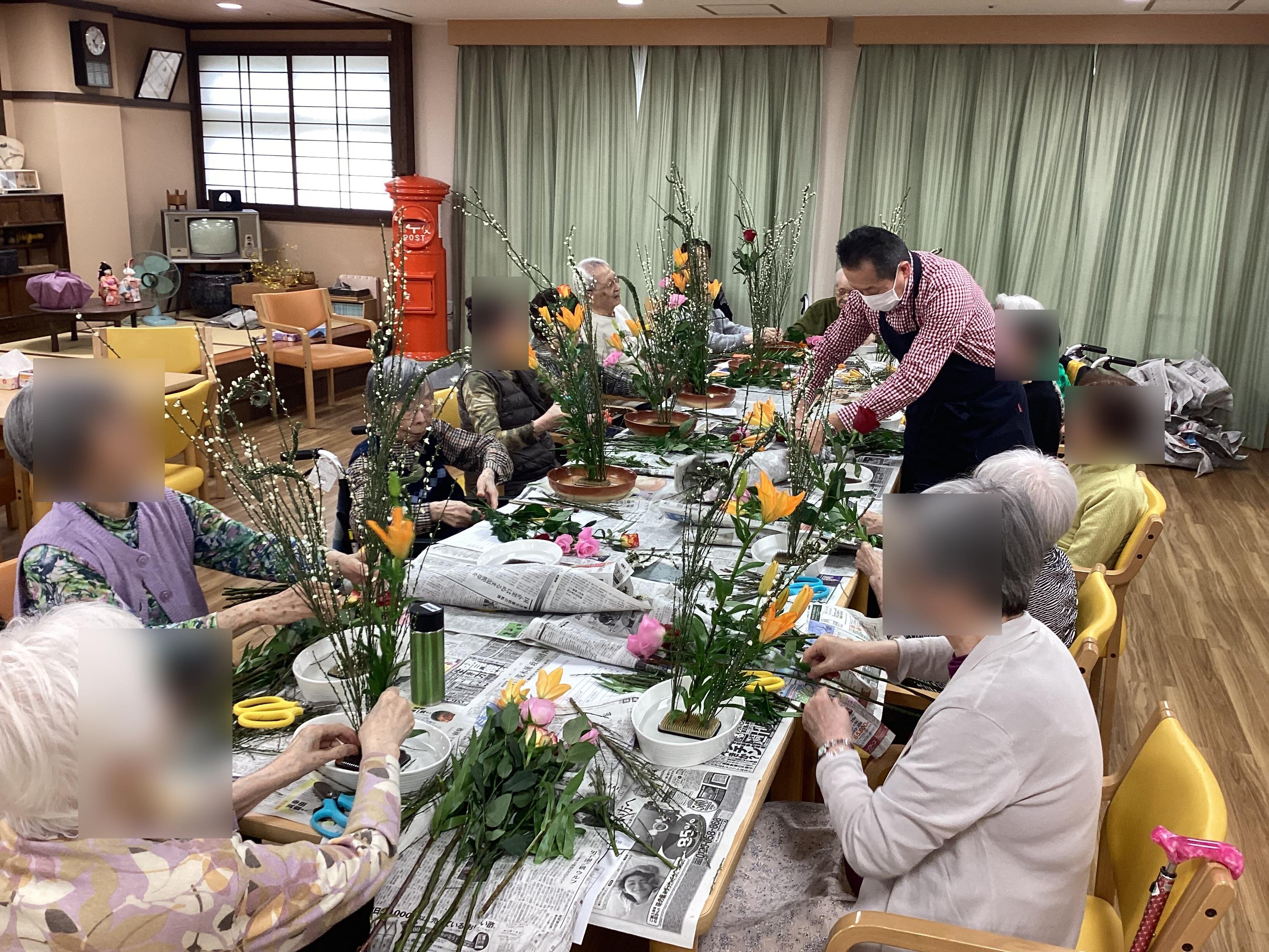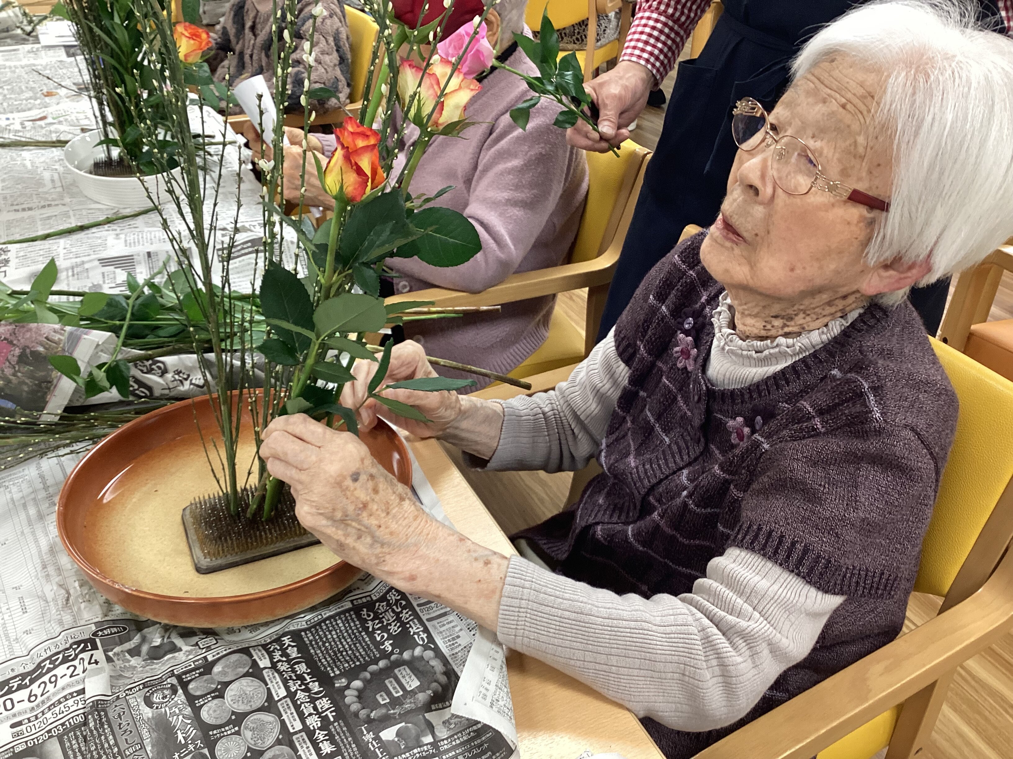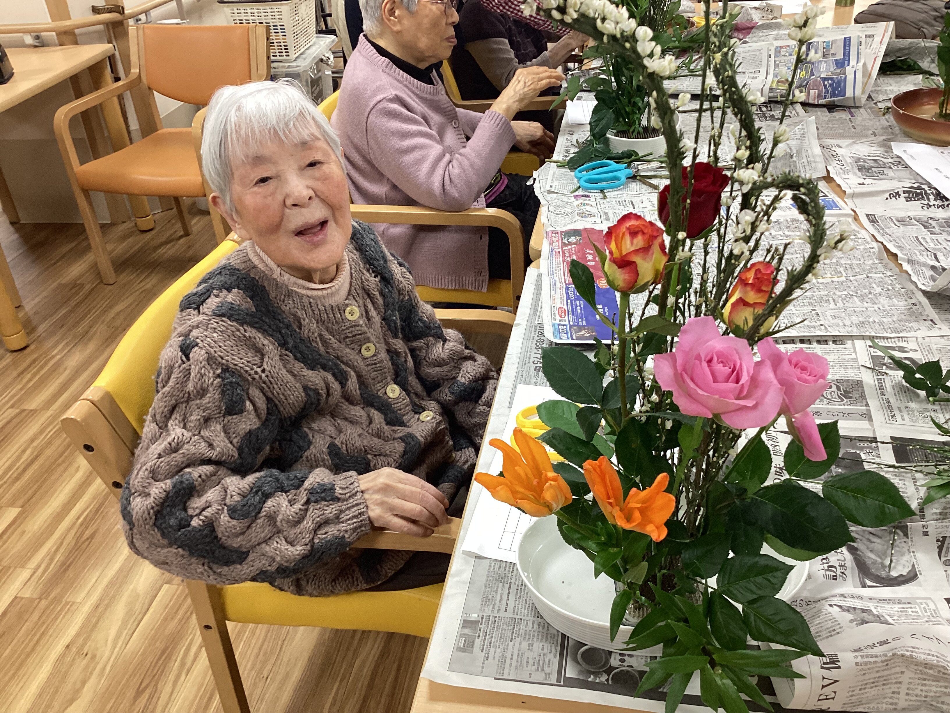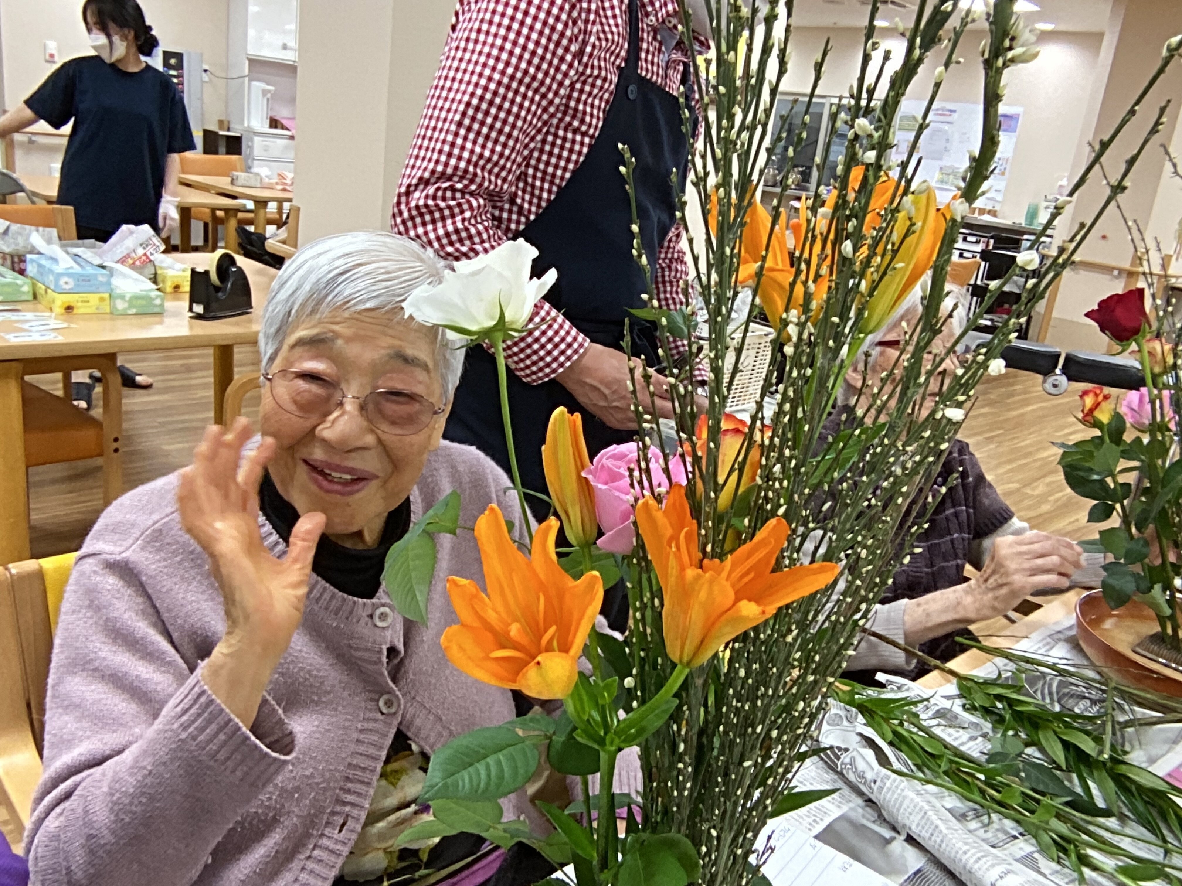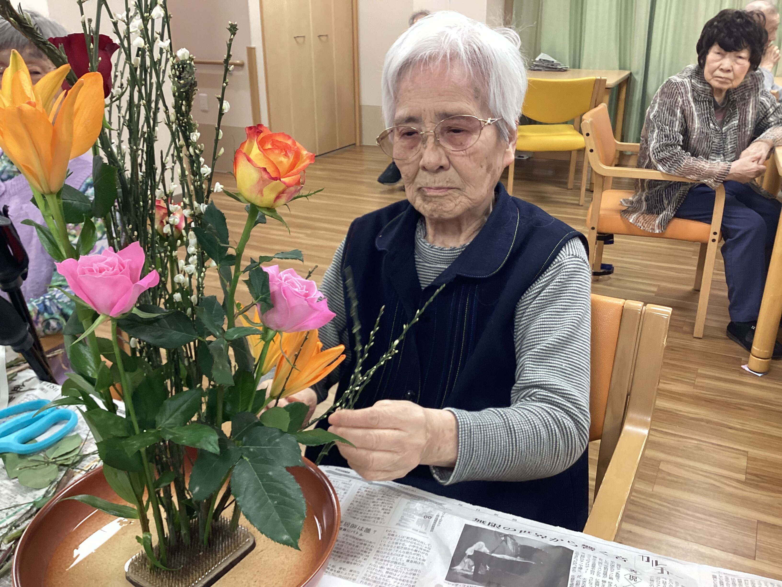 花器に合わせ、花々の色の配色や調和を考えながらの生け花は、とても楽しいひと時でした。