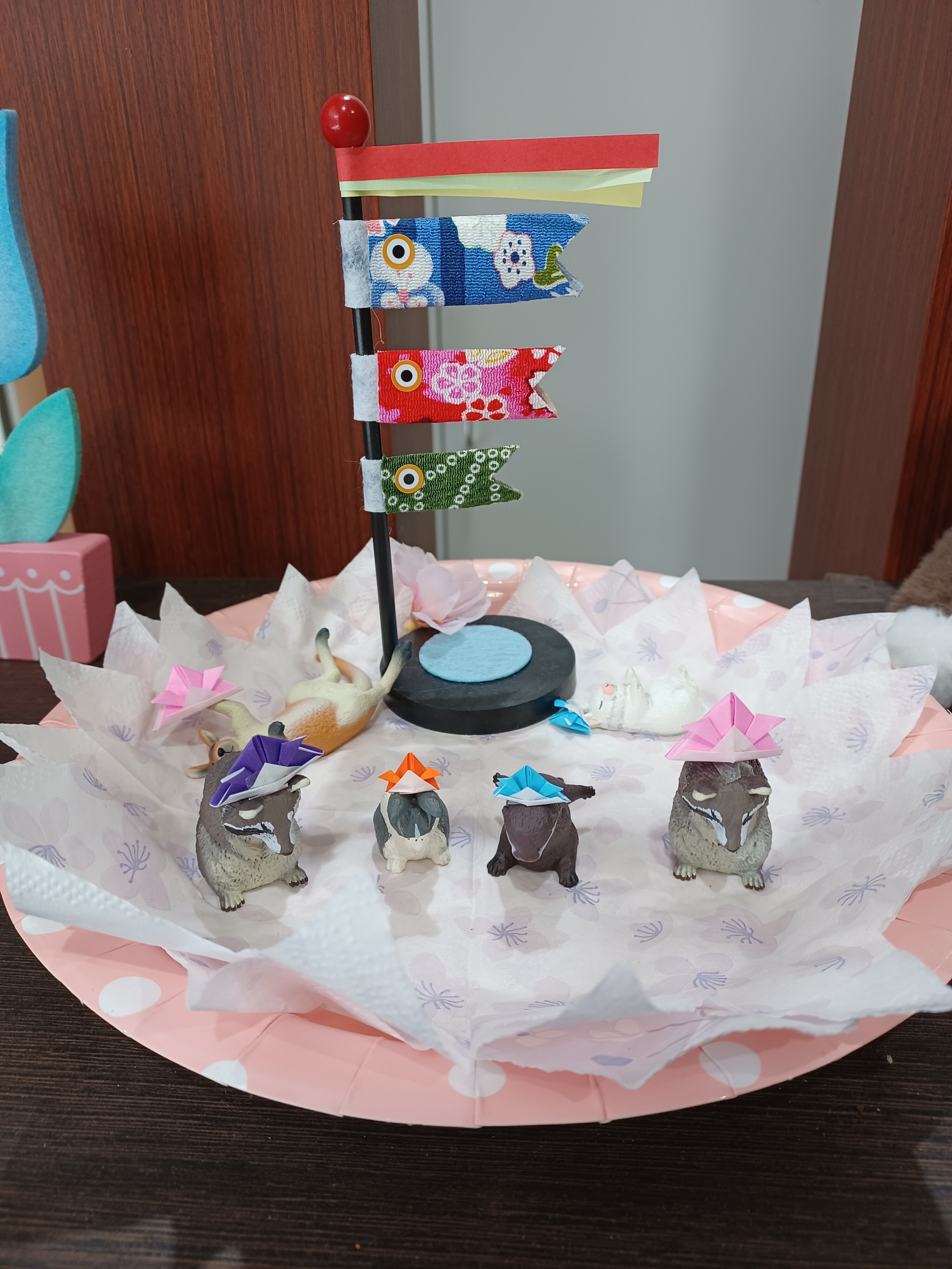 この折り紙の兜は全て看護師さんが作ってくださっています( *´艸`)