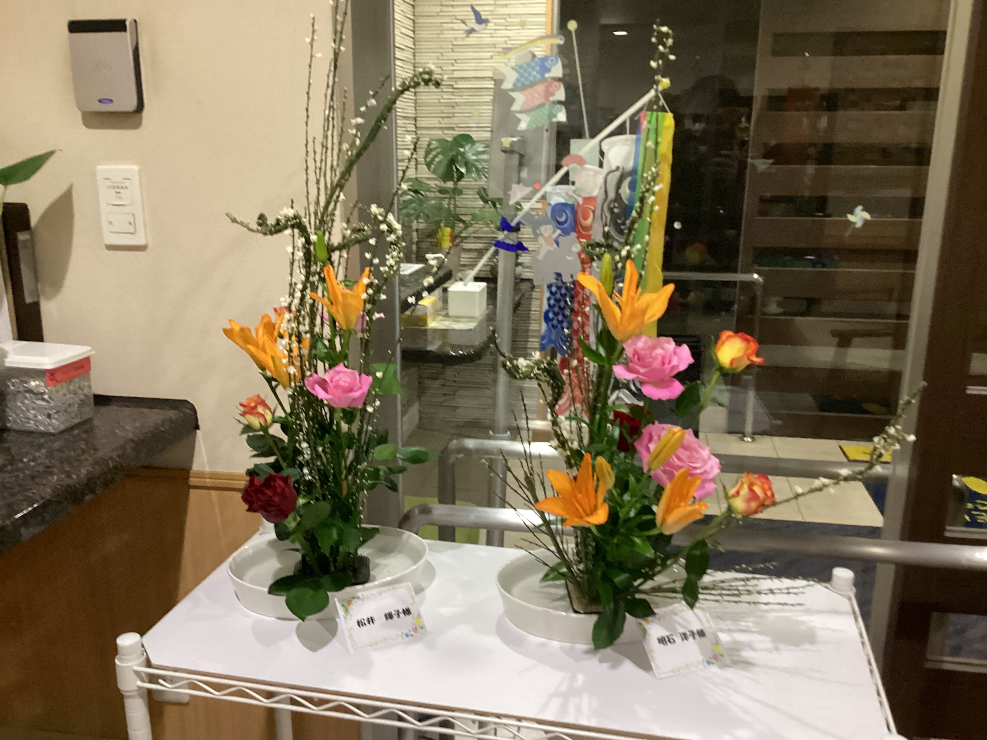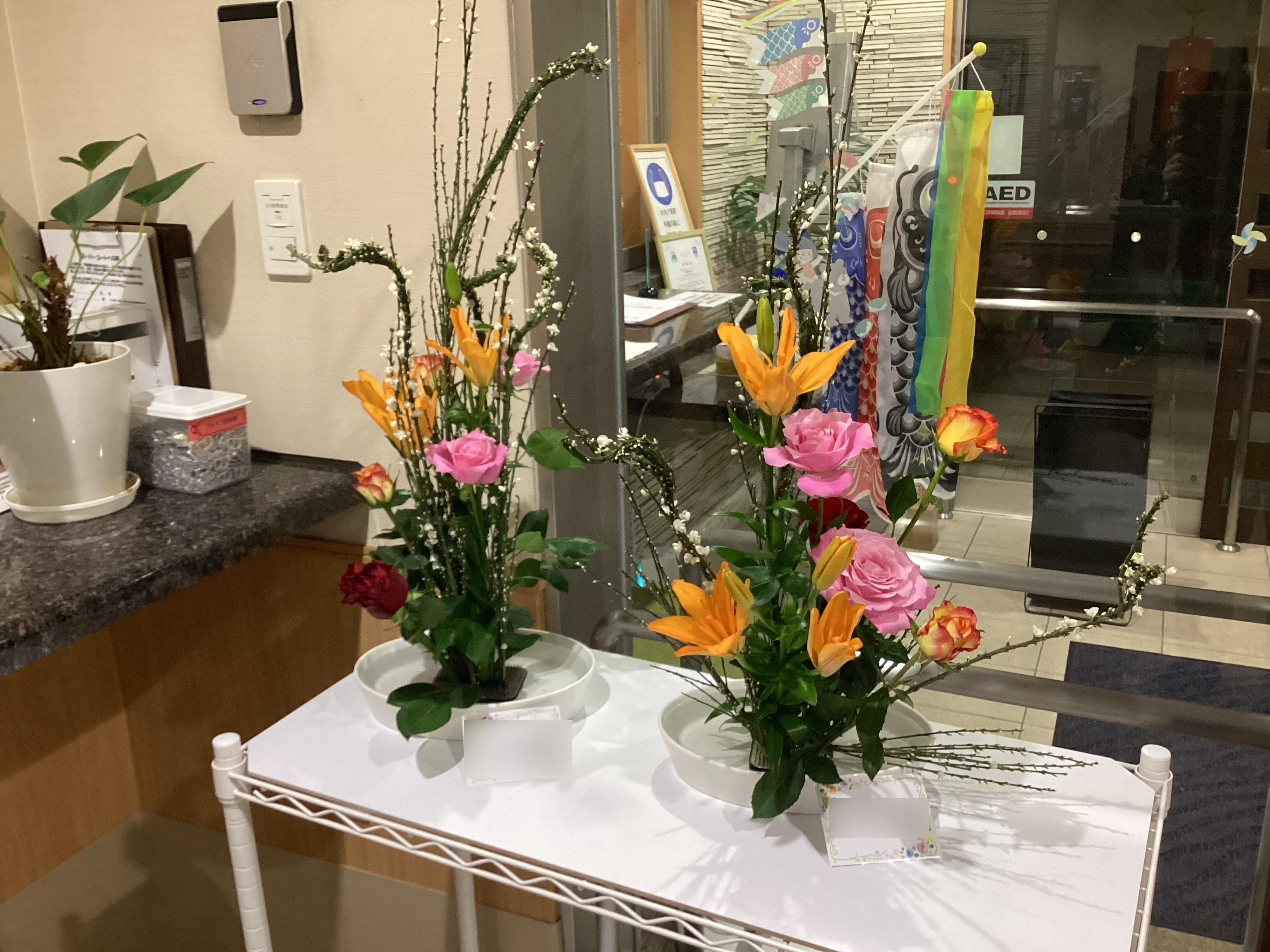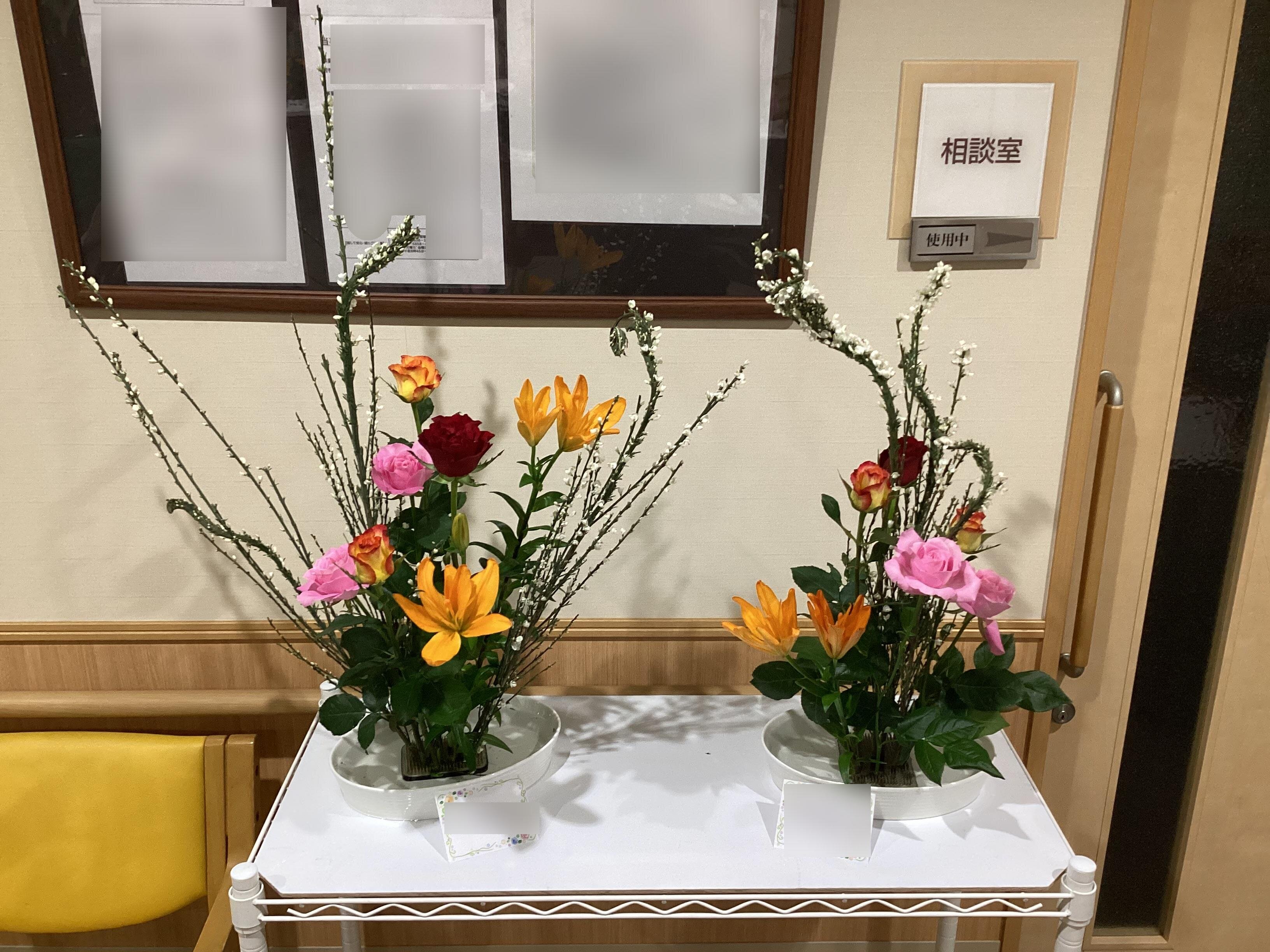 生けたお花は、玄関に飾って皆さんが鑑賞されています。