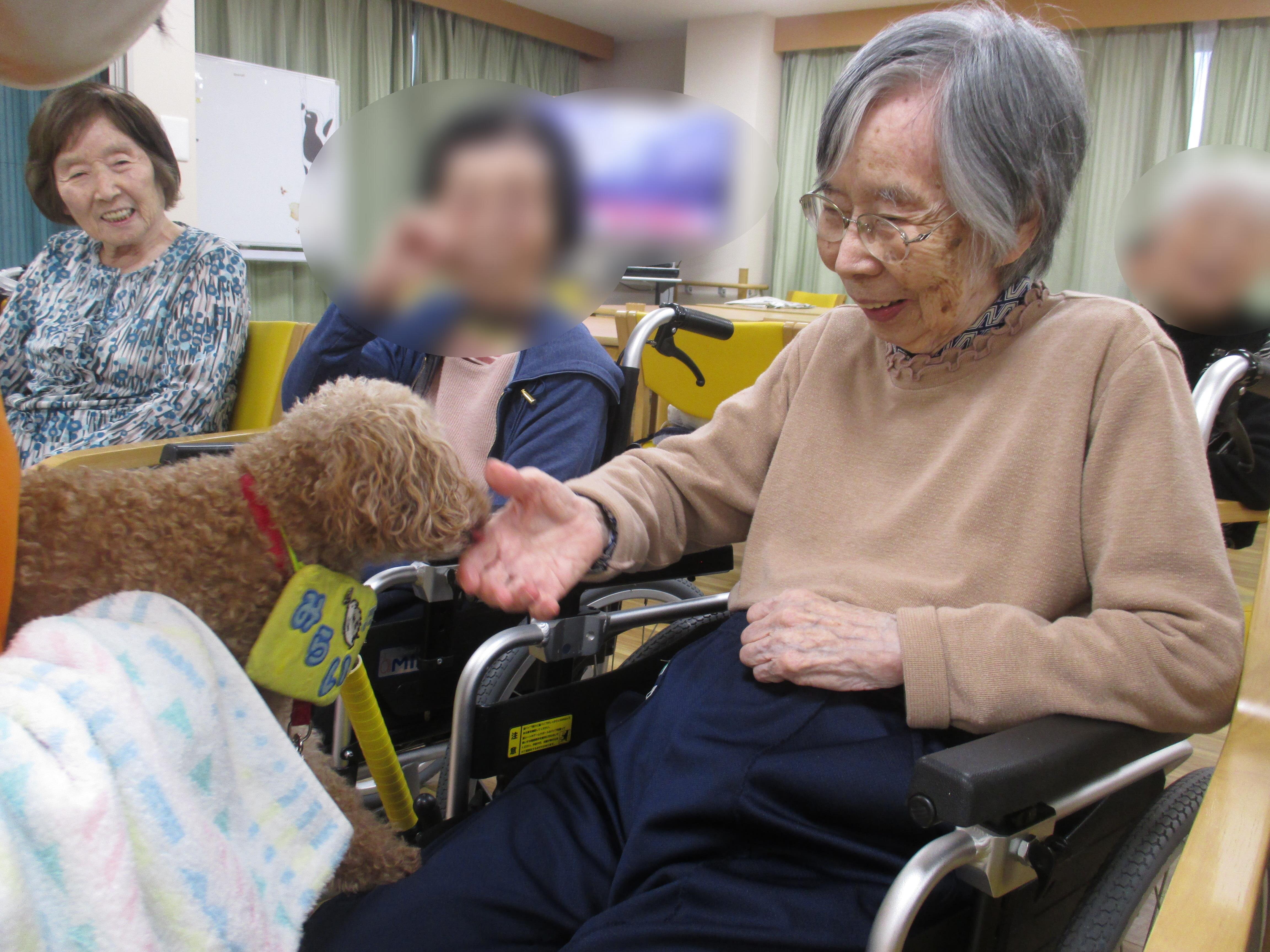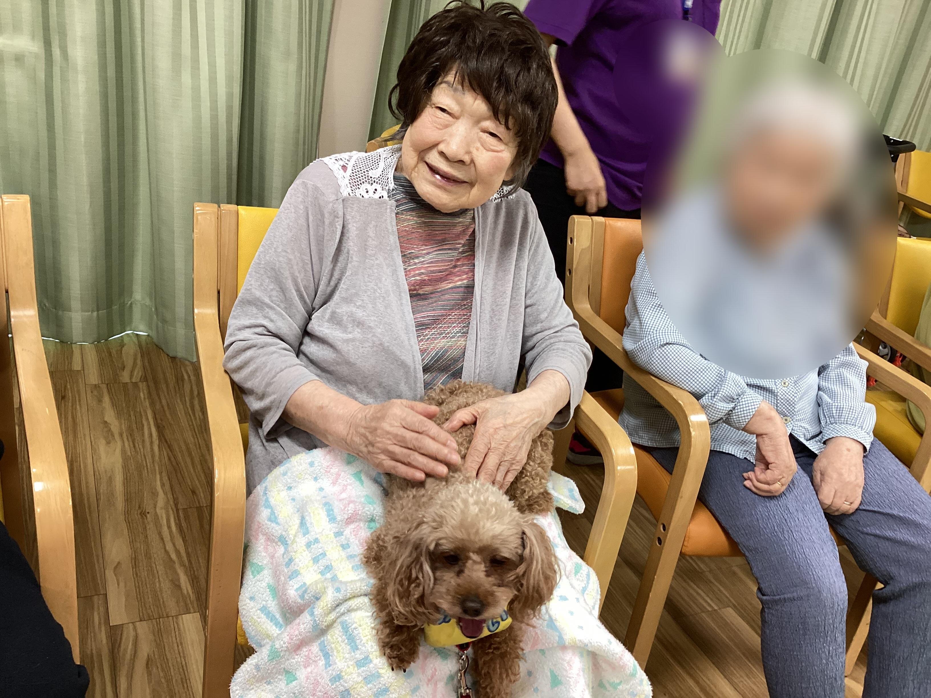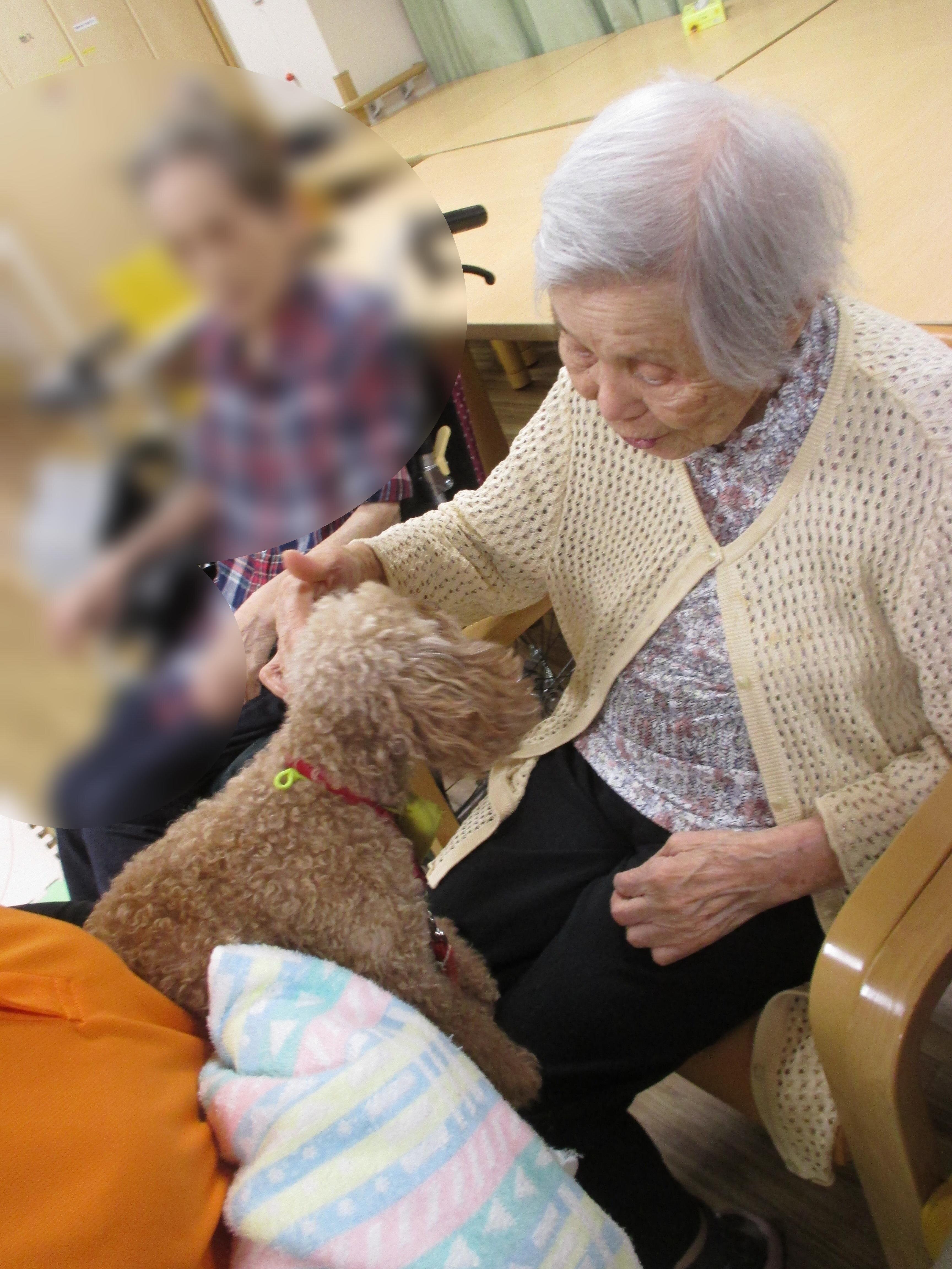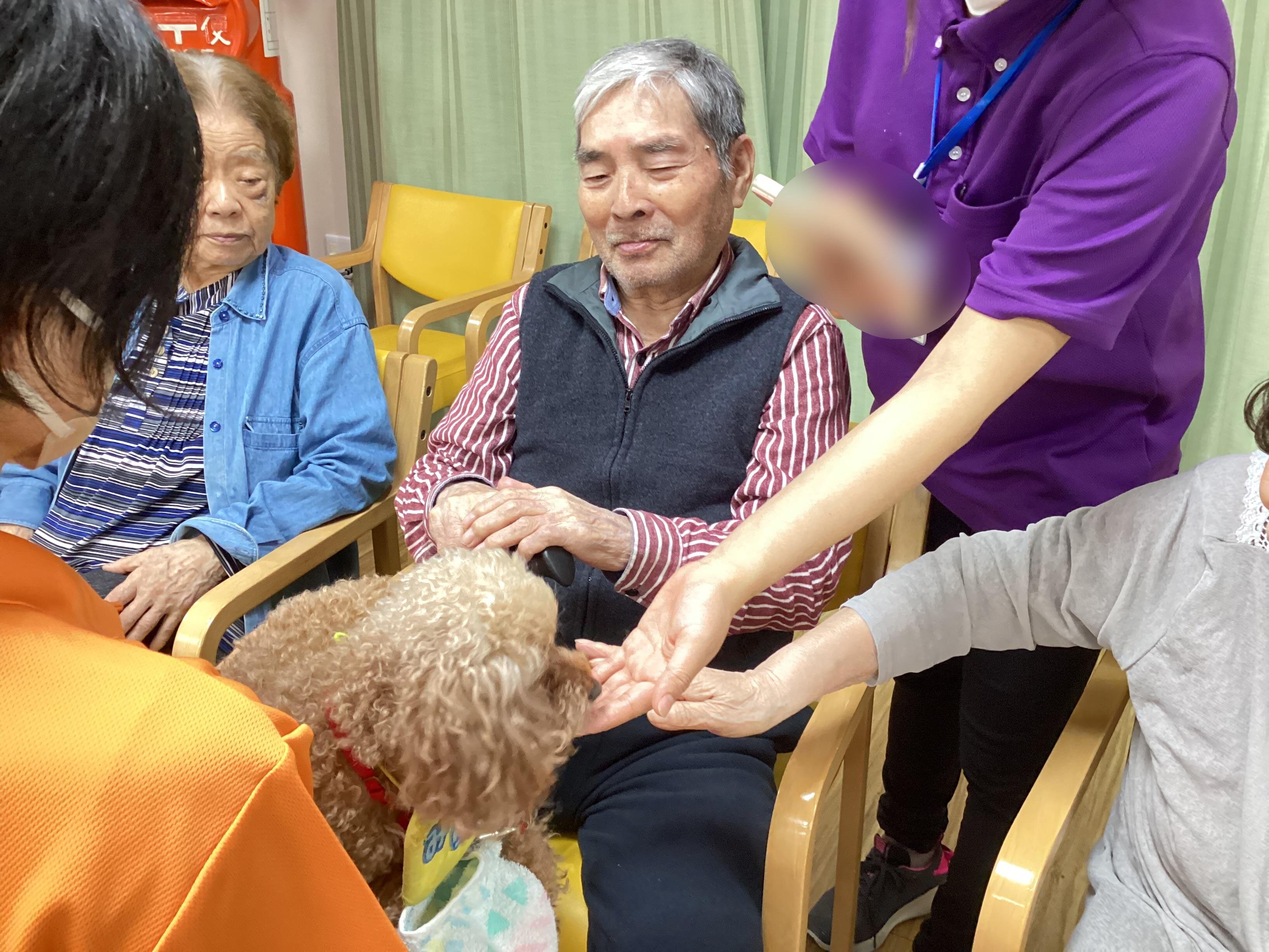 ふれあい中心のドッグセラピーにしていただいたので、2頭のわんちゃんと一人一人しっかりと触れ合うことができました☆