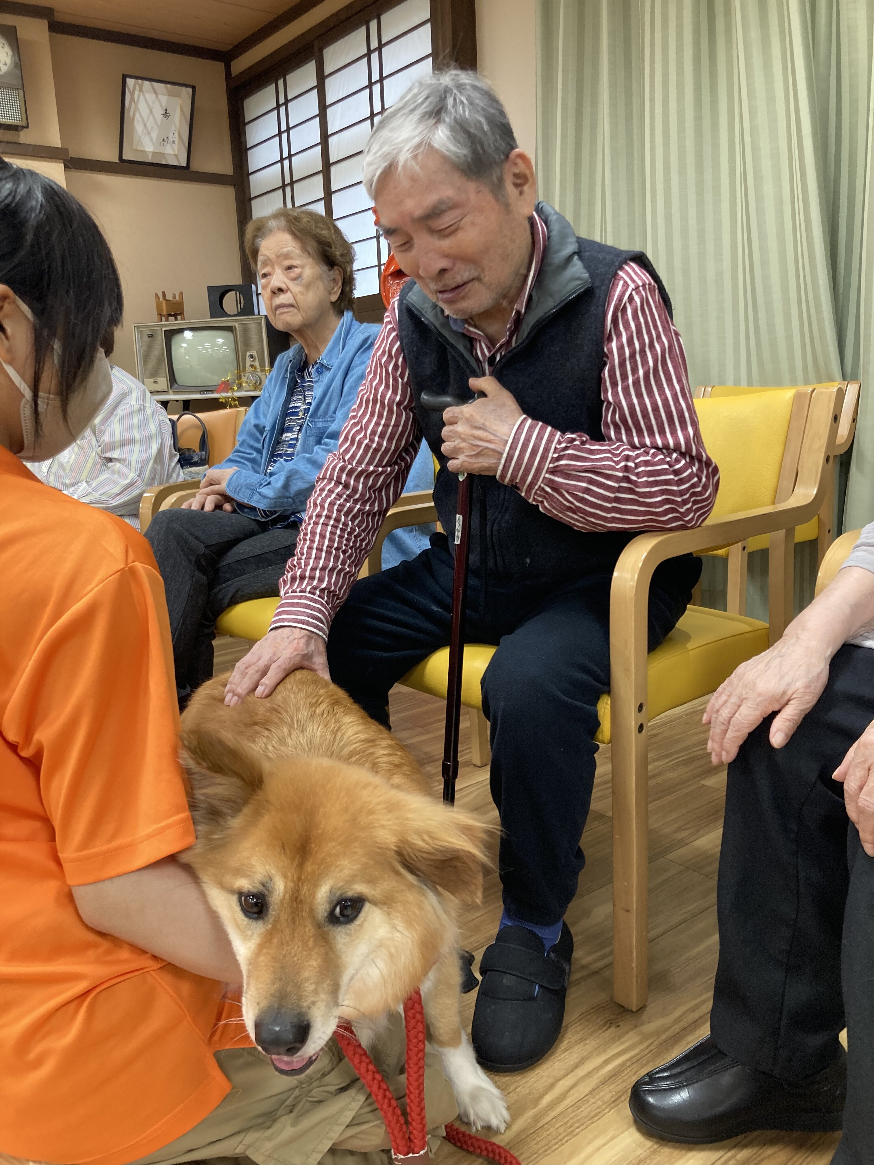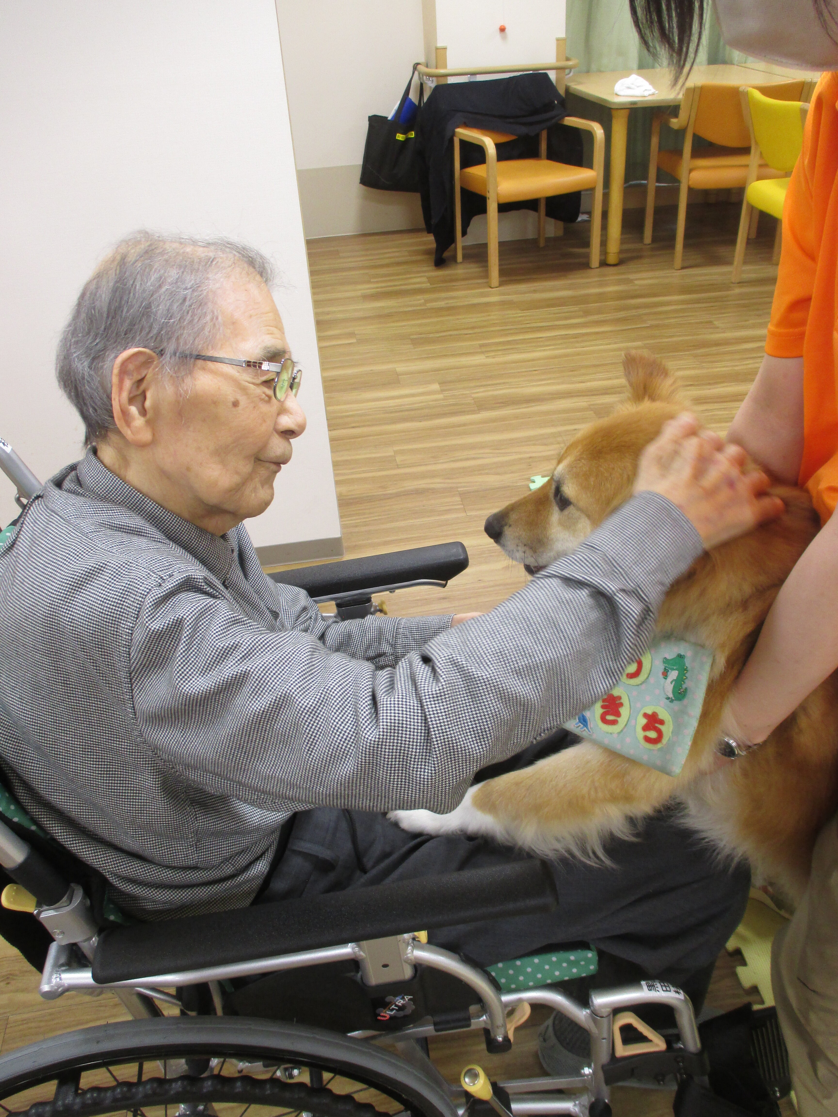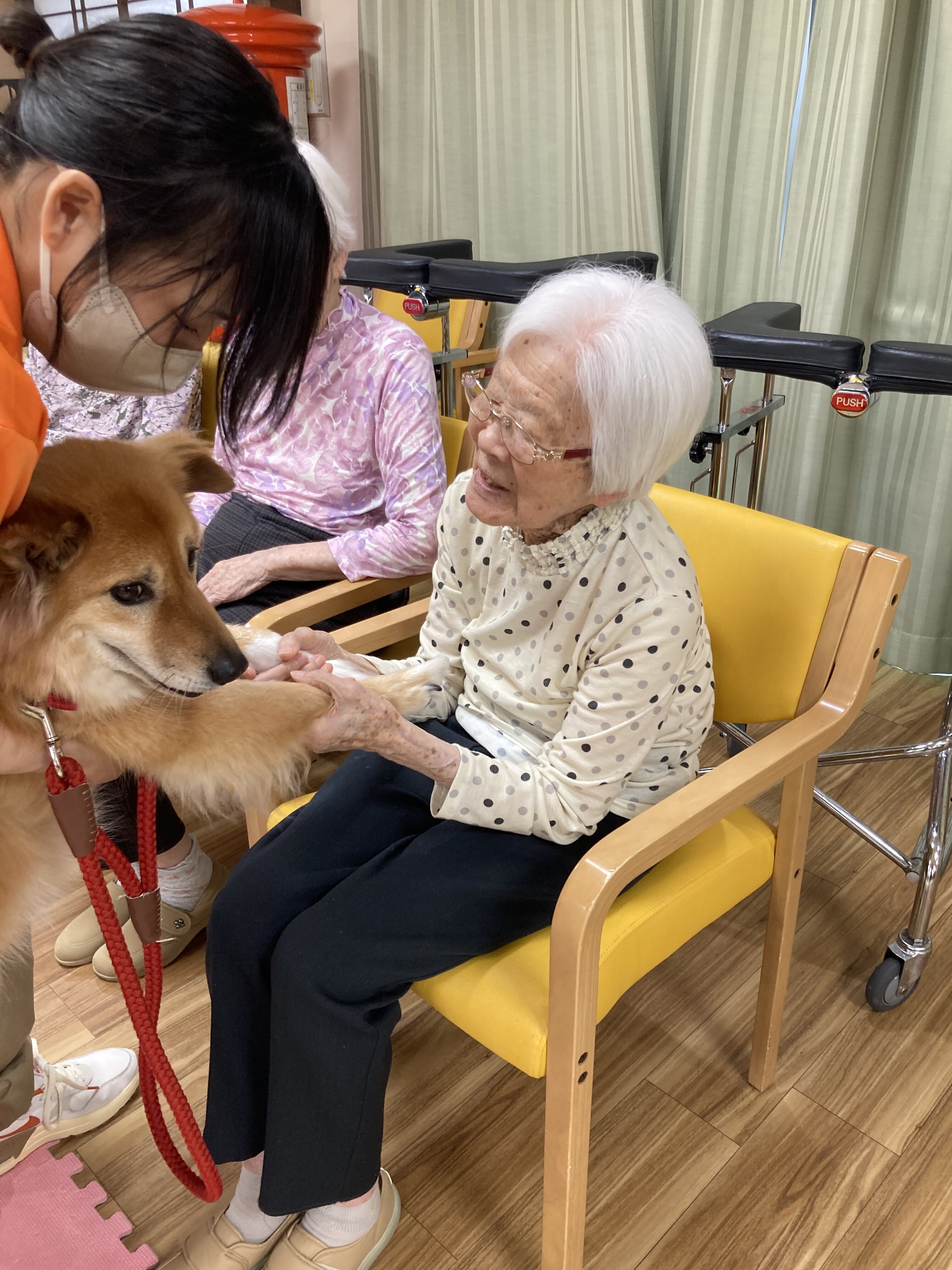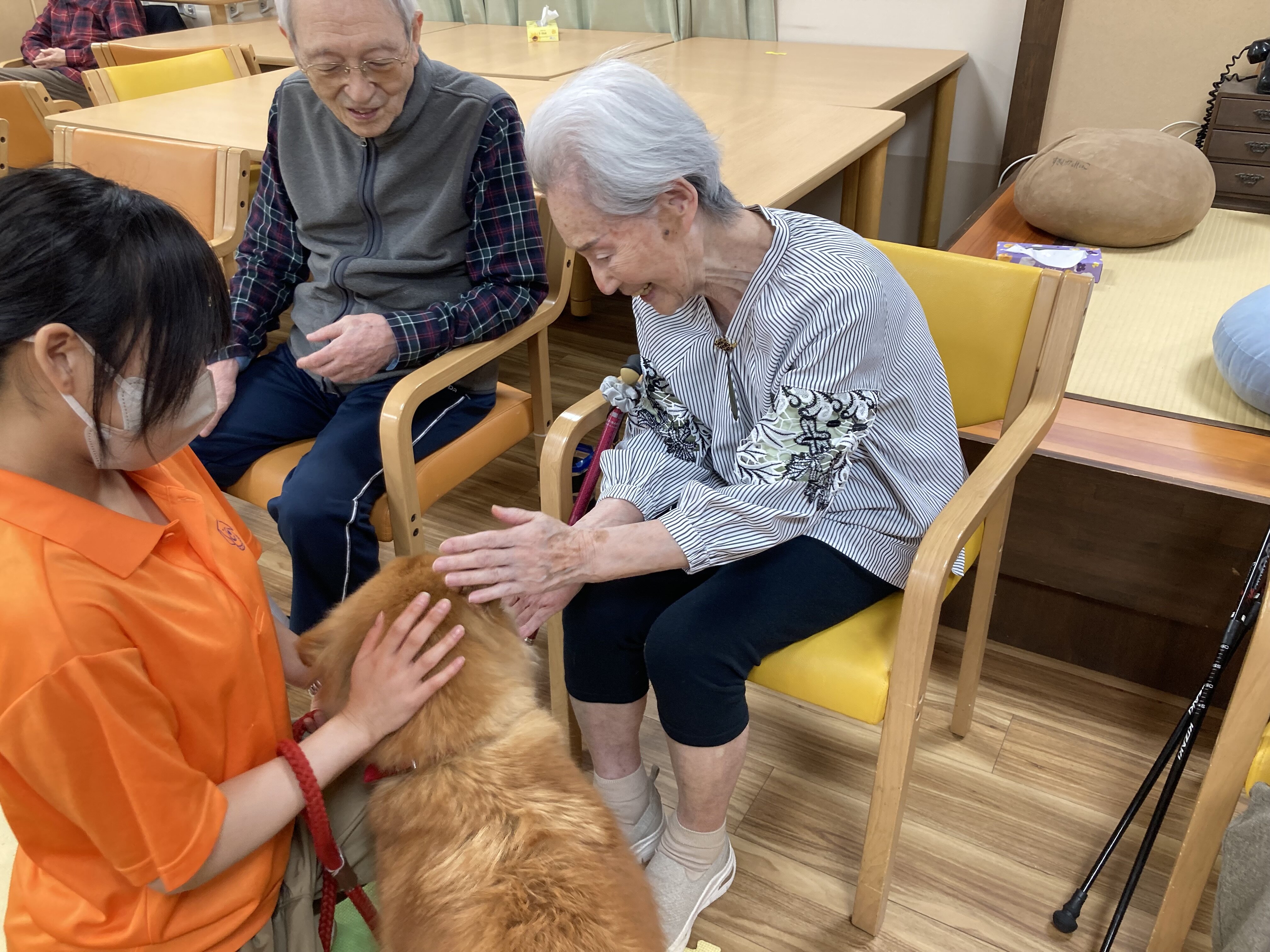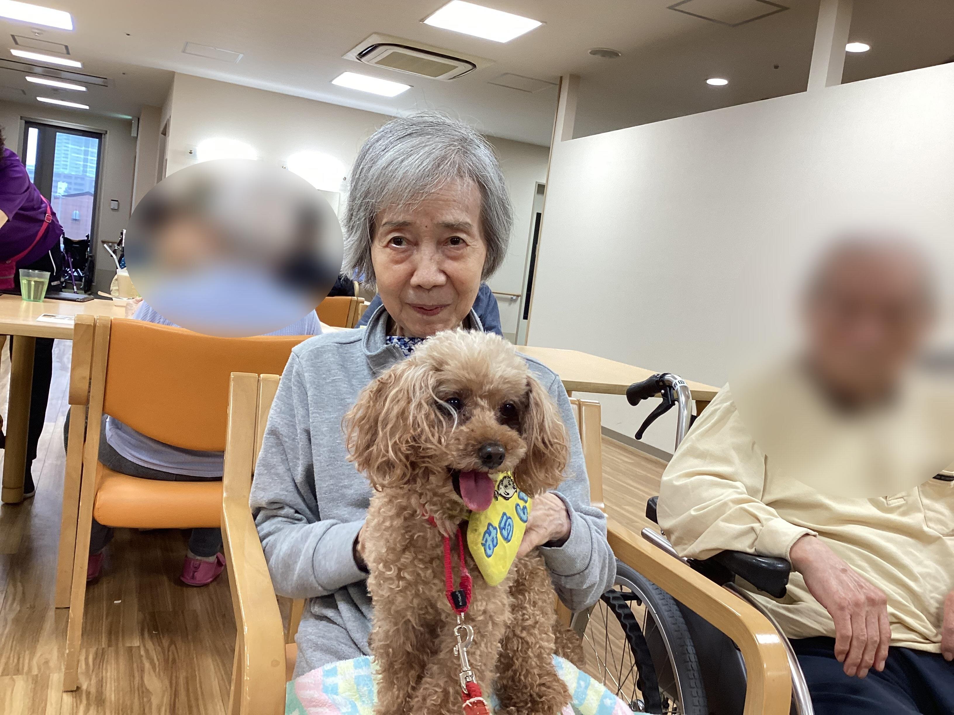 ふれあい中心のドッグセラピーにしていただいたので、2頭のわんちゃんと一人一人しっかりと触れ合うことができました☆