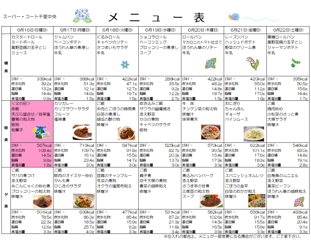 6月16日からのお食事メニューを紹介します♪