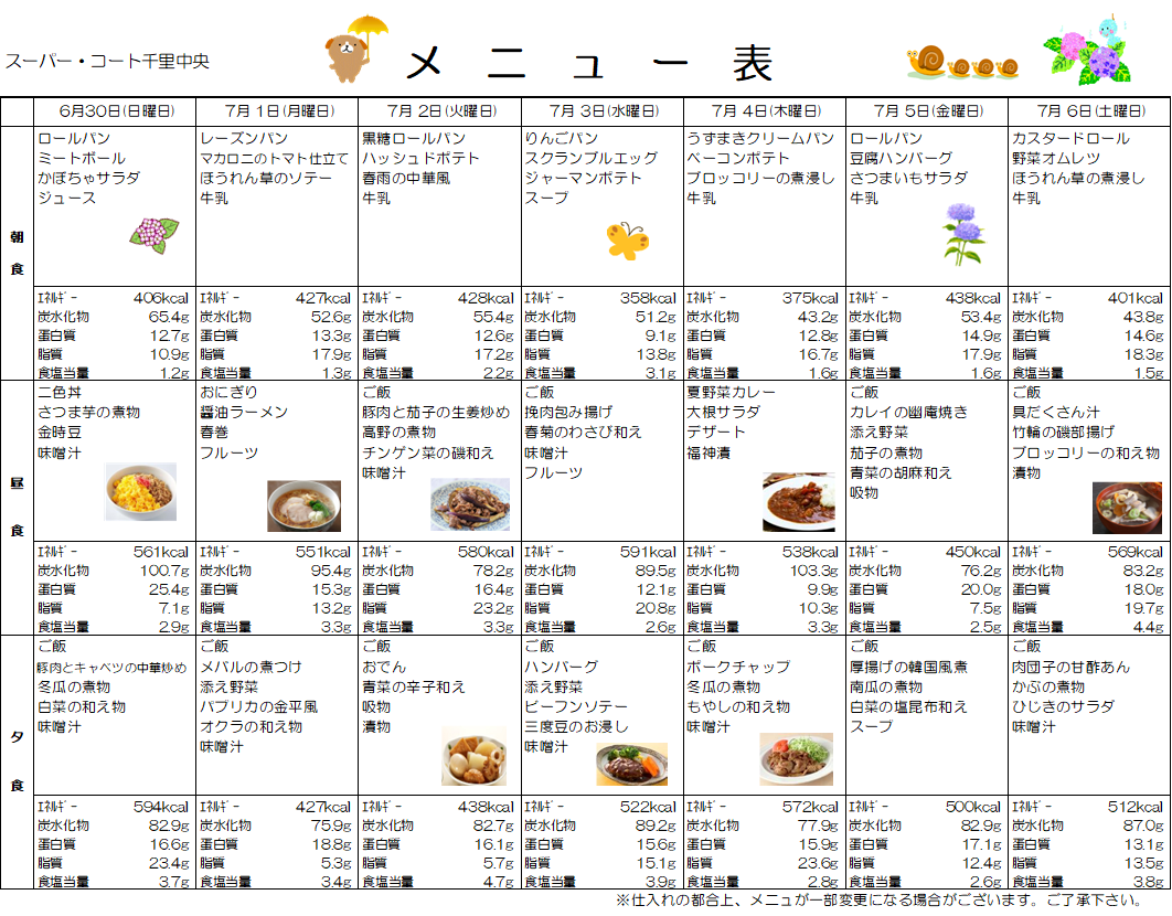6月30日からのお食事メニューを紹介します♪