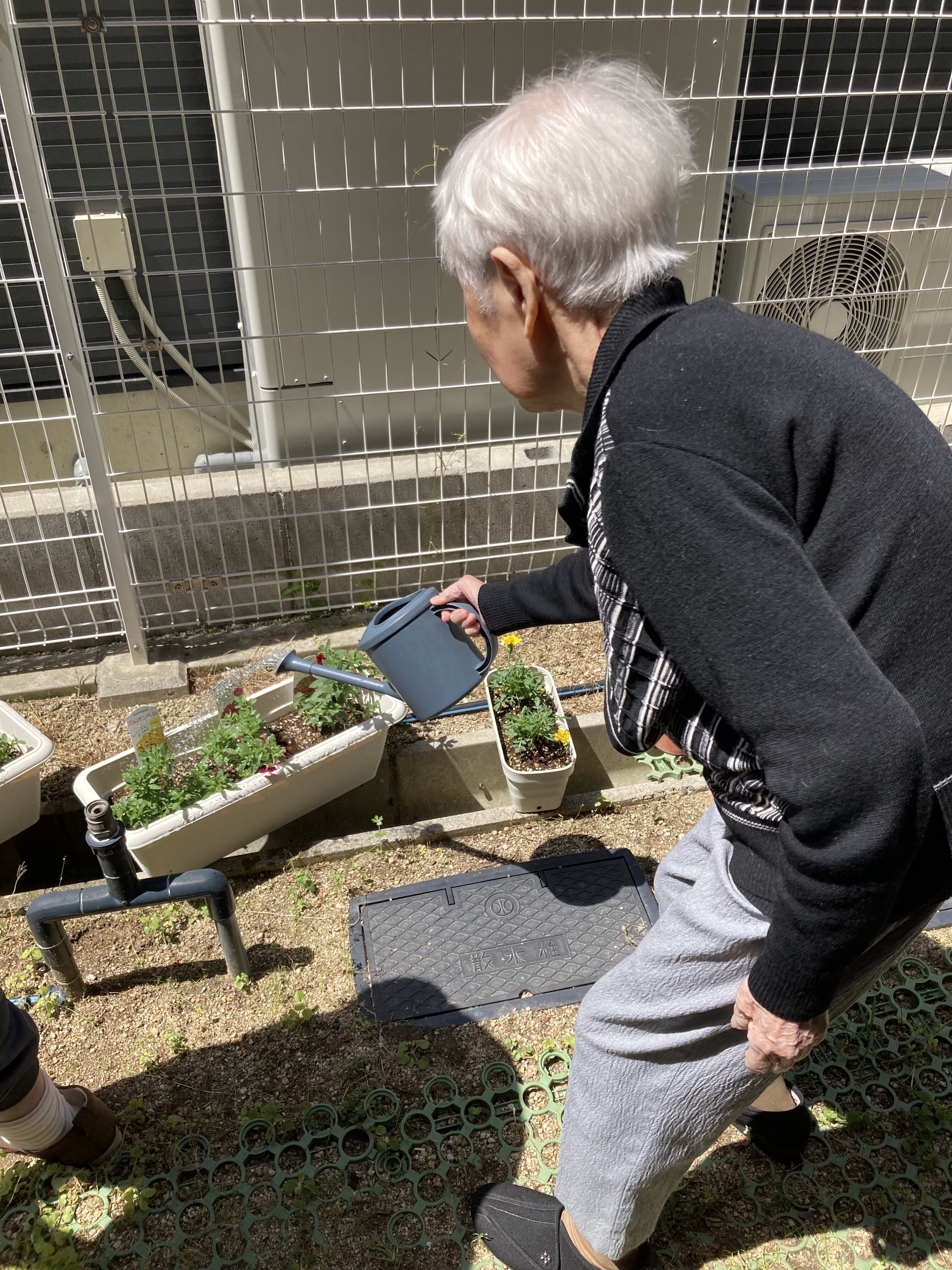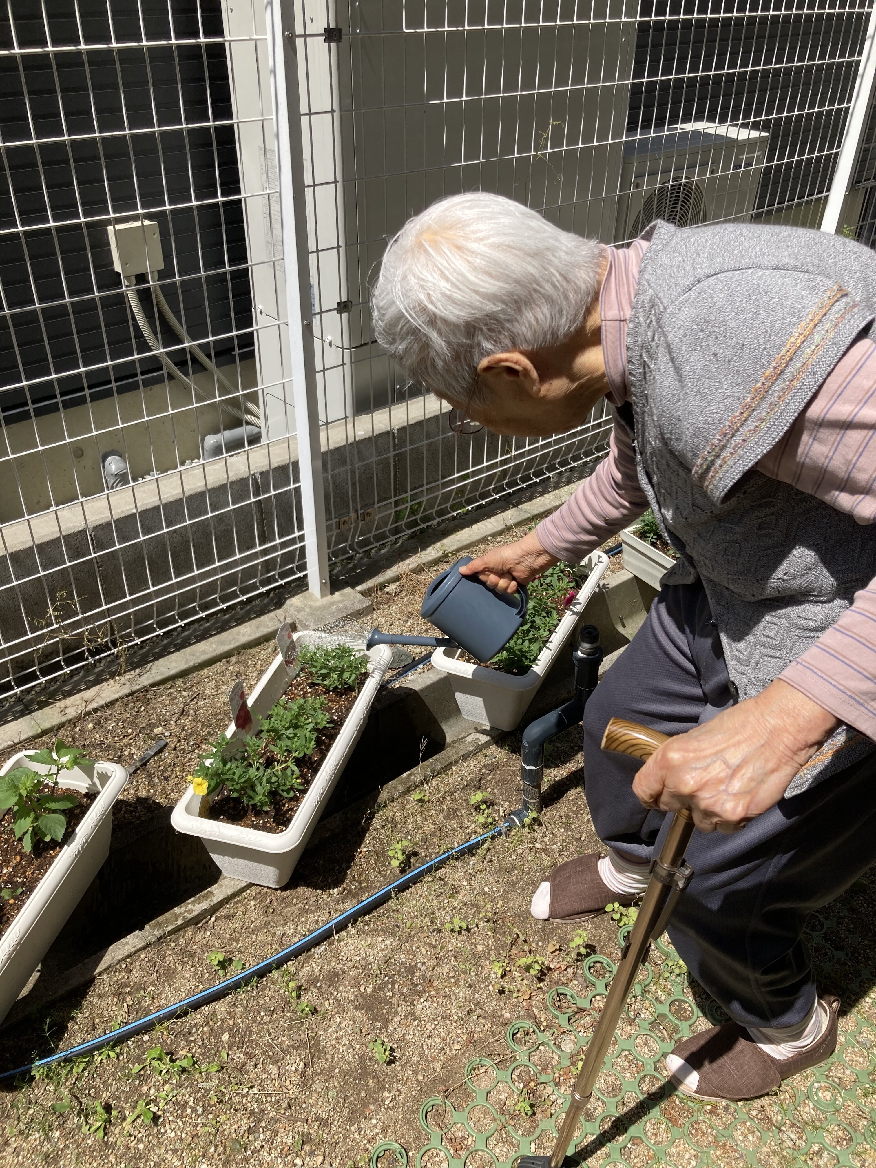 定期Fitを実施している方と訓練がてら外へでて水やりをお願いしています(*^-^*)