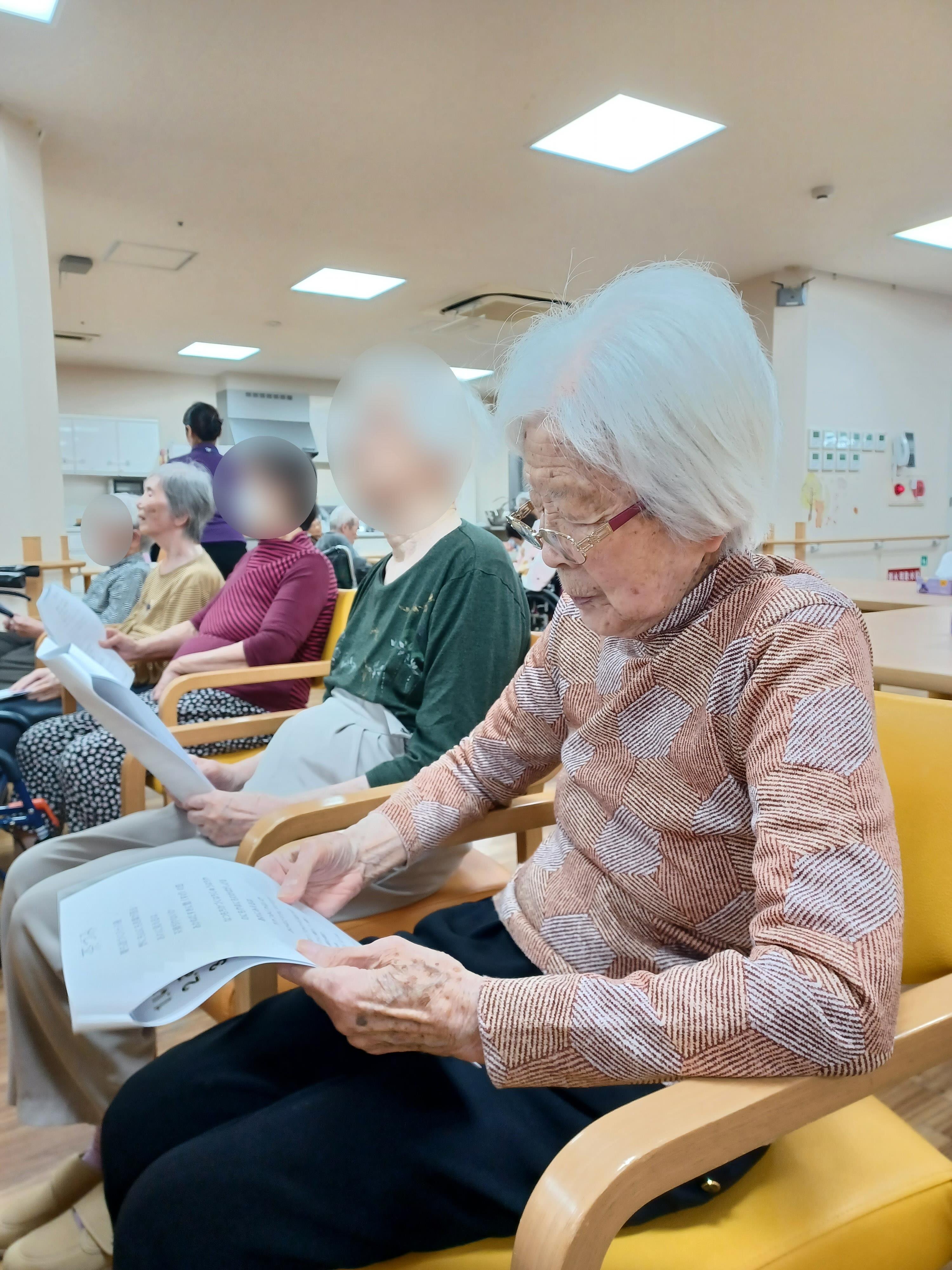 では早速、音楽に身をゆだねるご入居者の皆さまの様子をご覧ください!(^^)!