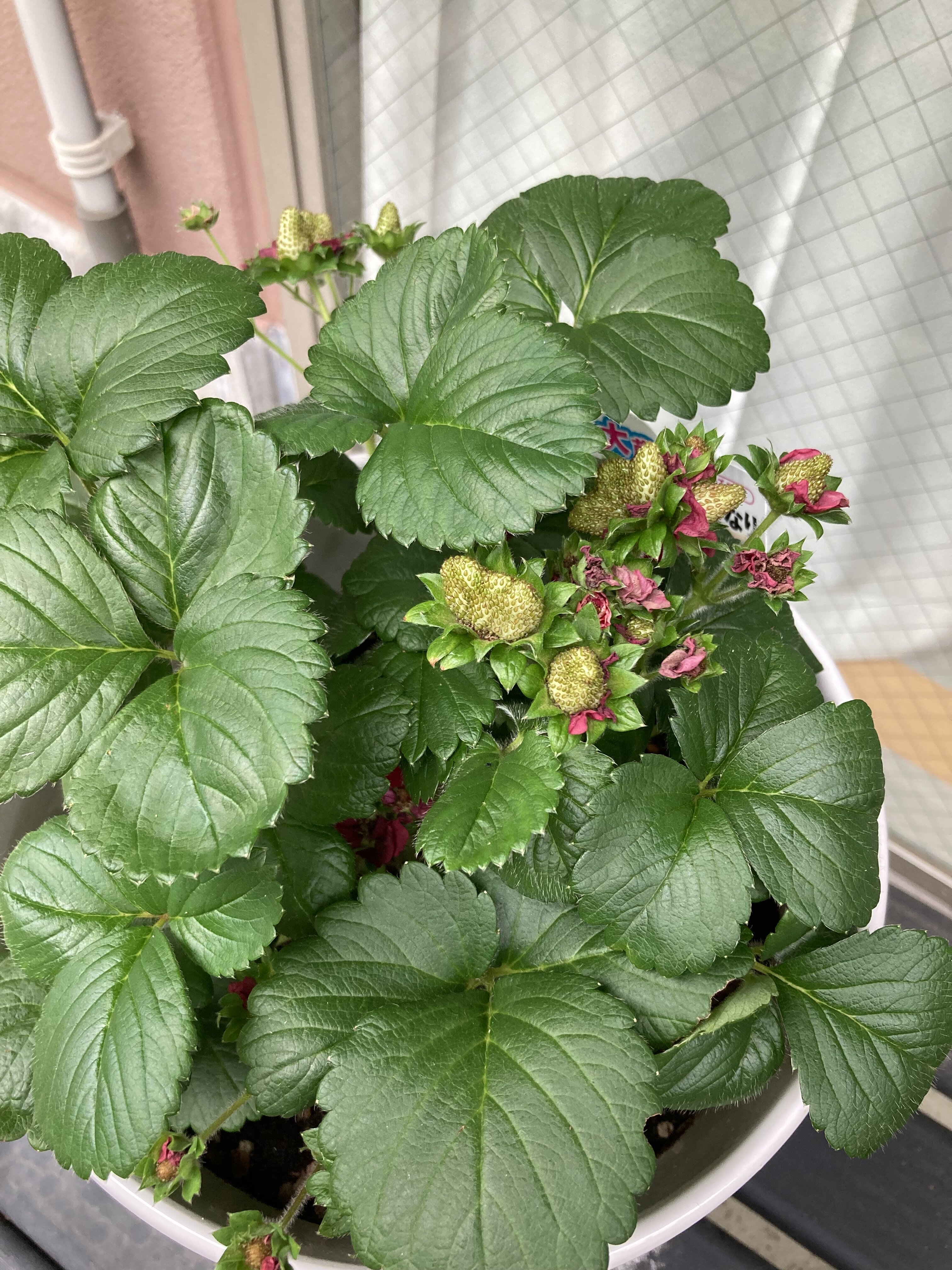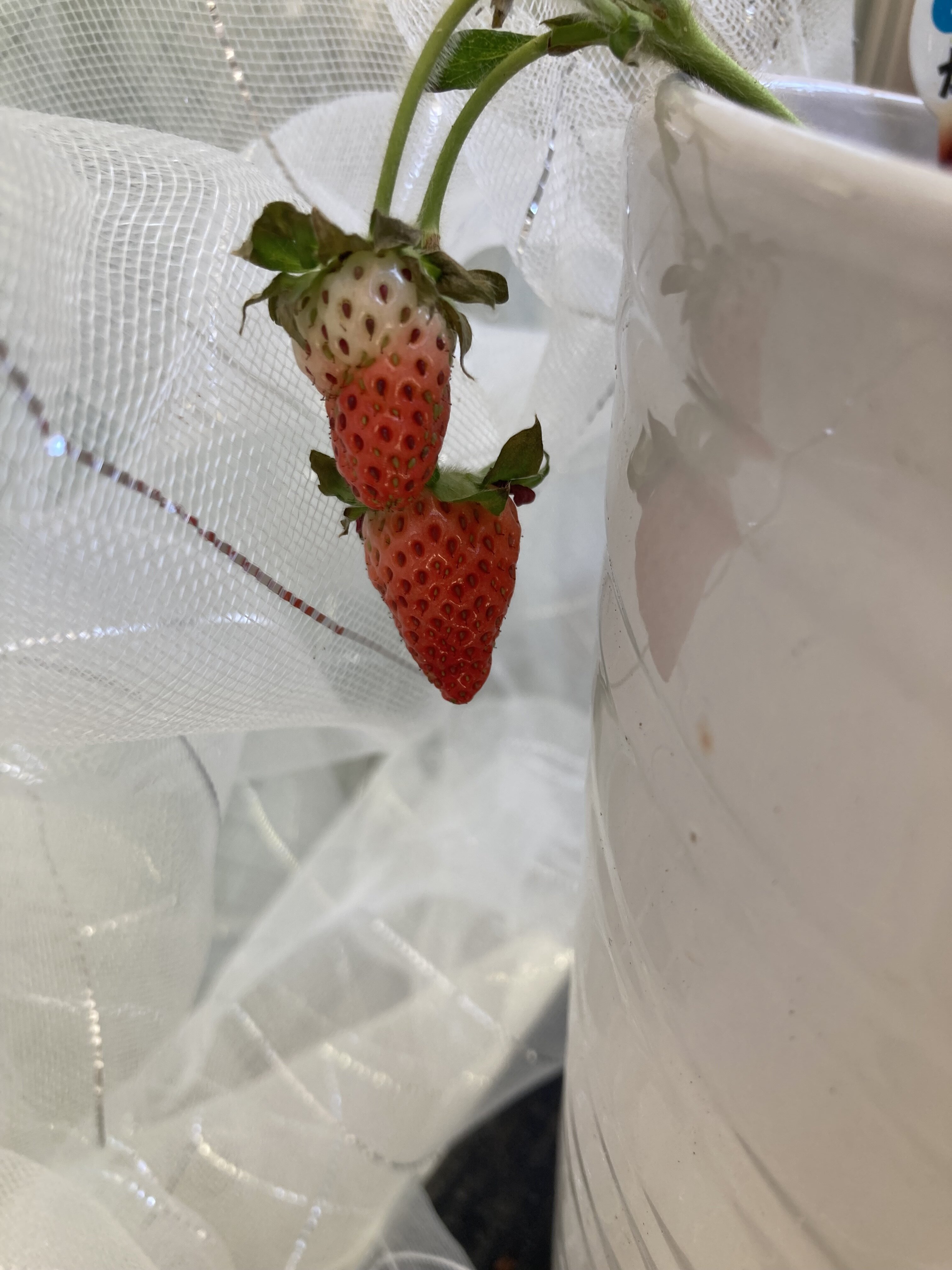 Fitスペース外で育てている四季なりいちごが実をつけました♪