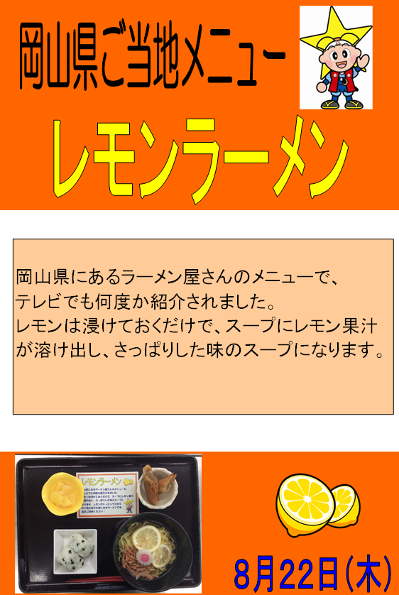 22日(木)には岡山のご当地メニュー「レモンラーメン」を提供させていただきます♪