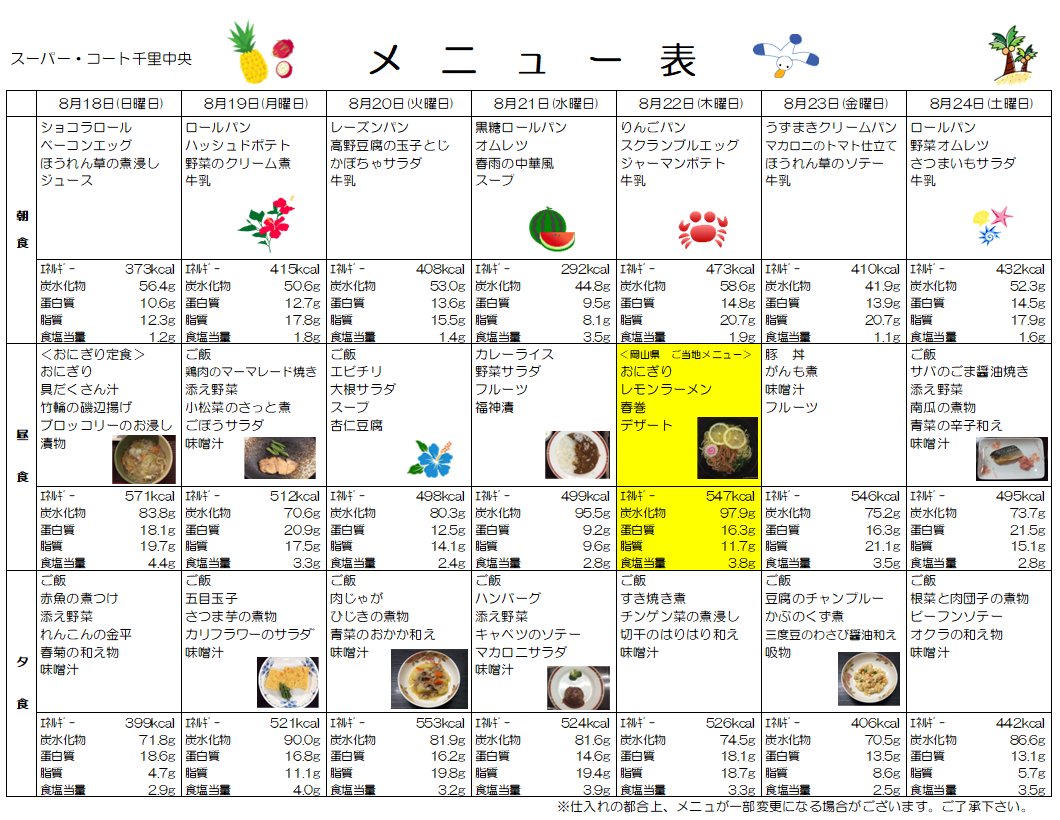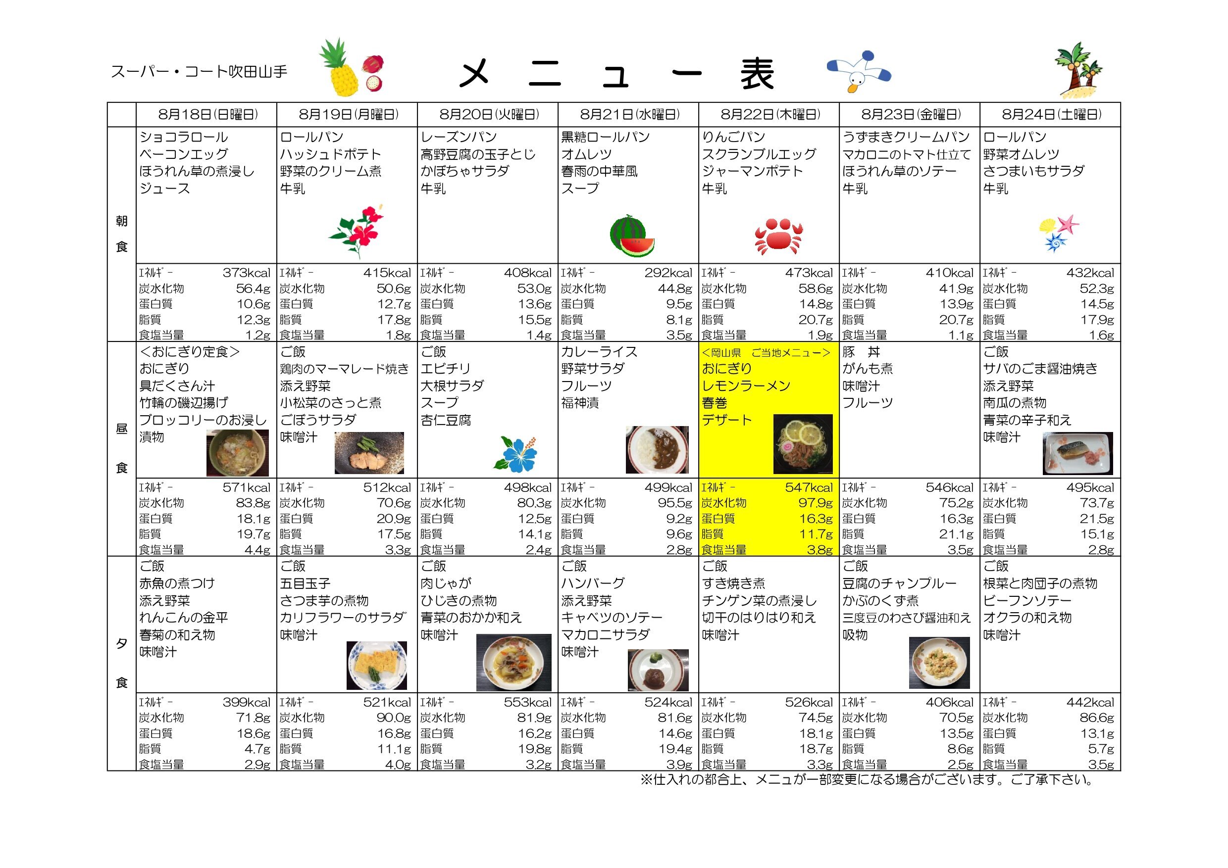 8月18日(木)~24日(土)までのお食事メニューをご紹介します!
