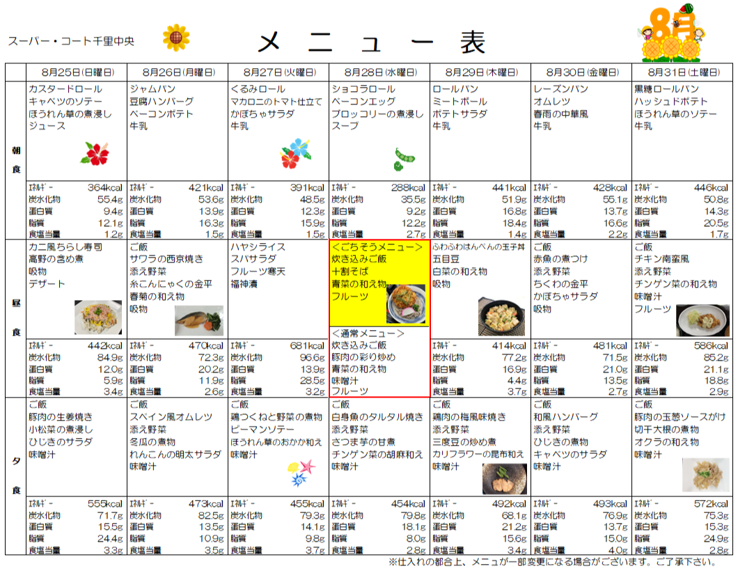 8月25日(木)~31日(土)までのお食事メニューをご紹介します!