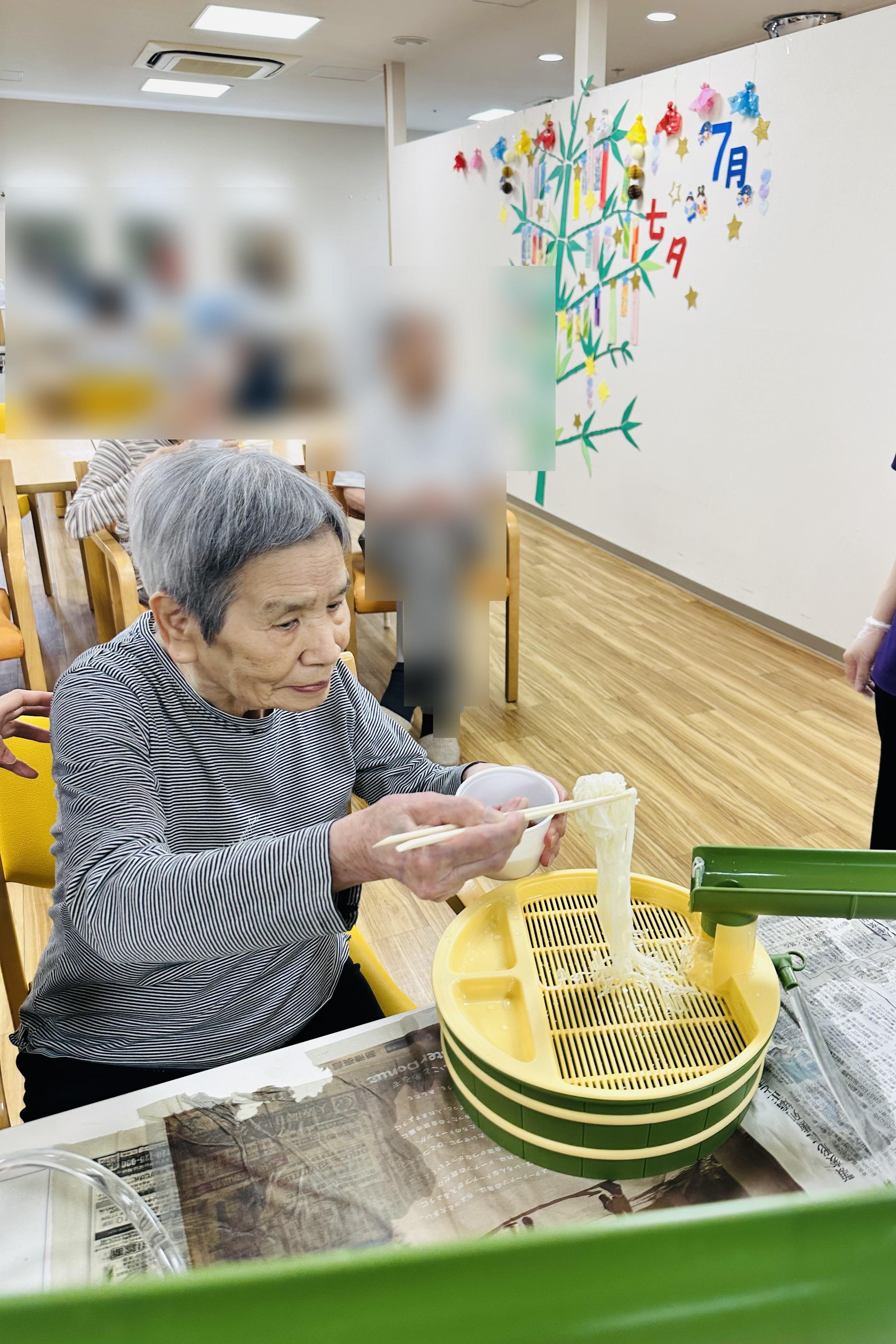 今月は短冊作成や流しそうめんで、季節感を味わっていただきました。★