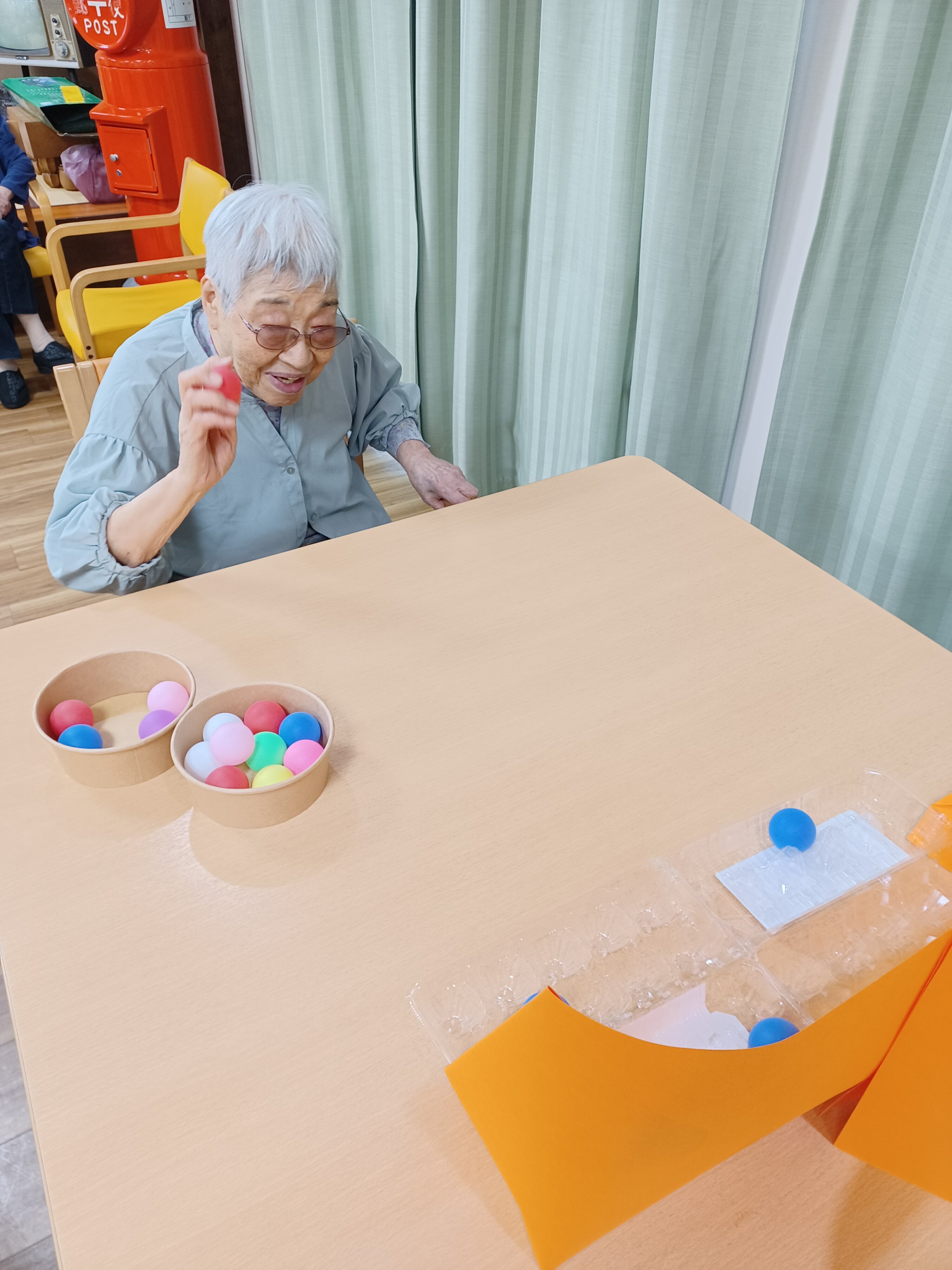 今回は、卵パックとピンポン玉を使ったゲームを行いました♪