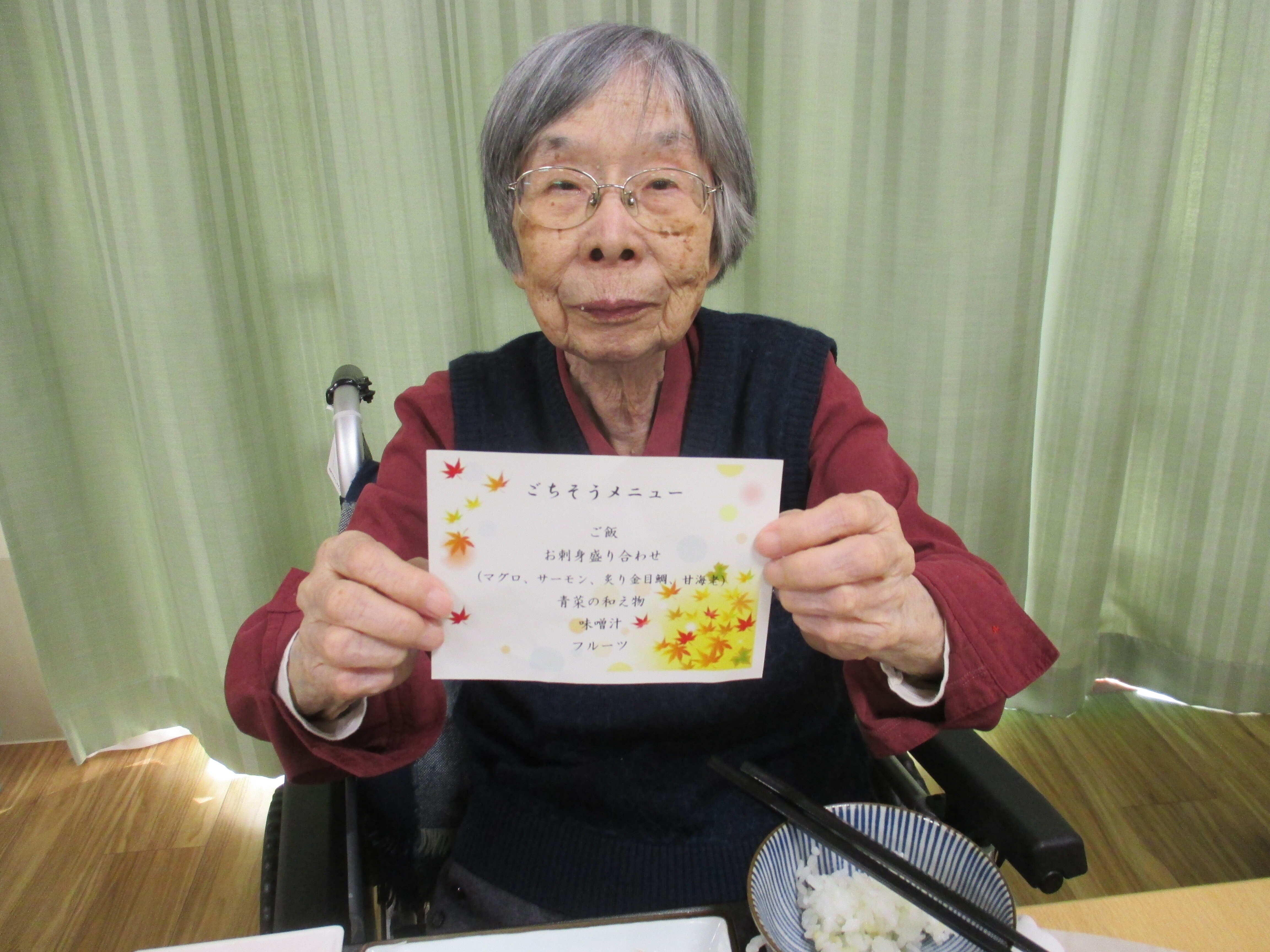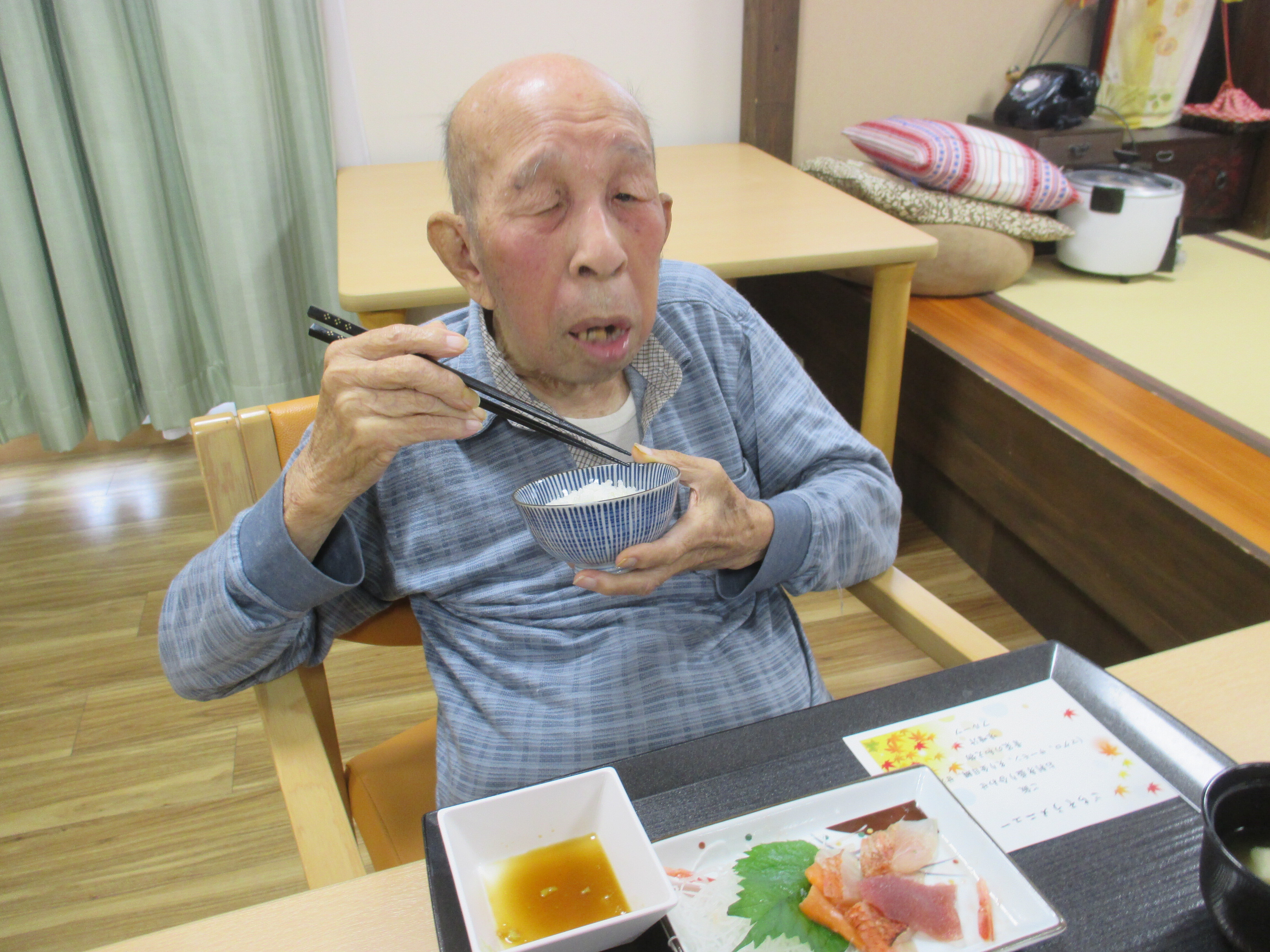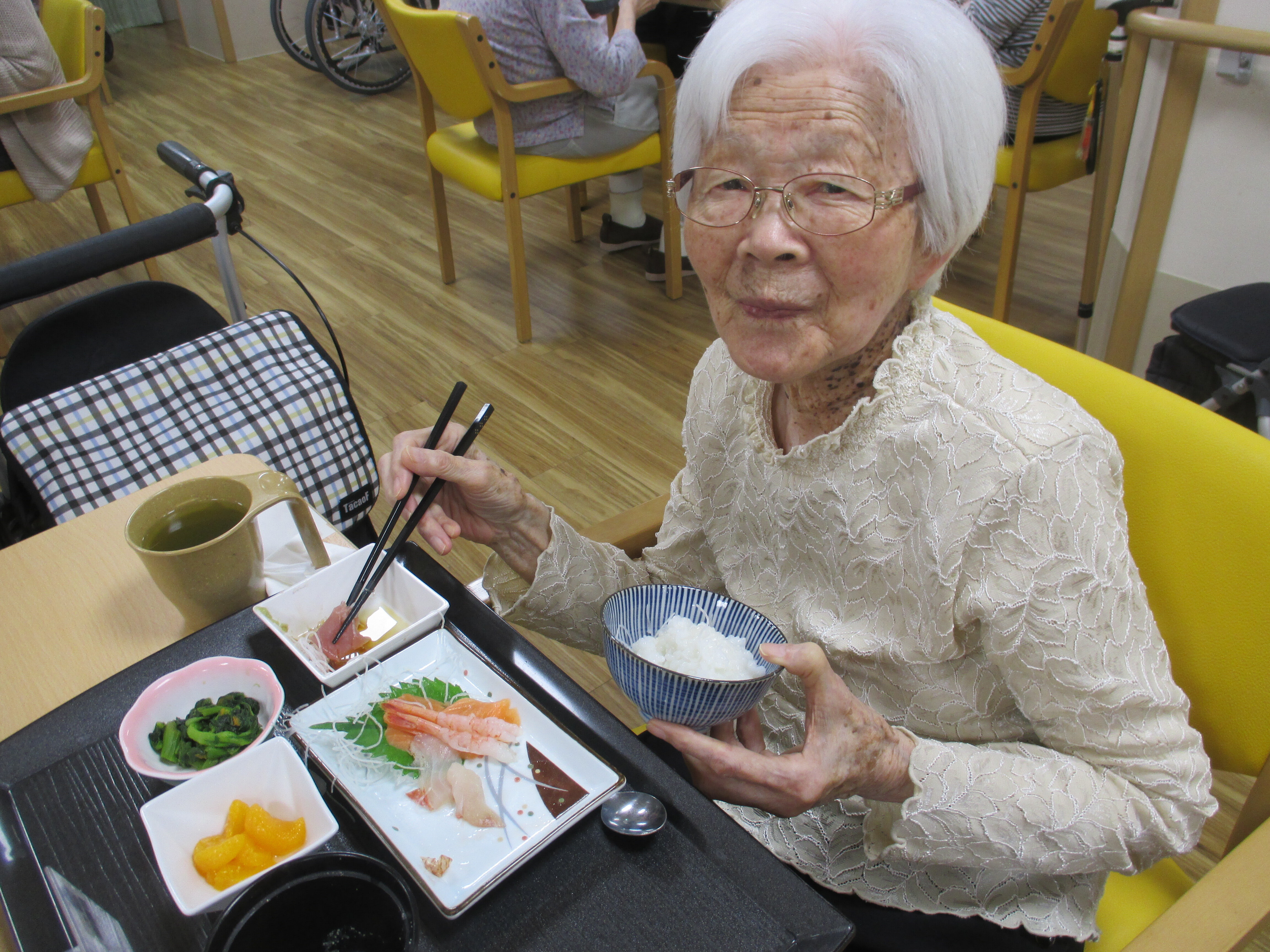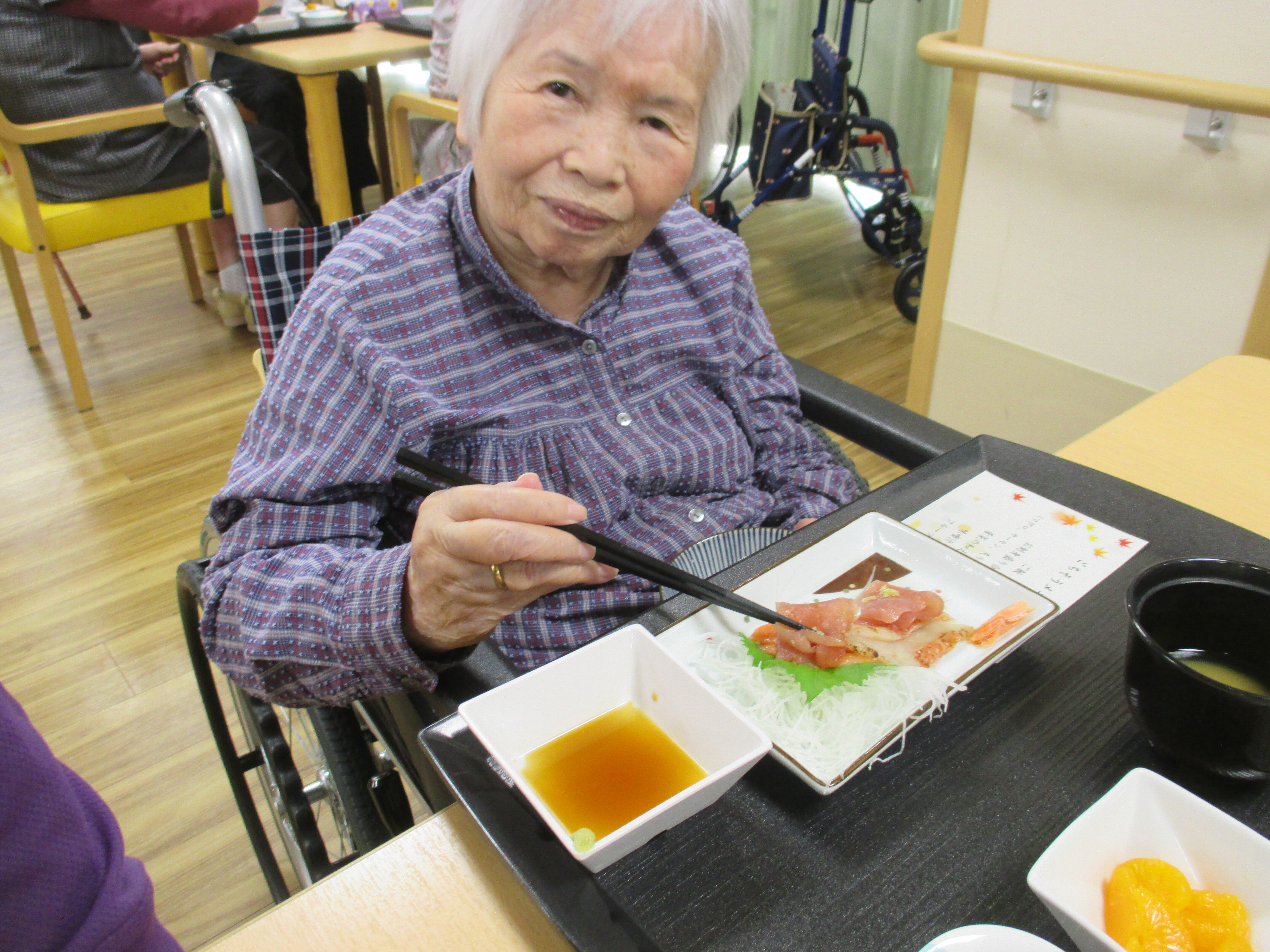 今回は10月9日(水)にご提供したごちそうメニュー「お刺身盛り合わせ」のご様子をお伝え(^O^)/