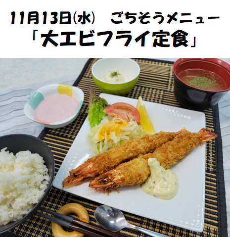 13日(水)にはごちそうメニュー「大エビフライ定食」をご提供しました♪