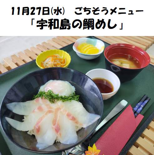 27日(水)にはごちそうメニュー「宇和島の鯛めし」をご提供します♪