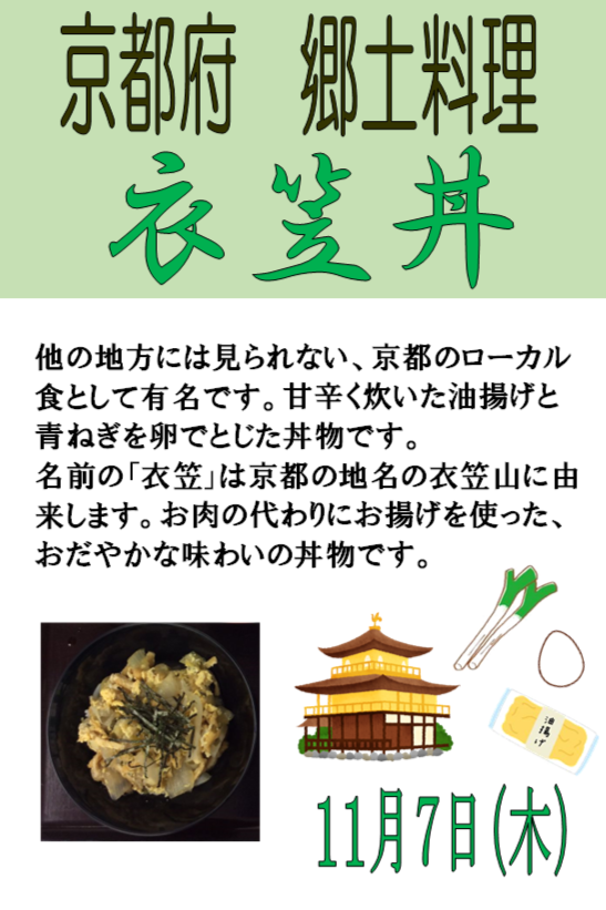 7日(木)には京都府の郷土料理「衣笠丼」を提供させていただきます♪