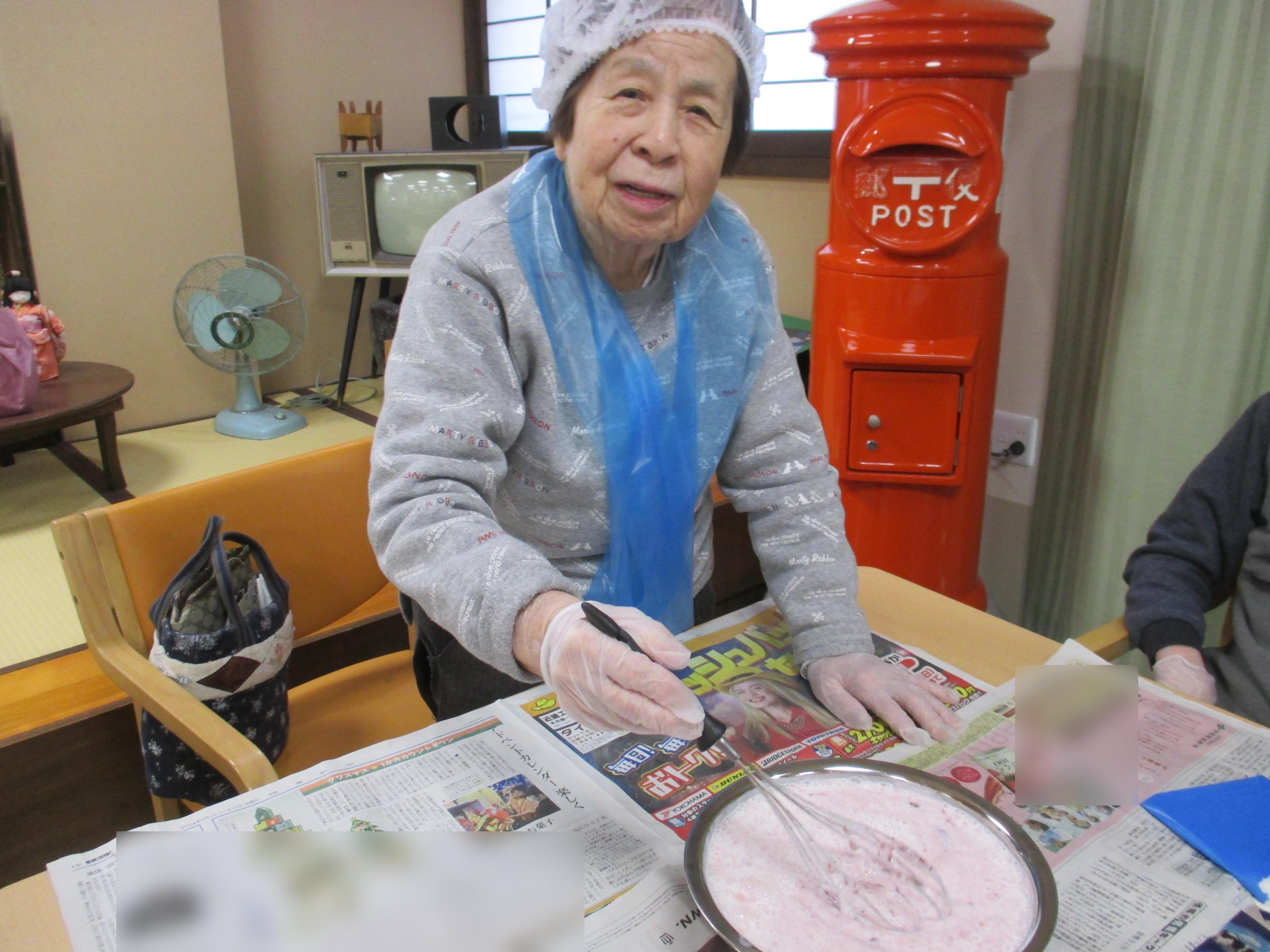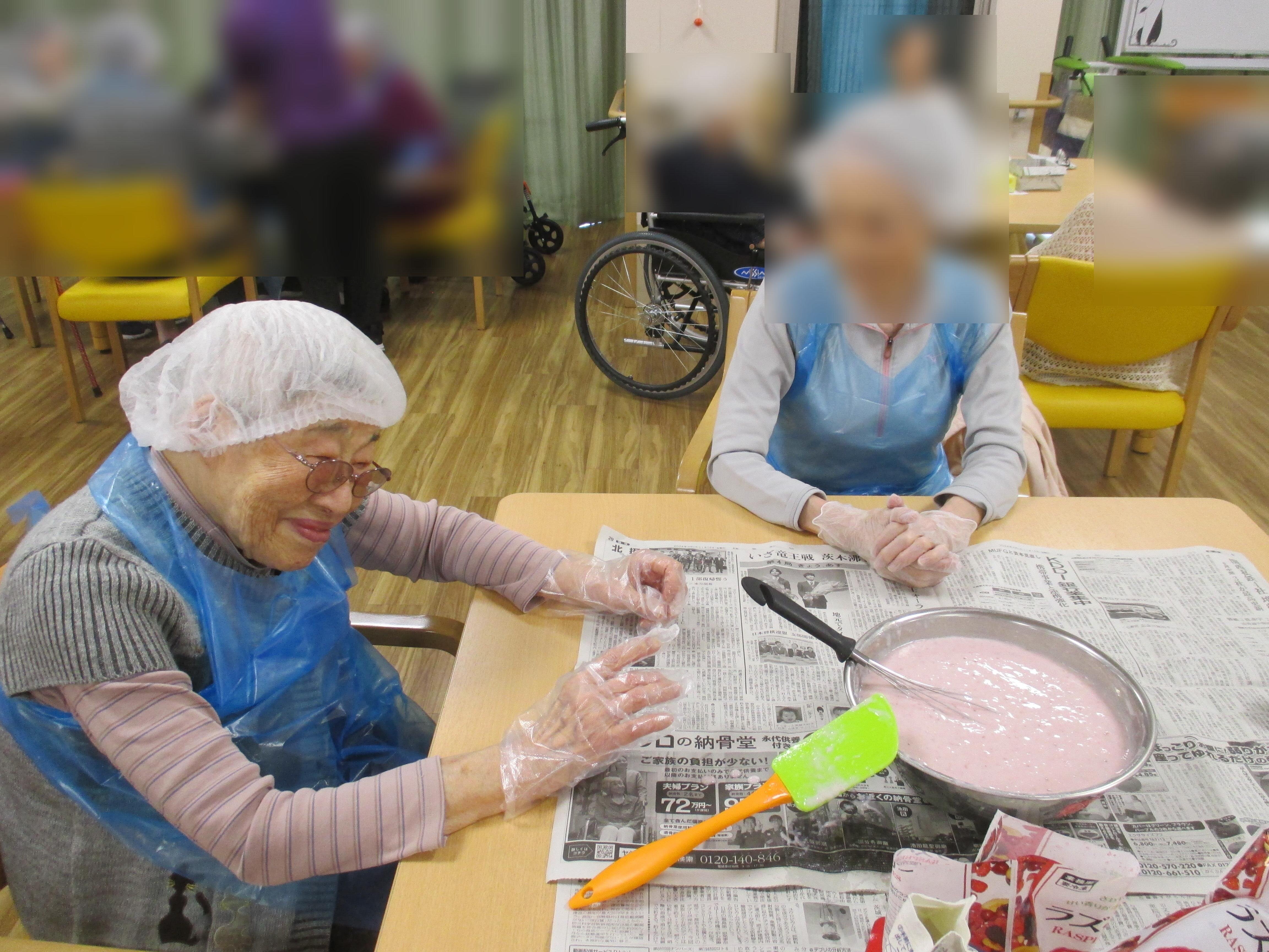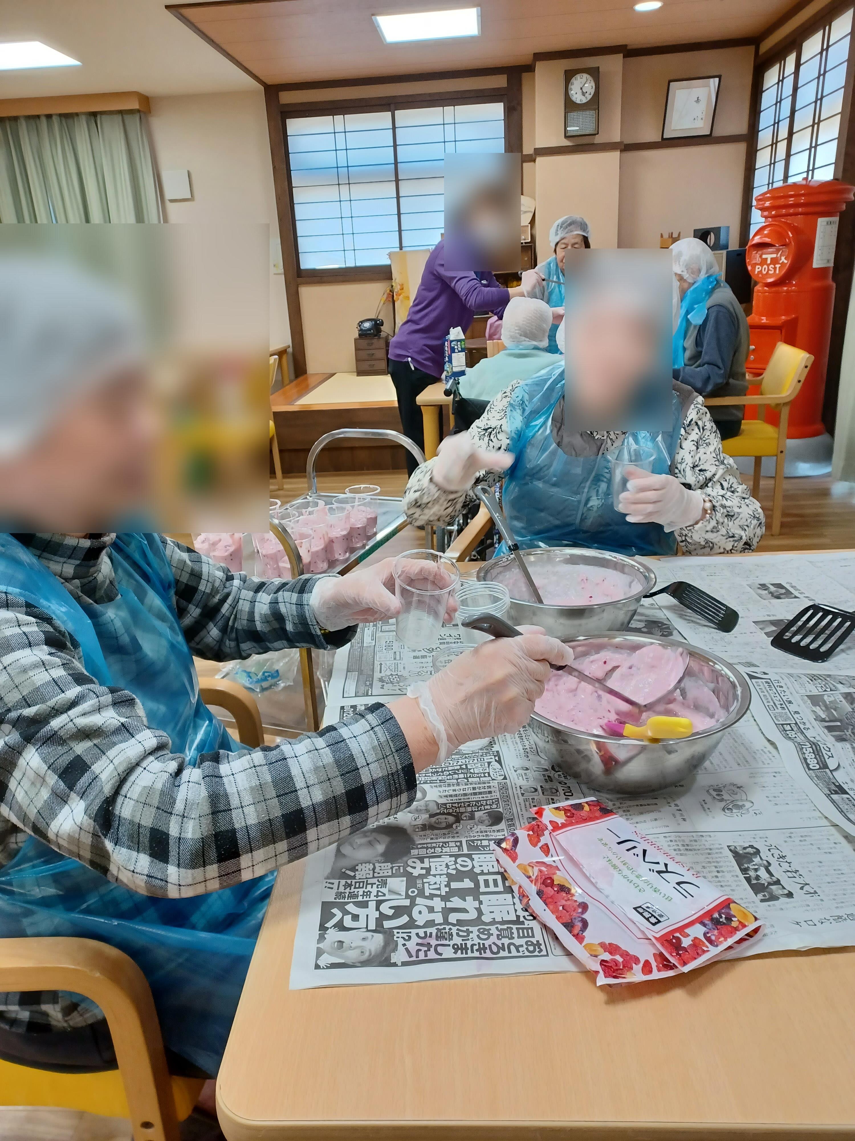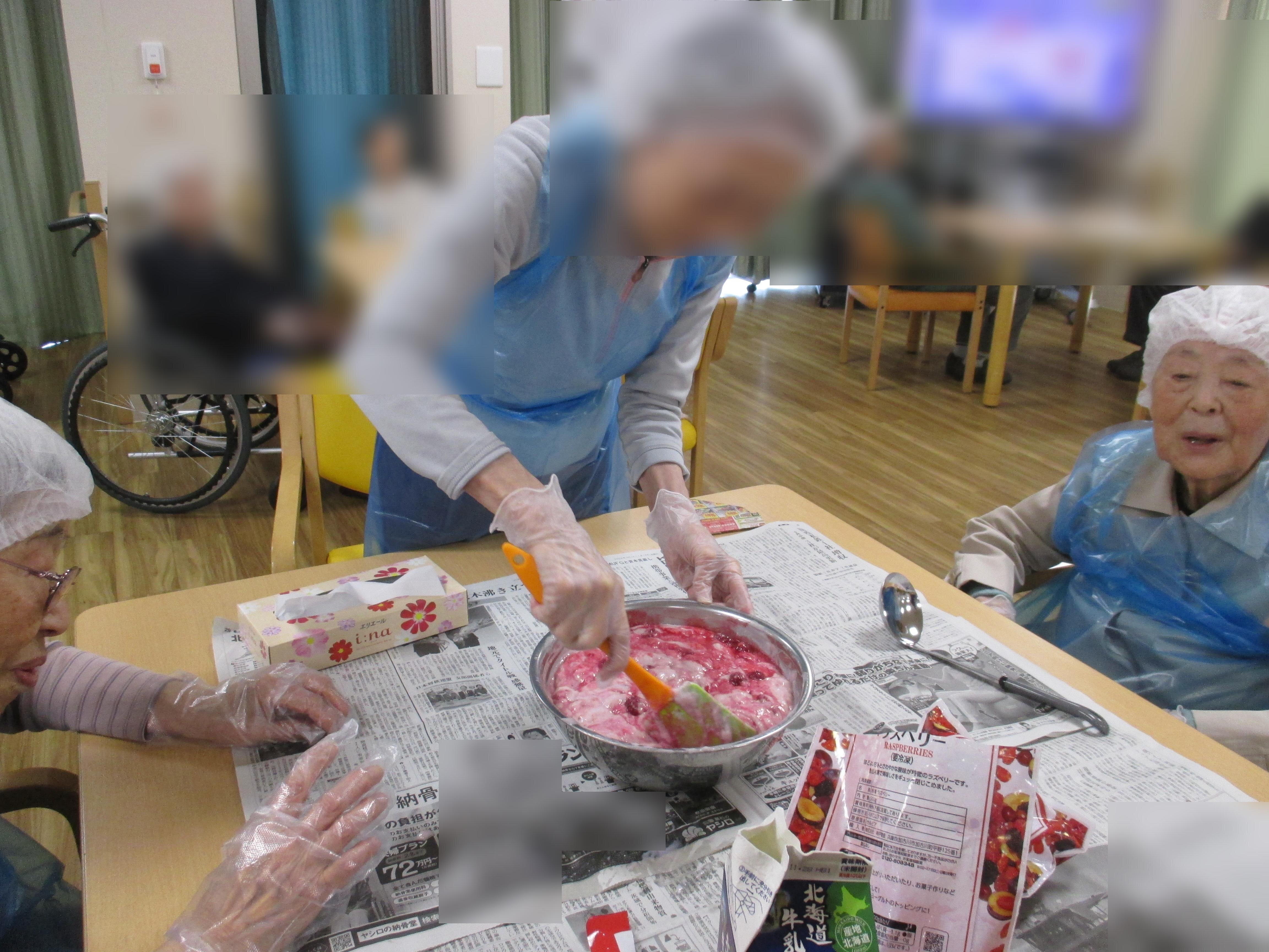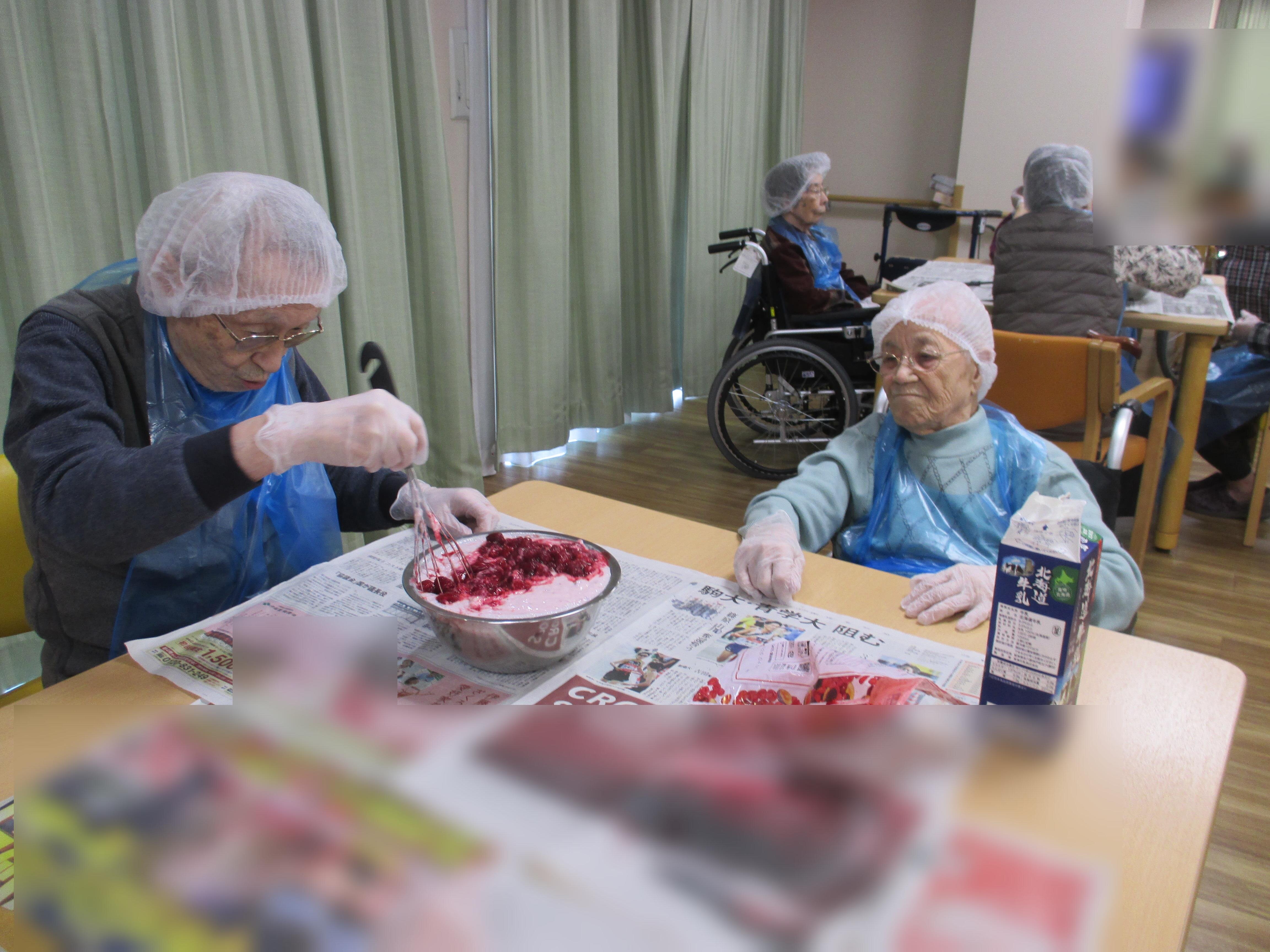 ご入居者のみなさまには、「フルーチェ作り」に参加して頂きました!