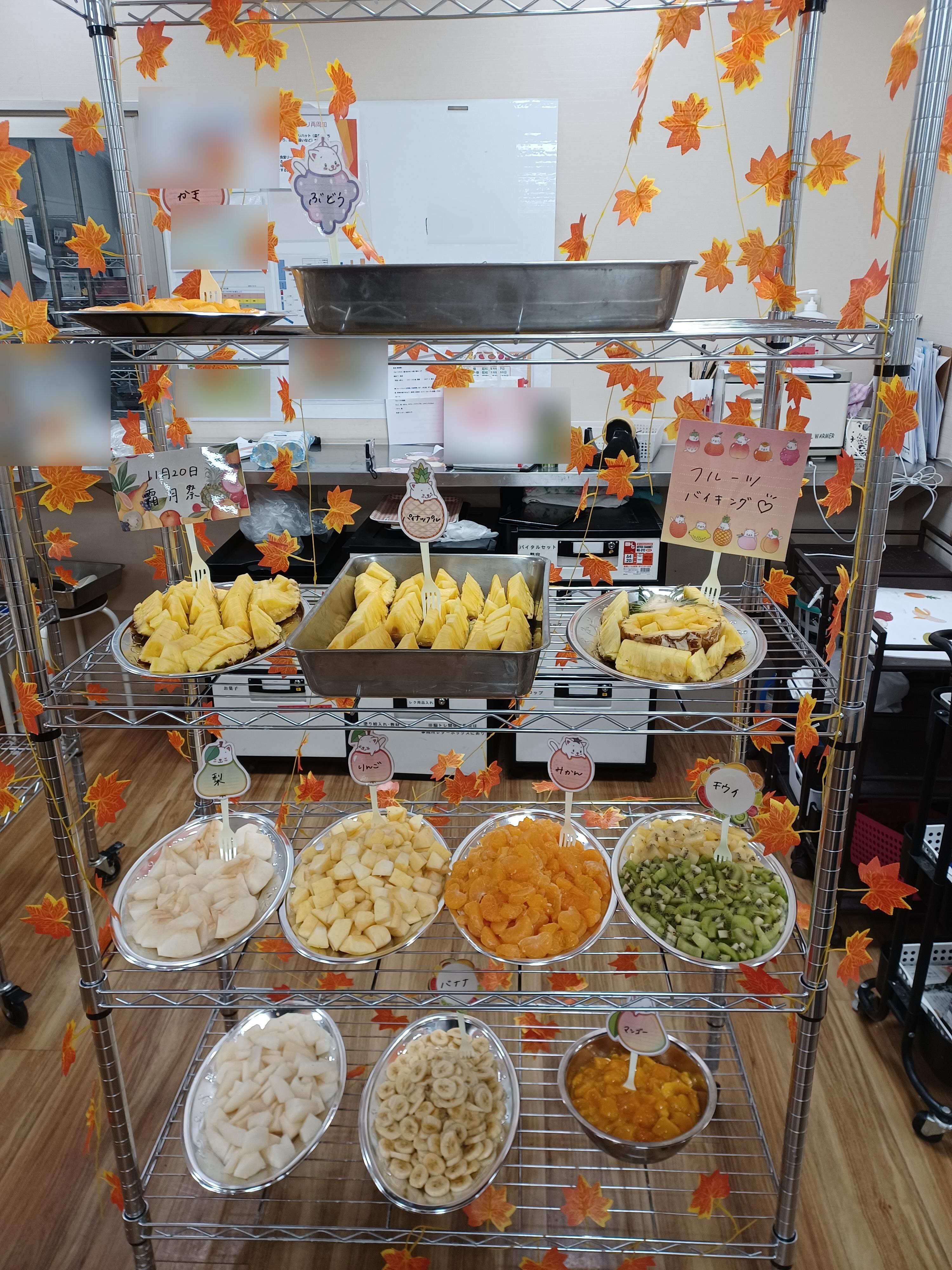 フルーツを乗せるラックも、紅葉仕様にいたしました☆