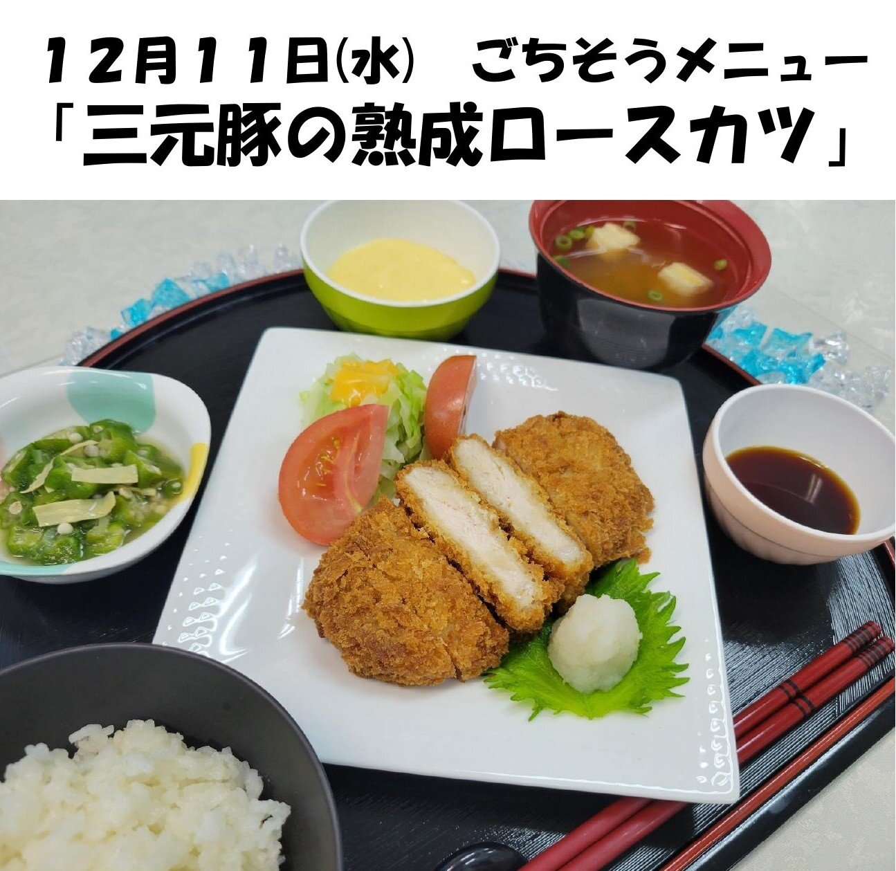 11日(水)にはごちそうメニュー「三元豚の熟成ロースカツ」をご提供します♪