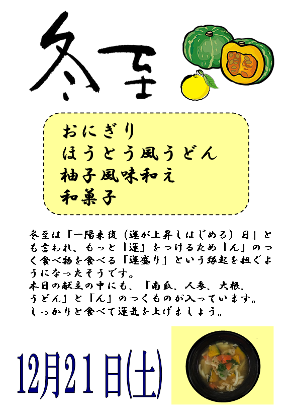 21日(土)には「冬至メニュー」をご提供します♪