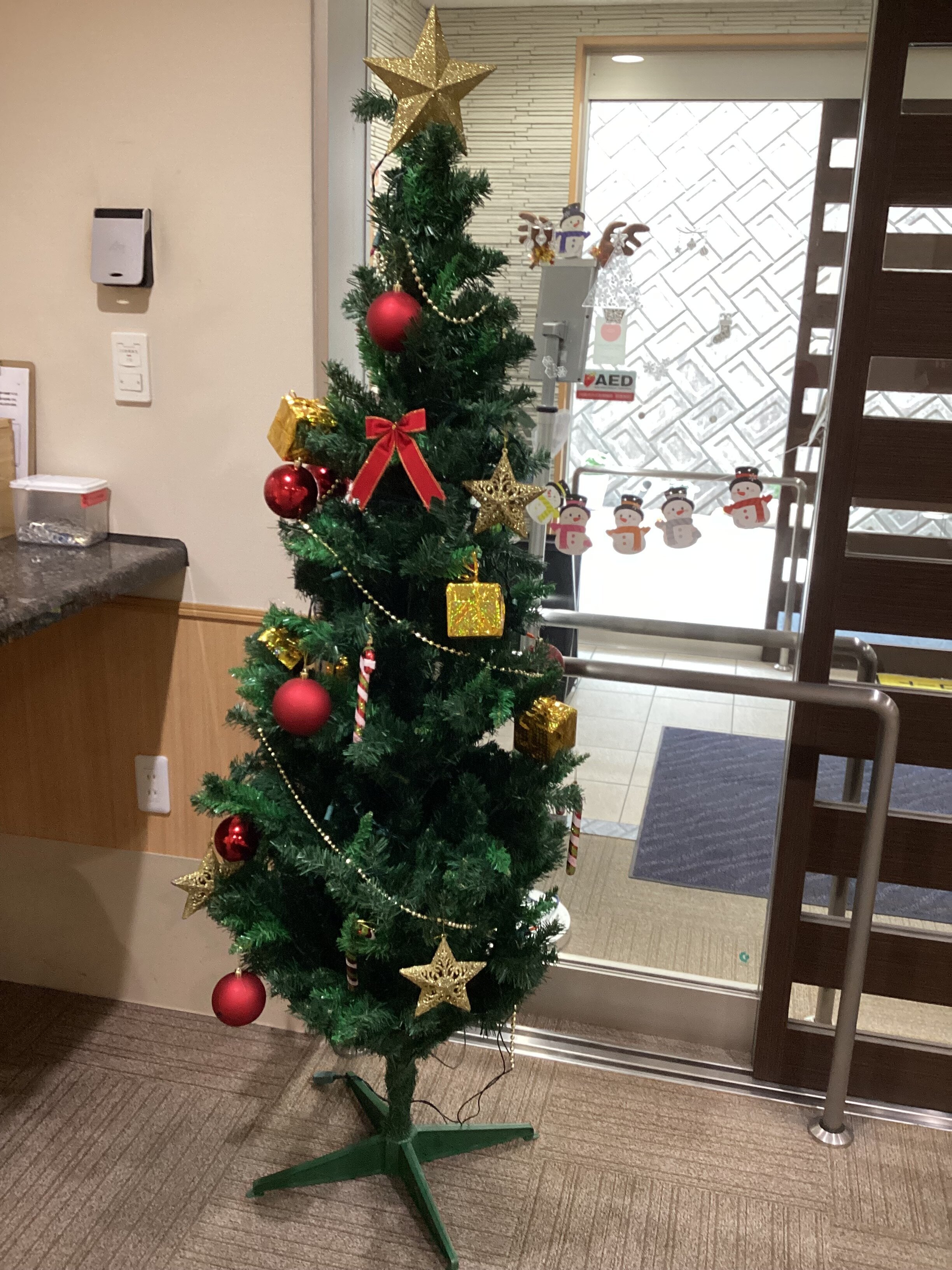 1階とは違い電飾はありませんが、それに負けないくらいキラキラなツリーに仕上がりました!